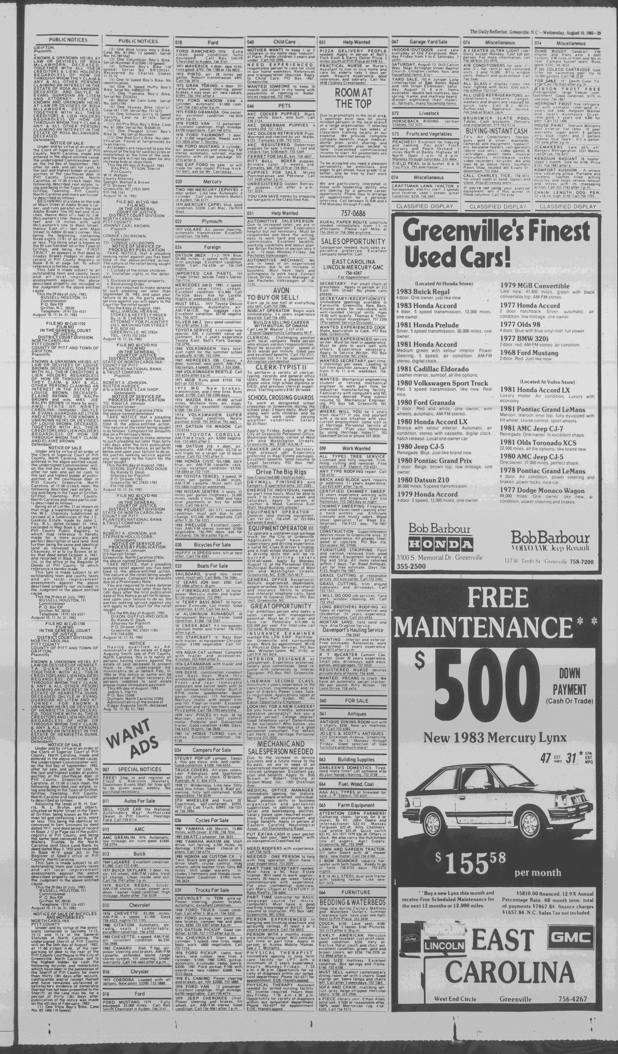 GREENVILLE, N.C. WEDNESDAY AFTERNOON, AUGUST 10, 1983