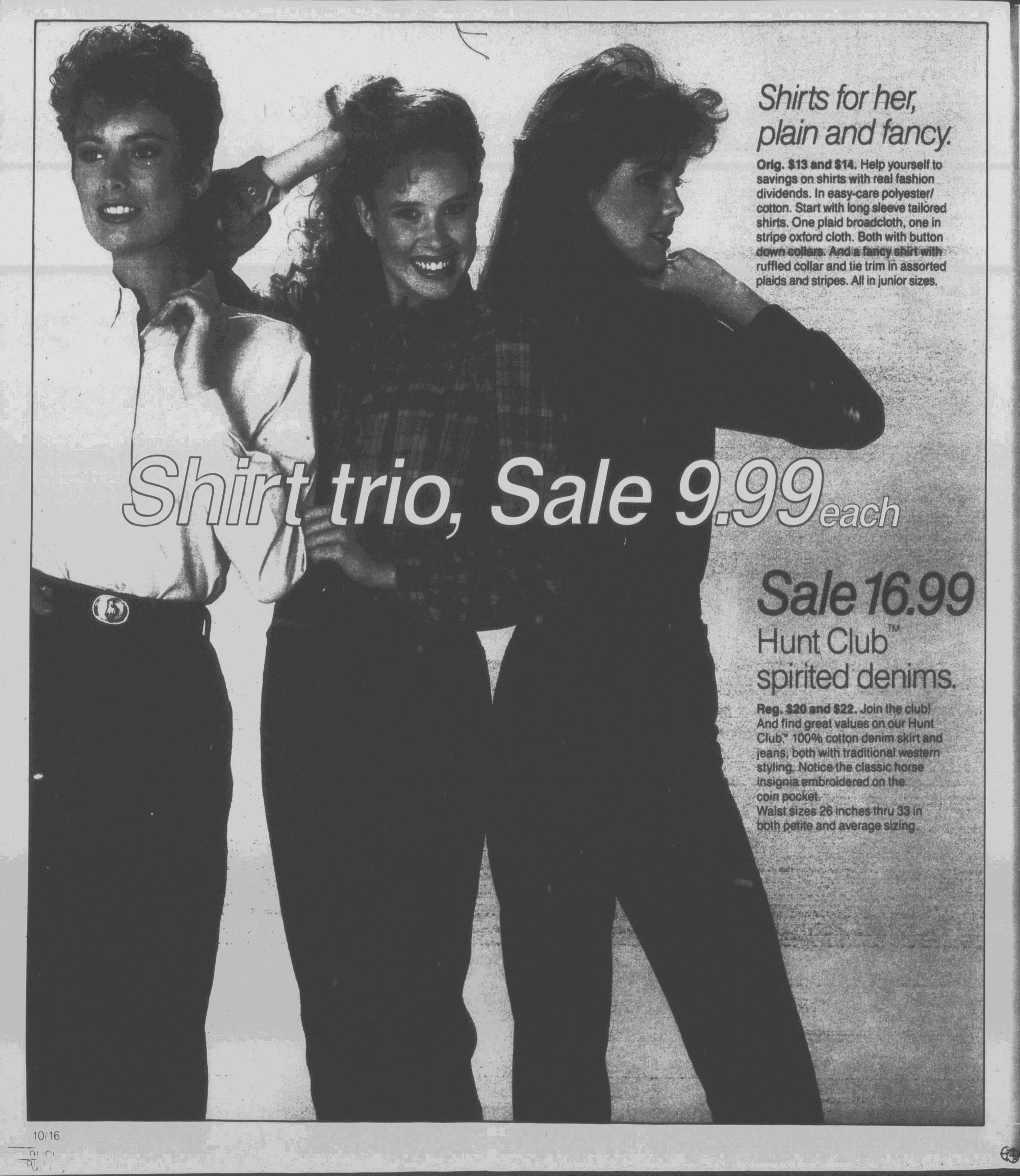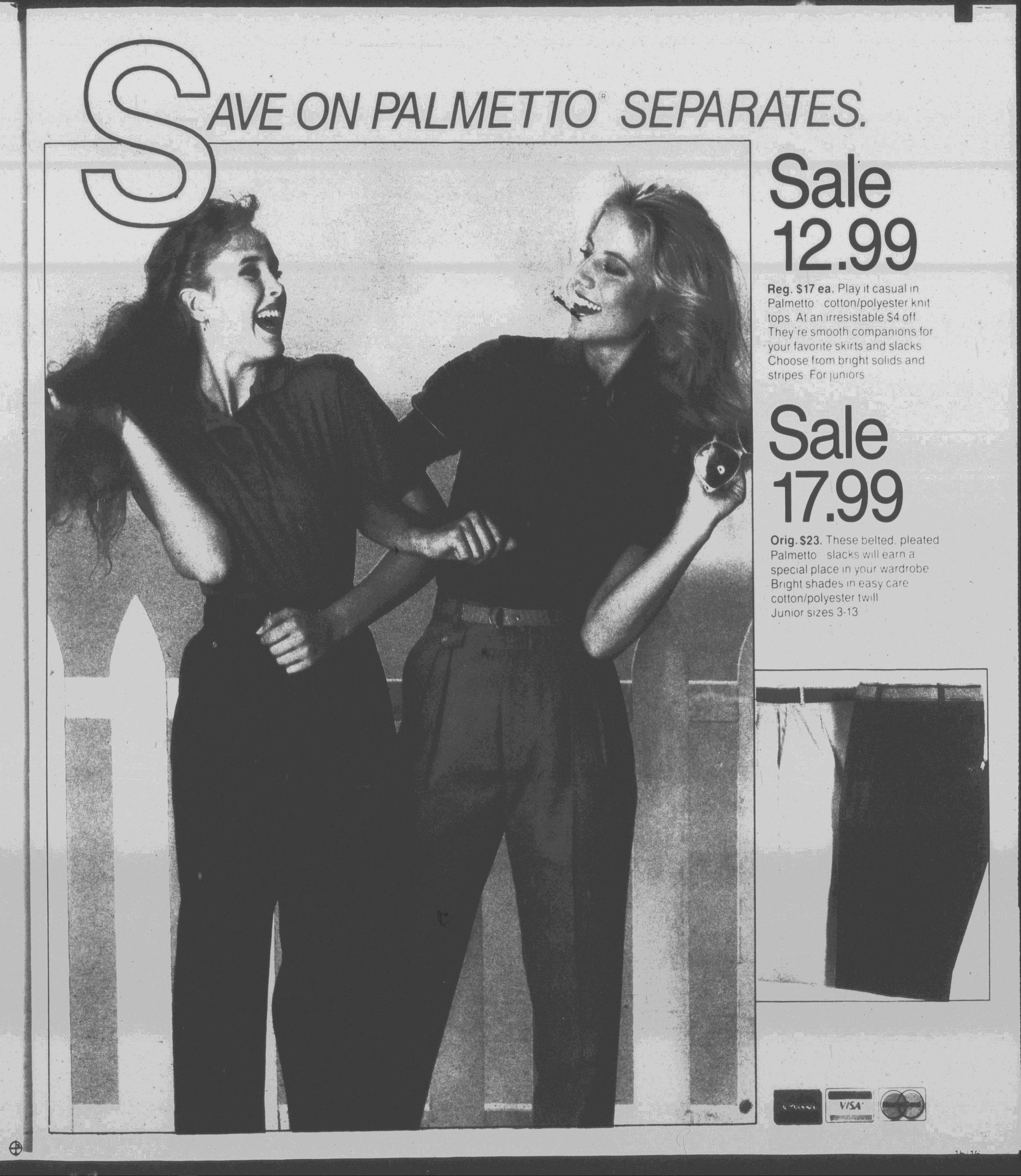 Reg. S17 ea. Play It casual in Palmetto cotton/polyester knit tops At an irresistable S4 off They're smooth companions for your favorite skirts and slacks Choose from bright solids and stripes For juniors