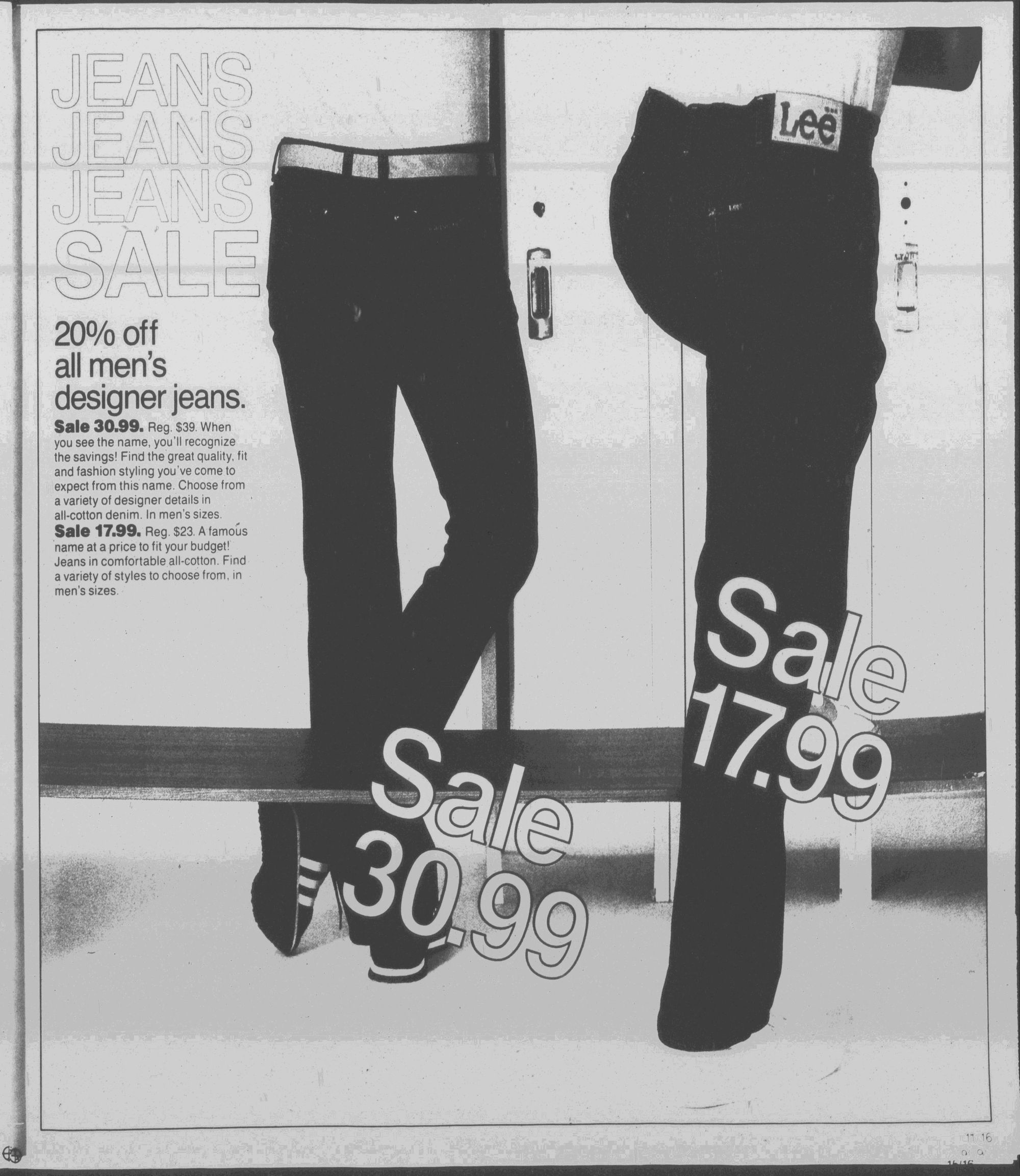 Sale 30.99. Reg. $39. When you see the name, youll recognize the savings! Find the great quality, fit and fashion styling youve come to expect from this name. Choose from a variety of designer details in all-cotton denim. In mens sizes. Sale 17.99. Reg. $23. a famous name at a price to fit your budget! Jeans in comfortable all-cotton. Find a variety of styles to choose from, in mens sizes.