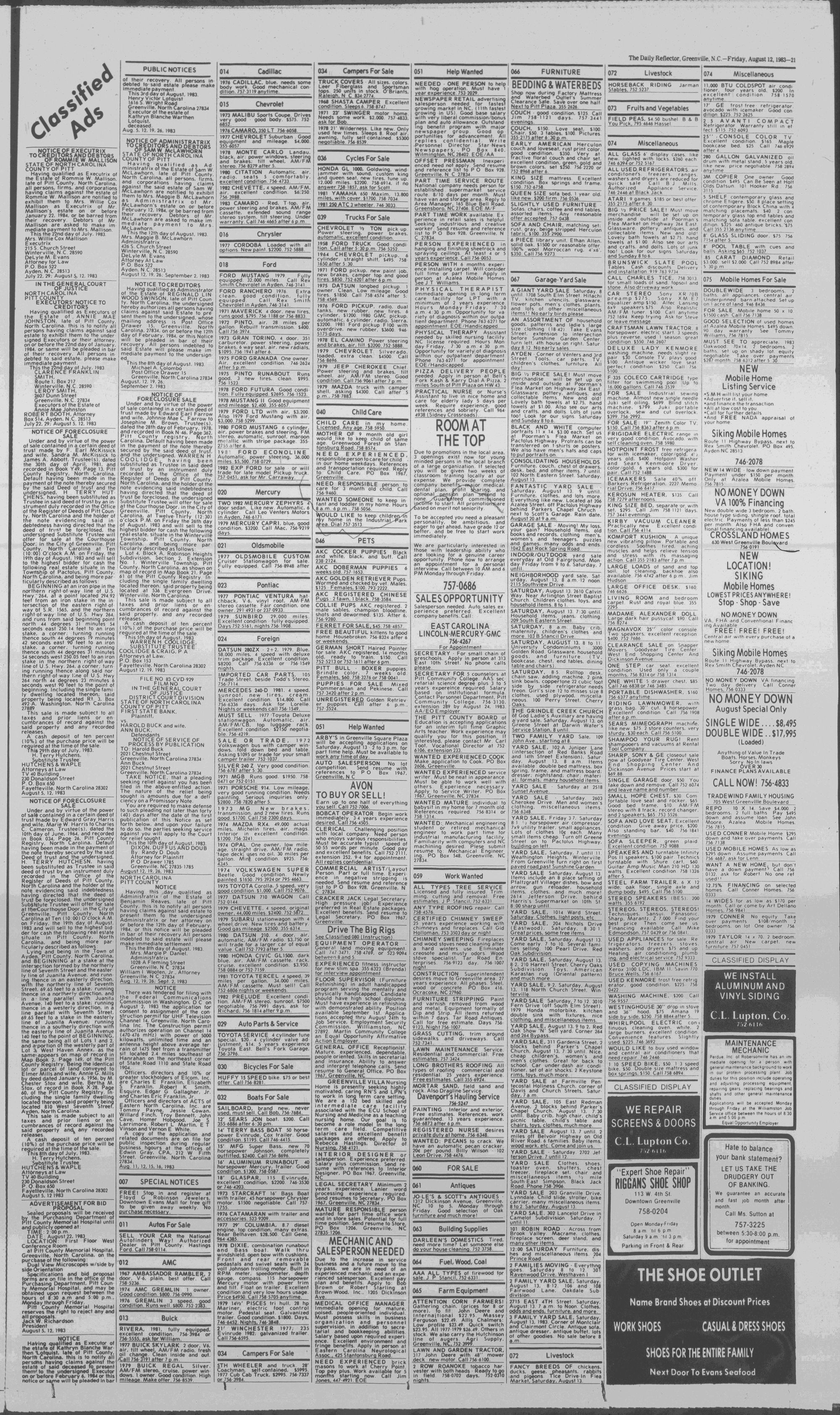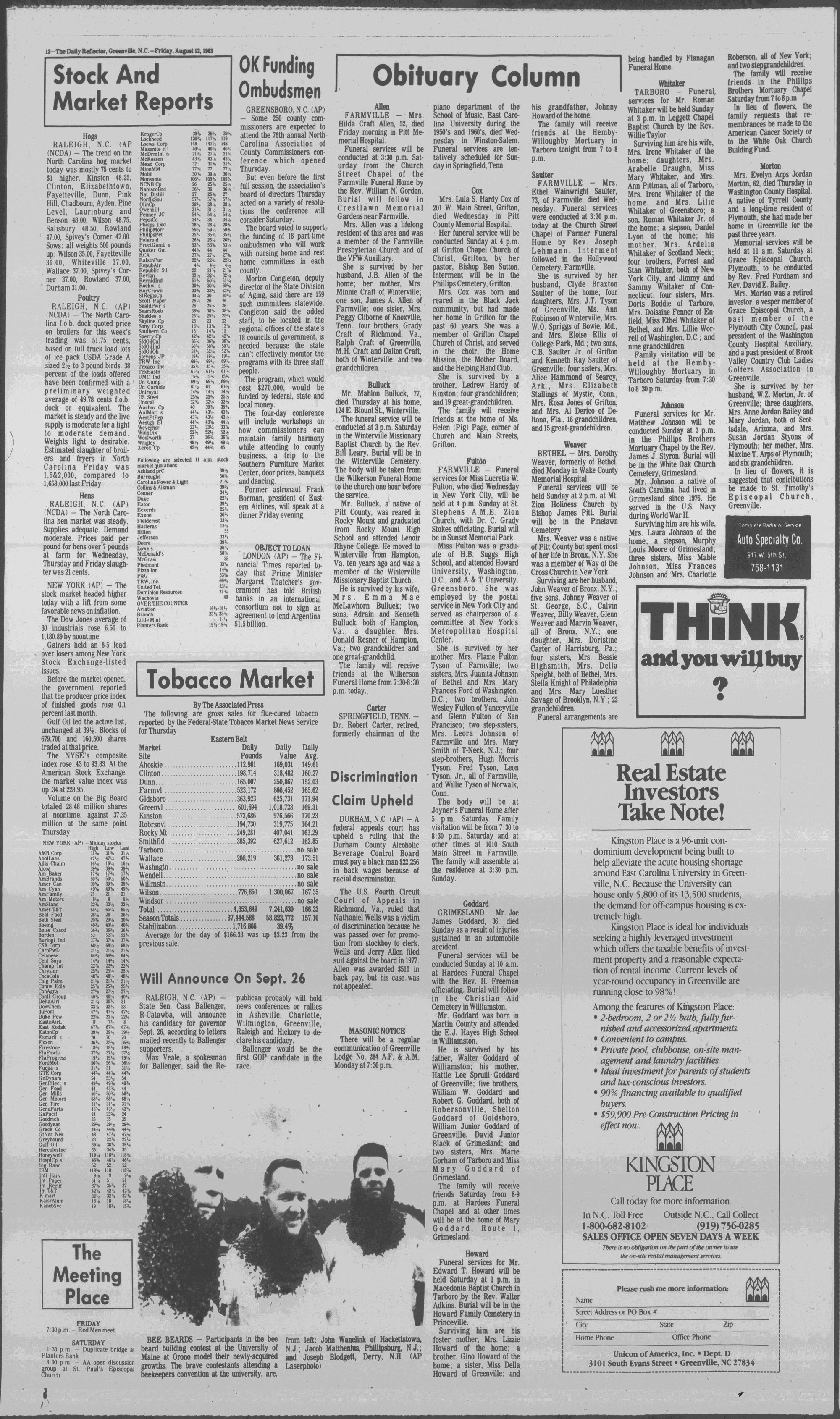 GREENVILLE, N.C. FRIDAY AFTERNOON, AUGUST 12, 1983