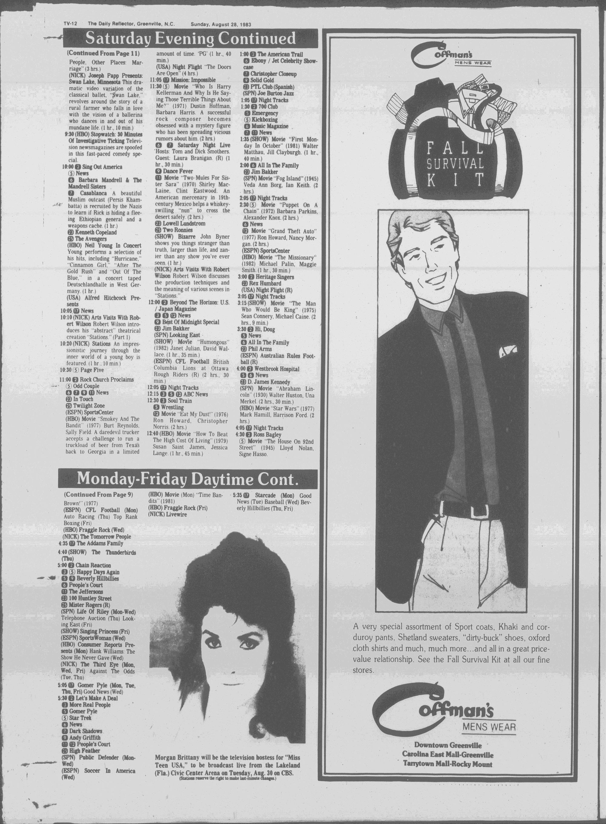 GREENVILLE, N.C. SUNDAY MORNING, AUGUST 28, 1983