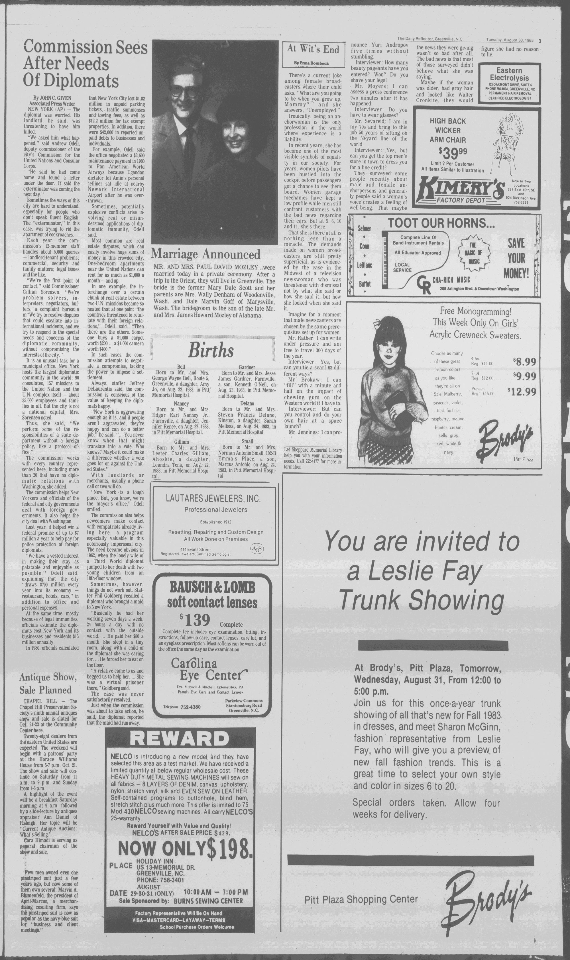 ASSISTER, WITNESSES SOUGHT A woman involved in a two-car collision at the intersection of 10th and Cotanche streets on Aug. 10 at 11:57 a.m. needs to talk to a man who got into her 1983 Buick Regal and attended her until the rescue squad arrived. Any other witness to the accident is also asked to call 355-6816 or 756-2629 and ask for Anne.