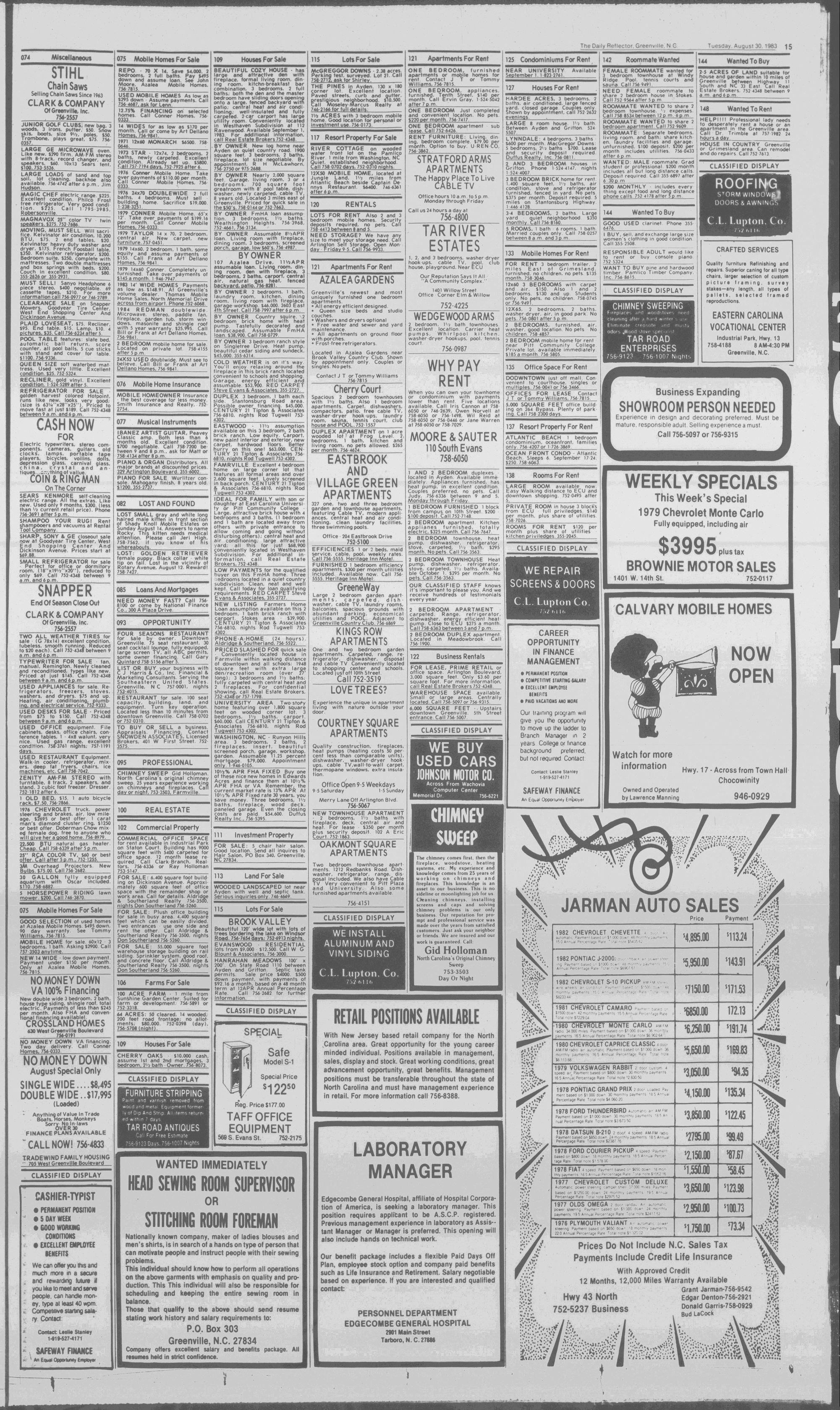 GREENVILLE: 324 S. Evans St./758-2145* 514 E. Greenville Blvd./756-6525 AYDEN: 107 W. 3rd St./746-3043 FARMVILLE: 128 N. Main St./753-4139 QRIFTON: 118 Queen St./524-4128
