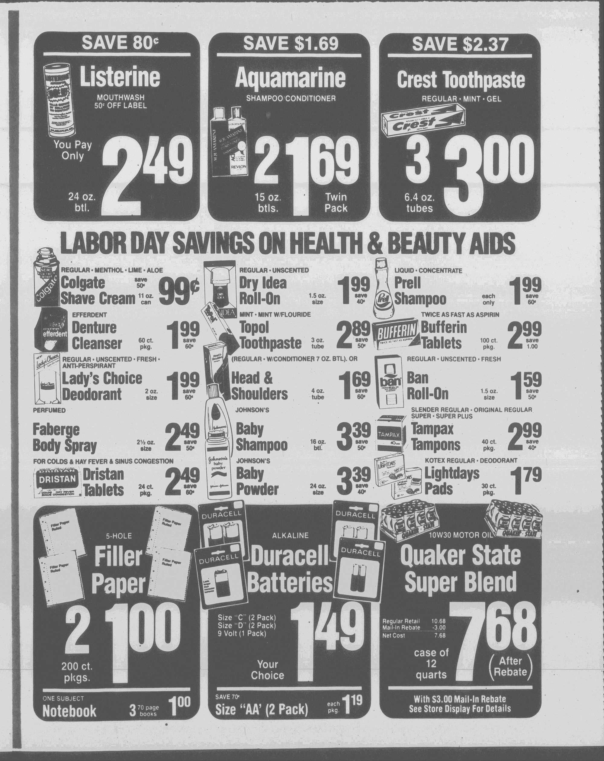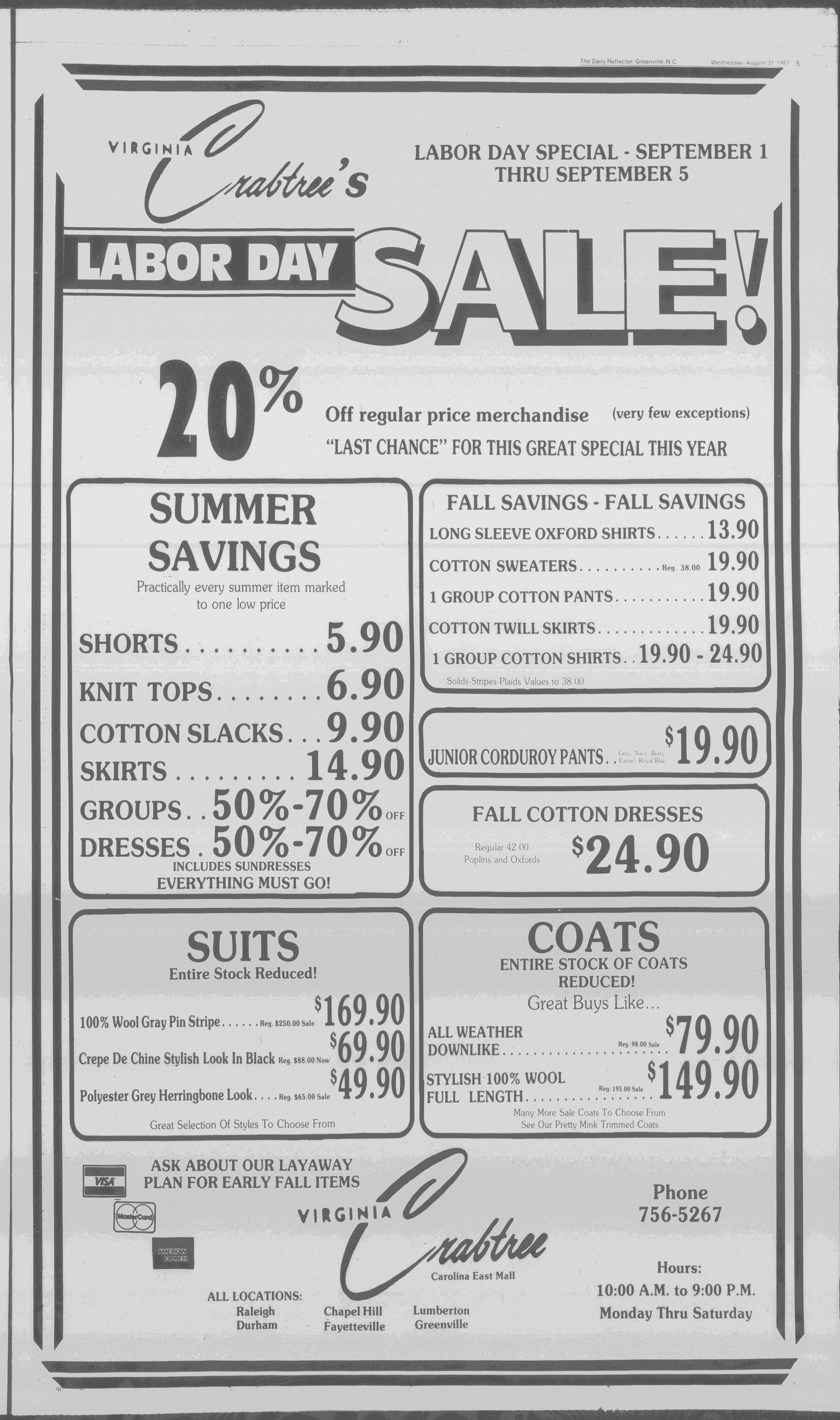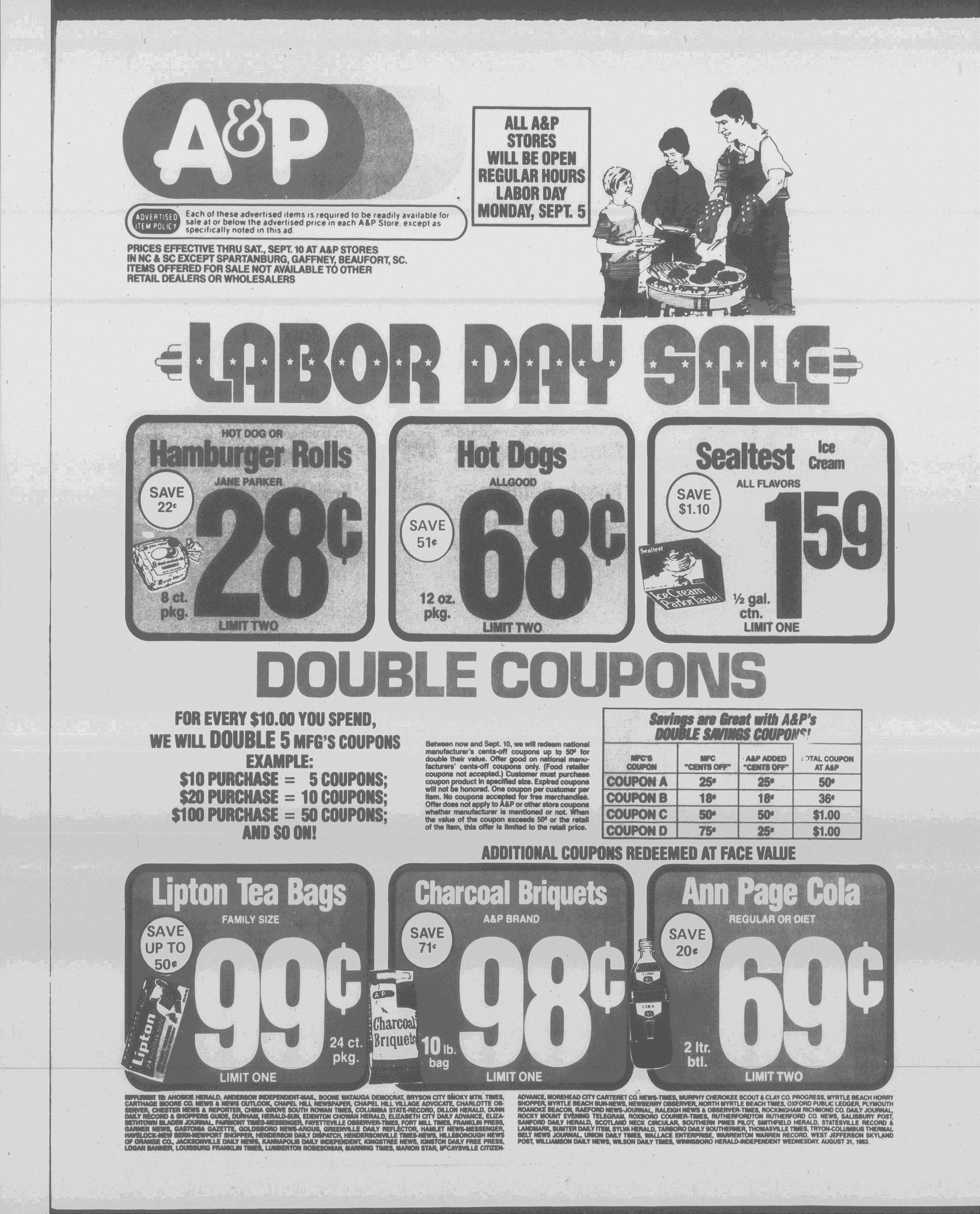 [Sale starts Wednesday, August 31 ends Saturday, September 3 ' unless otherwise stated