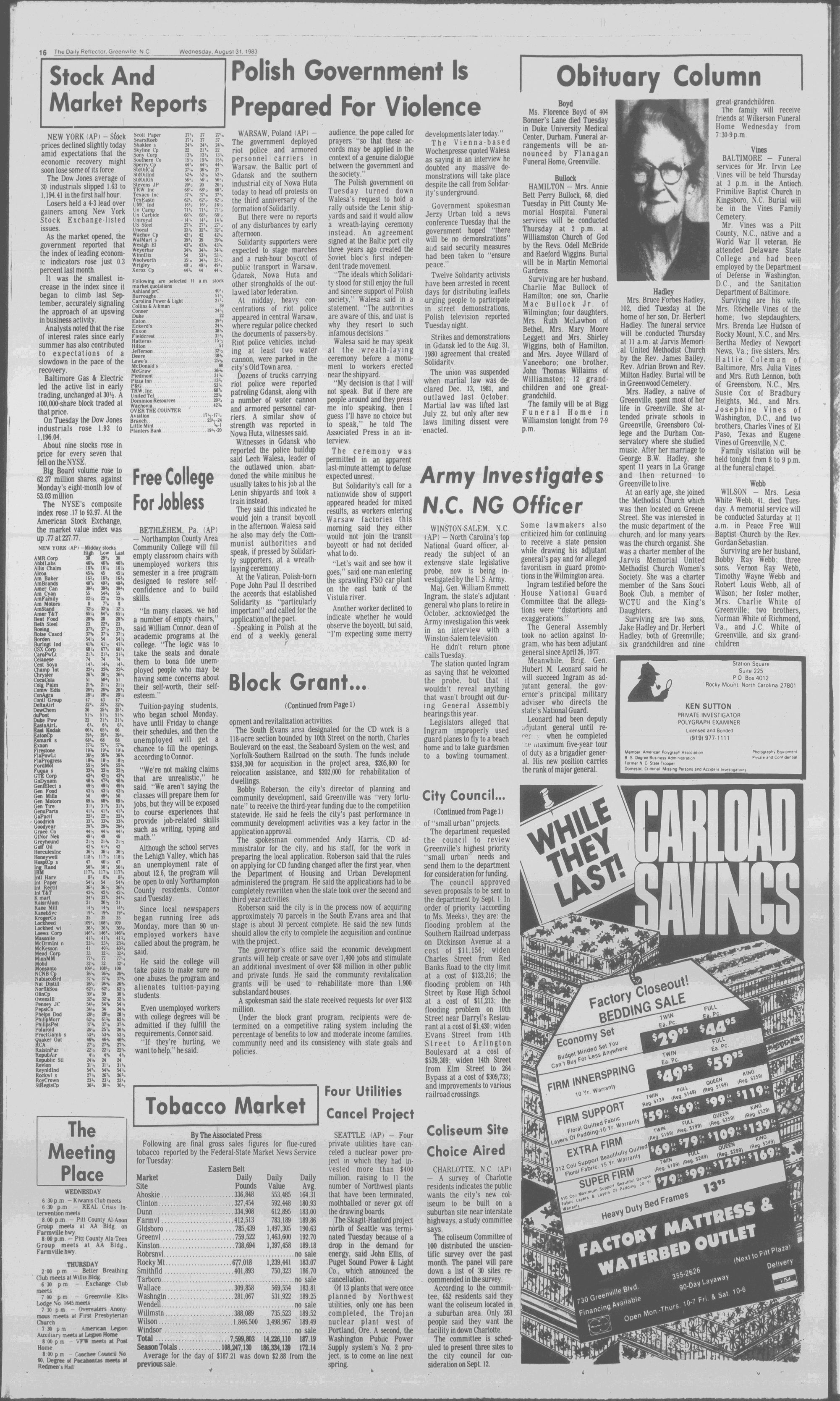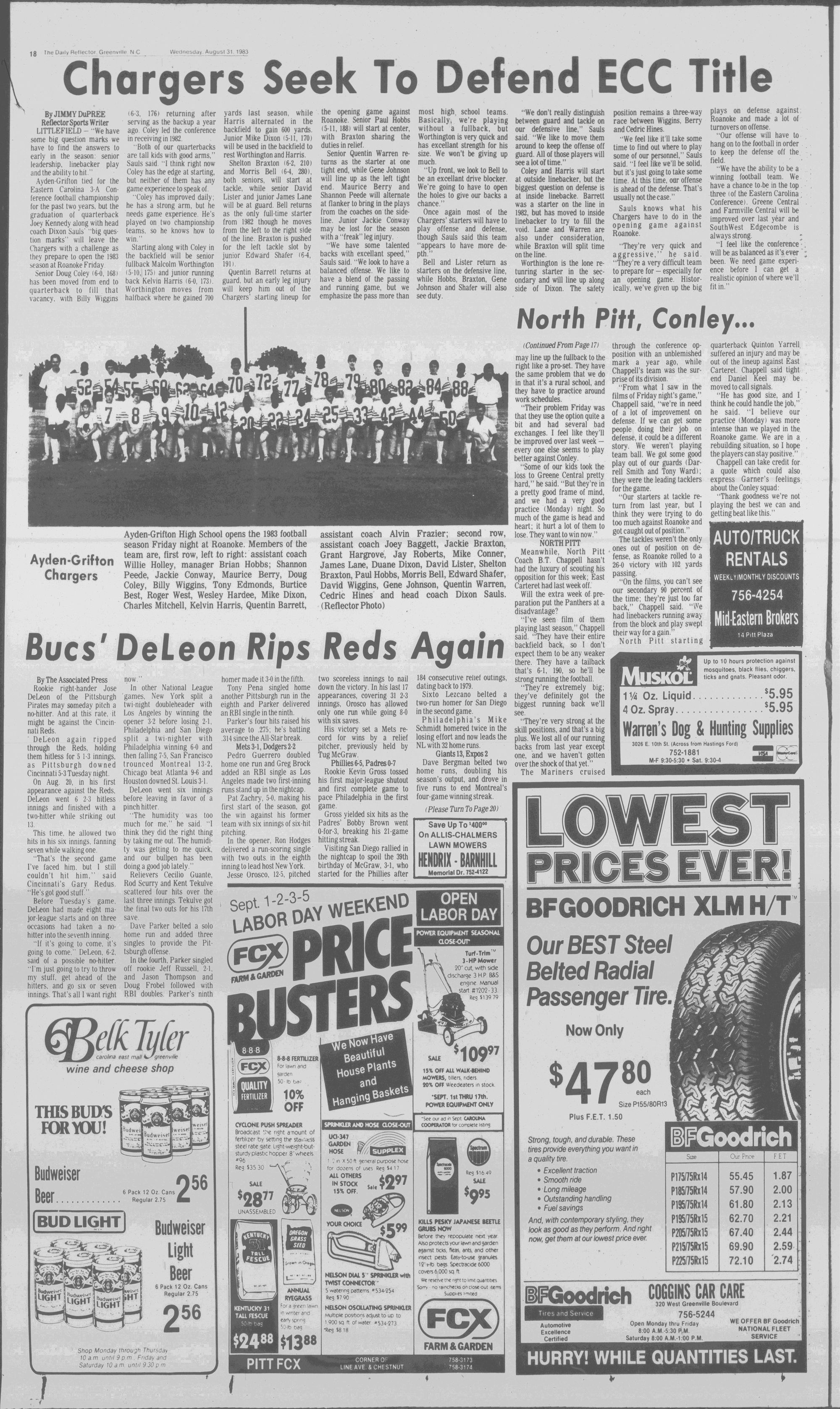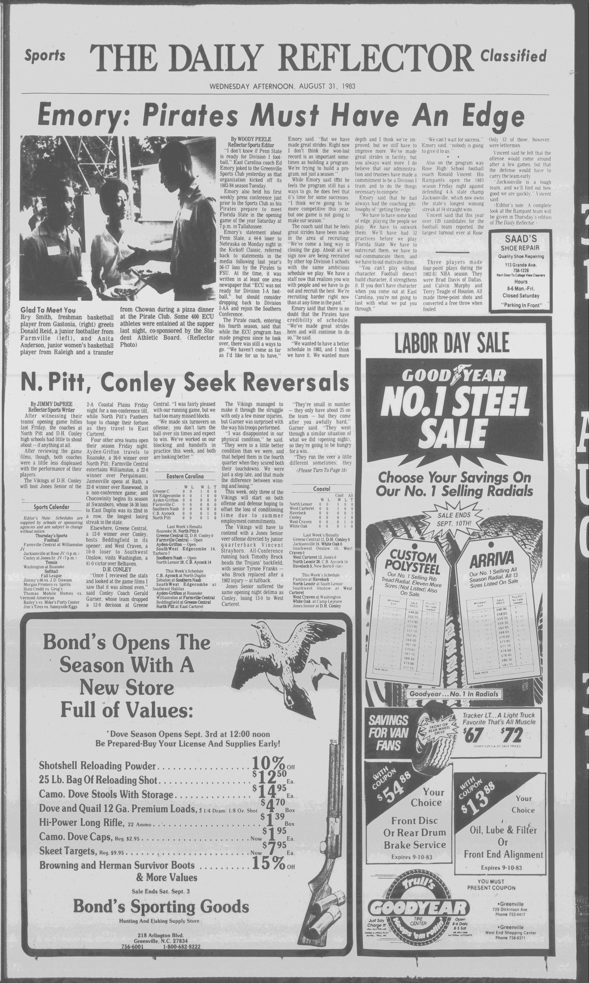 North Pitt and D.H. Conley seek to regroup, while four others open their 1983 football season Friday. (Page 17)THE DAILY REFLECTOR