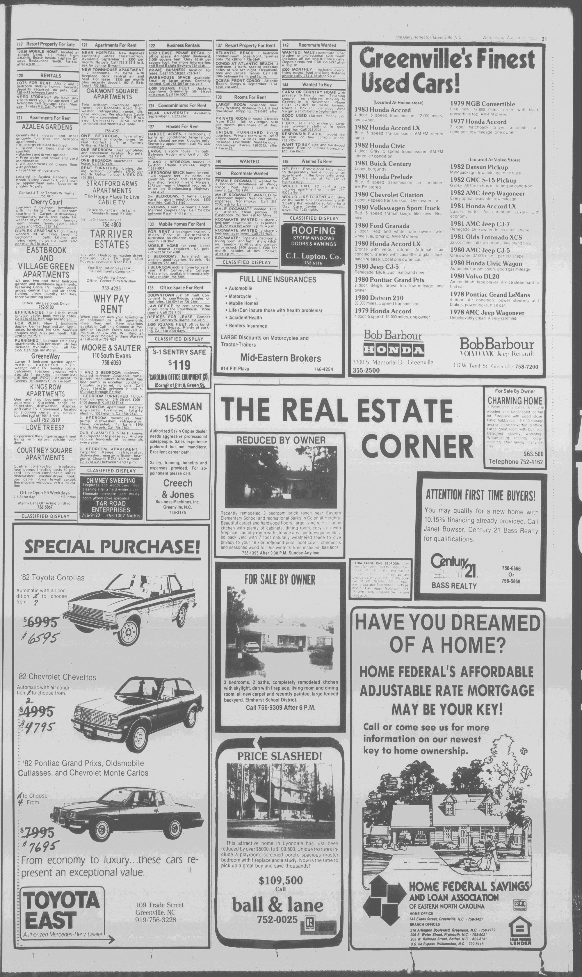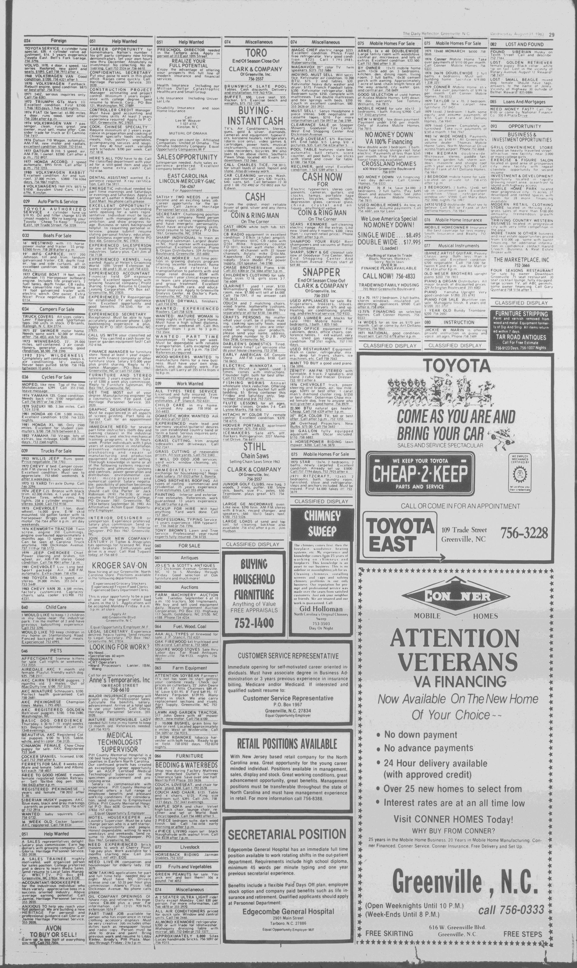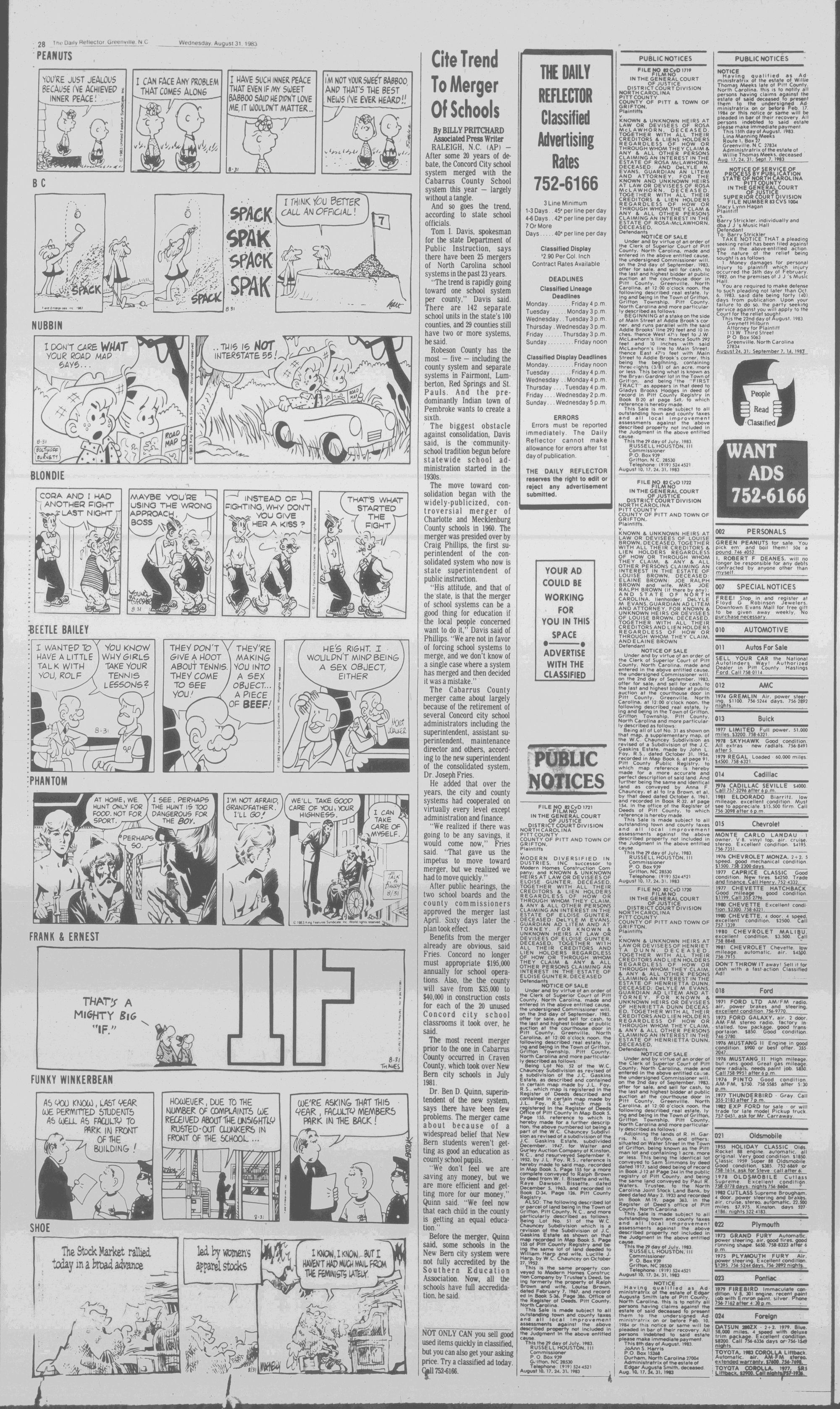 North Pitt and D.H. Conley seek to regroup, while four others open their 1983 football season Friday. (Page 17)THE DAILY REFLECTOR