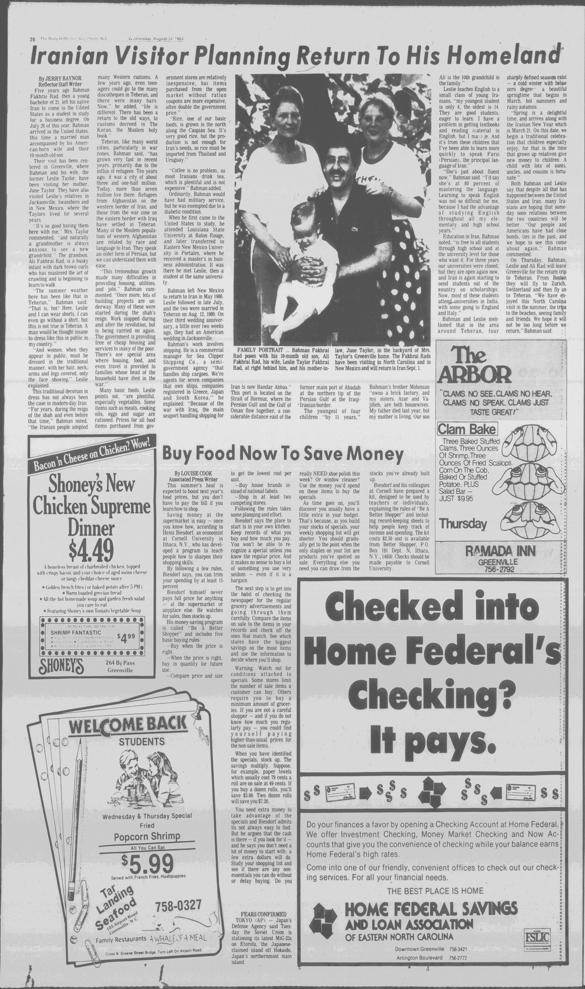 Bakham Fakhrai Rad is a former student in the U.S., and on Thursday, he and his American-born wife and their son begin the long trip home to Tehran. (Page 26)
