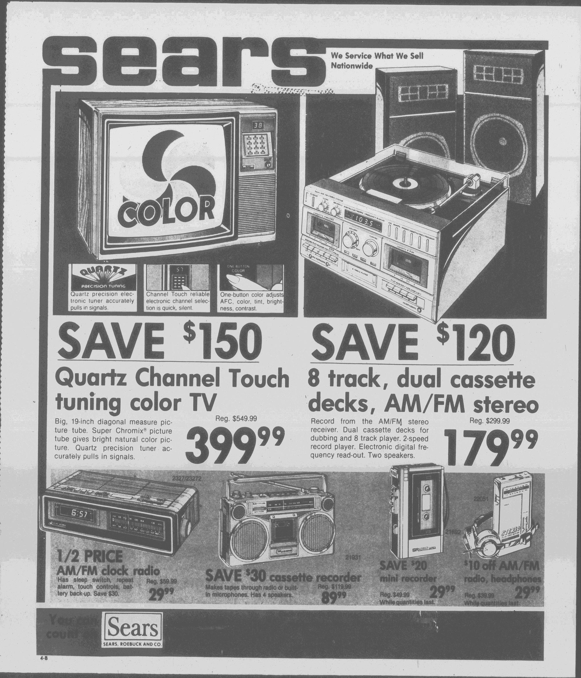 8 track, dual cassette decks, AM/FM stereo