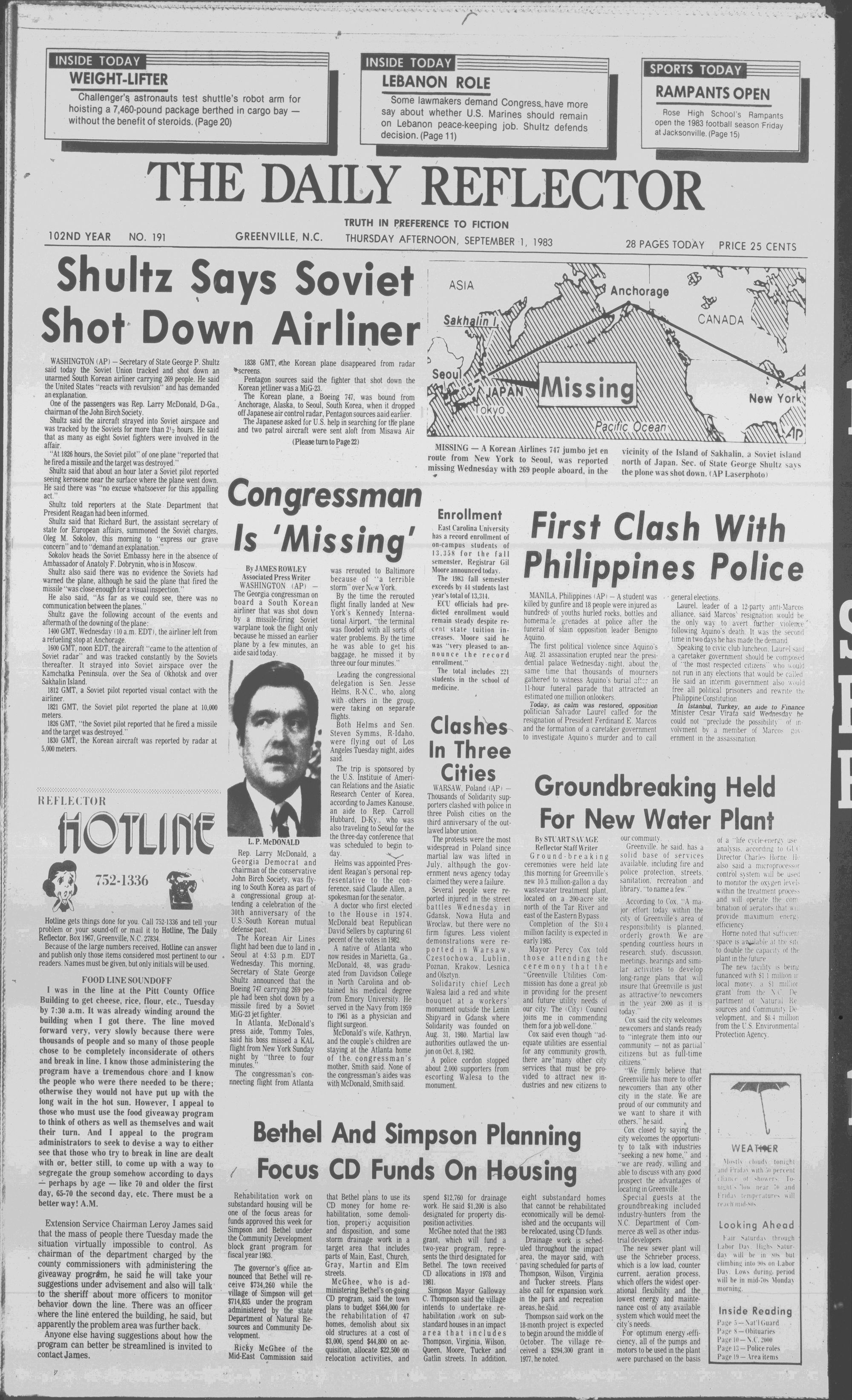 One of the passengers was Rep. Larry McDonald, D-Ga., chairman of the John Birch Society.