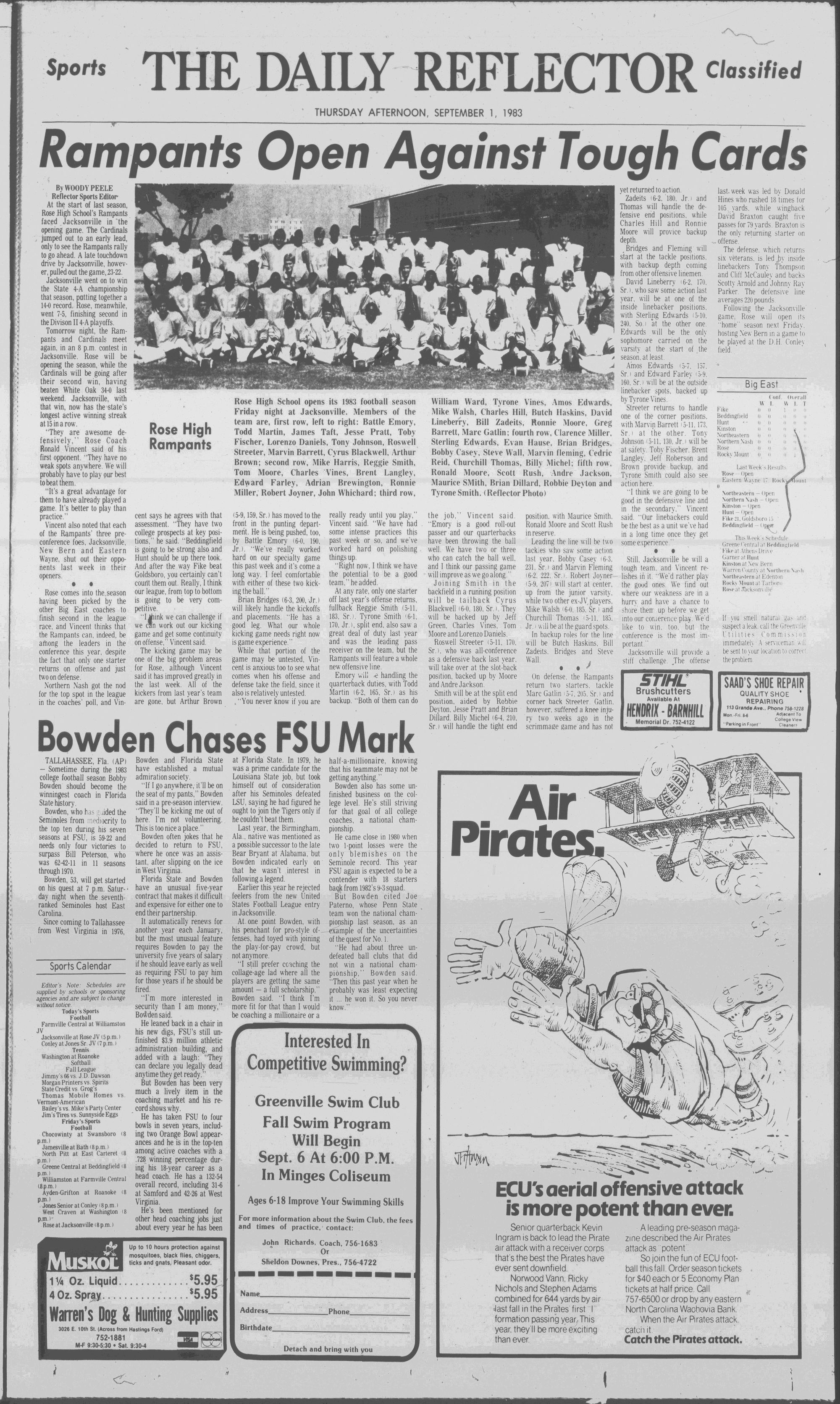 Rose High Schools Rampants open the 1983 football season f hday at Jacksonville. (Page 15)THE DAILY REFLECTOR