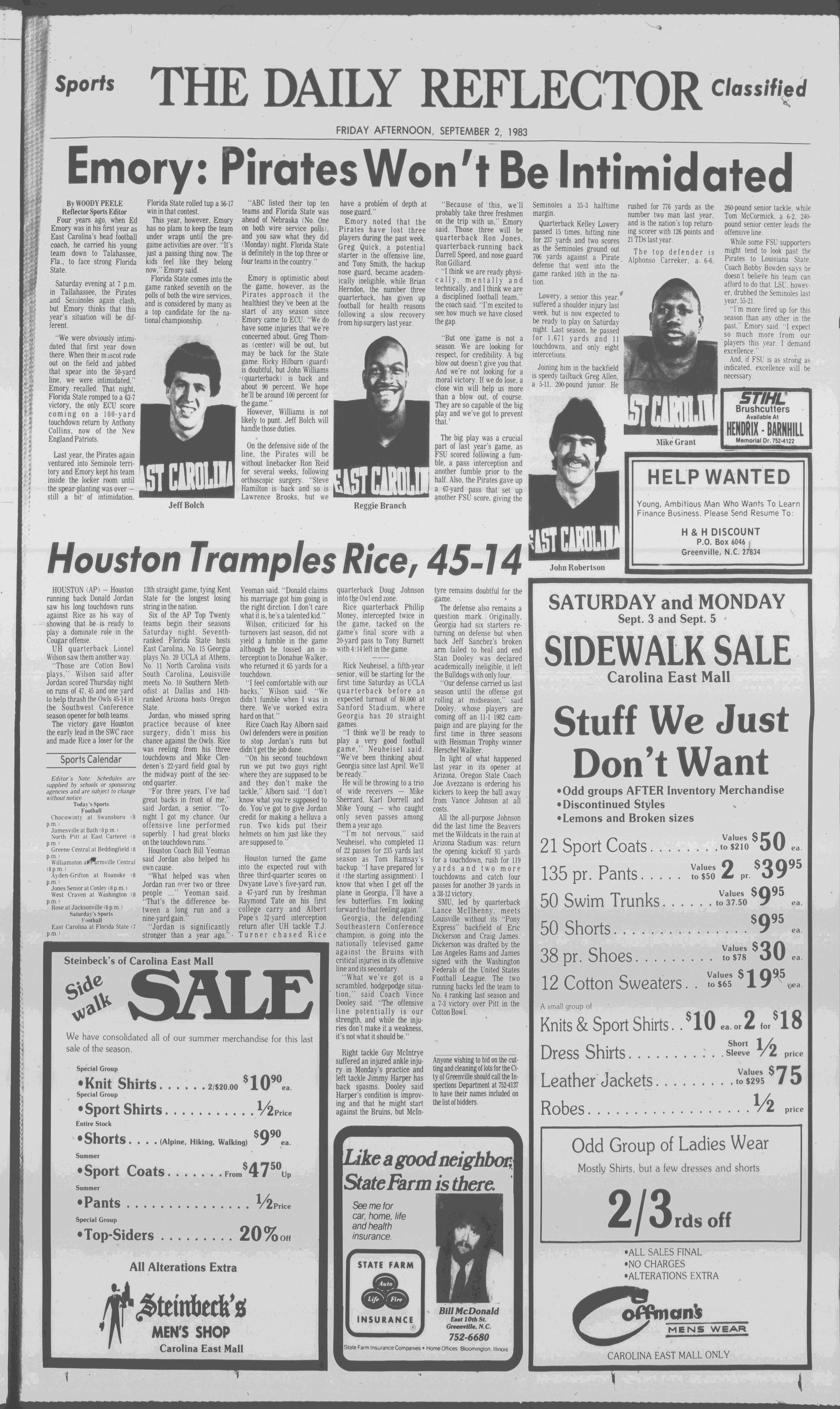 Results of the ECU Pirates first football game of 1983 against nationally-ranked Florida State. ^ ^