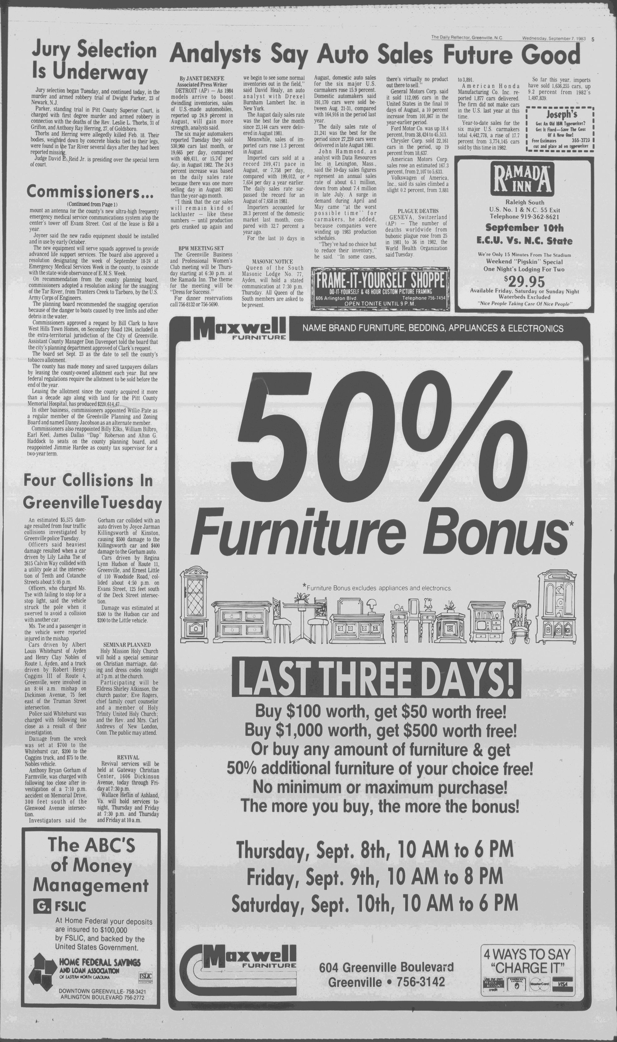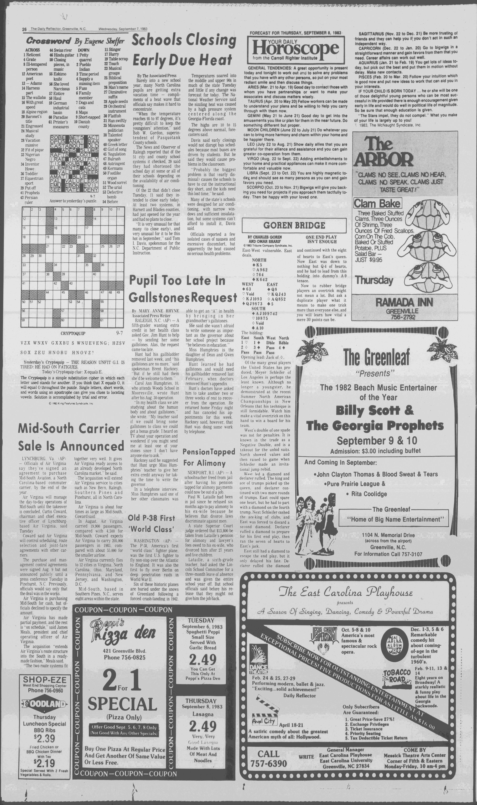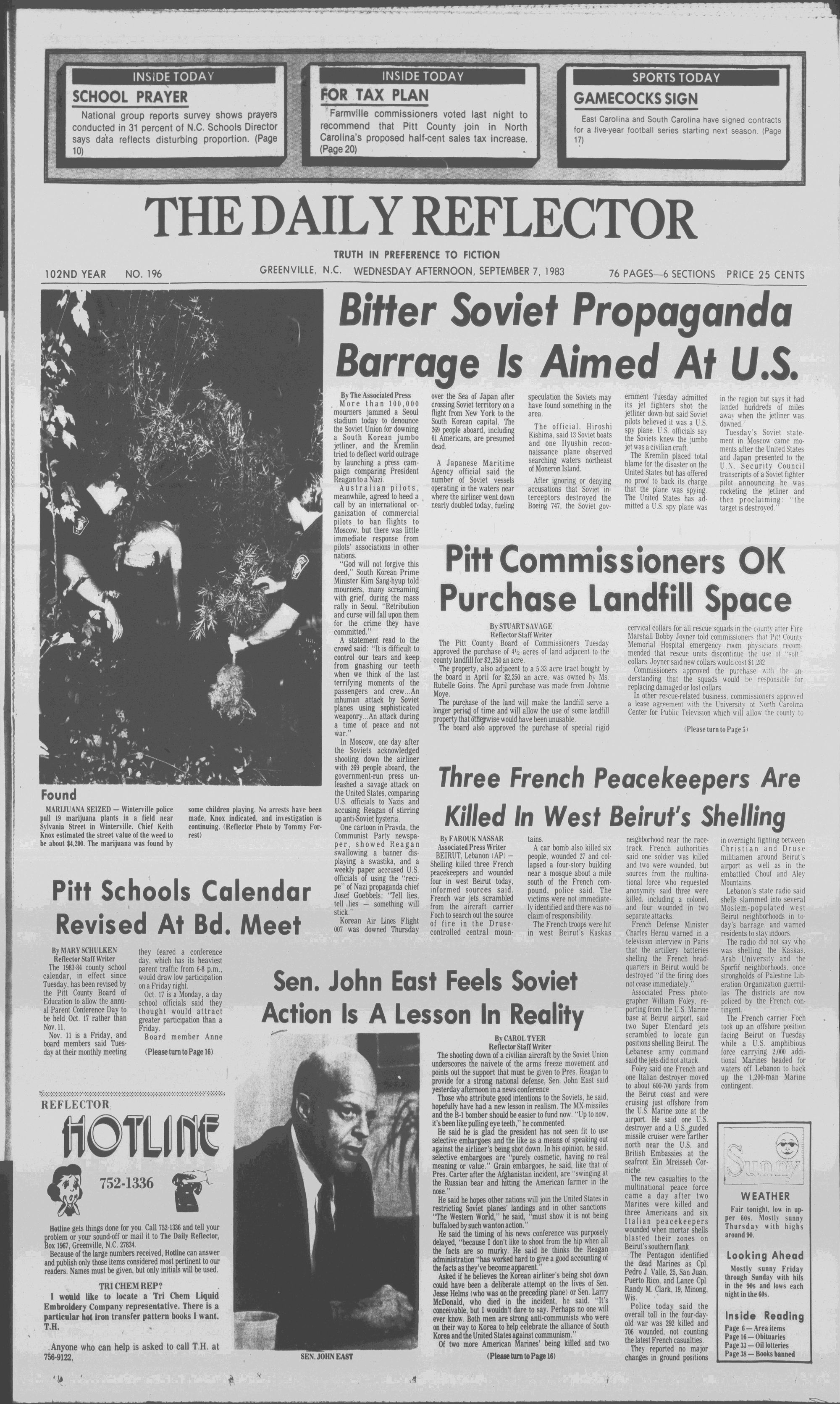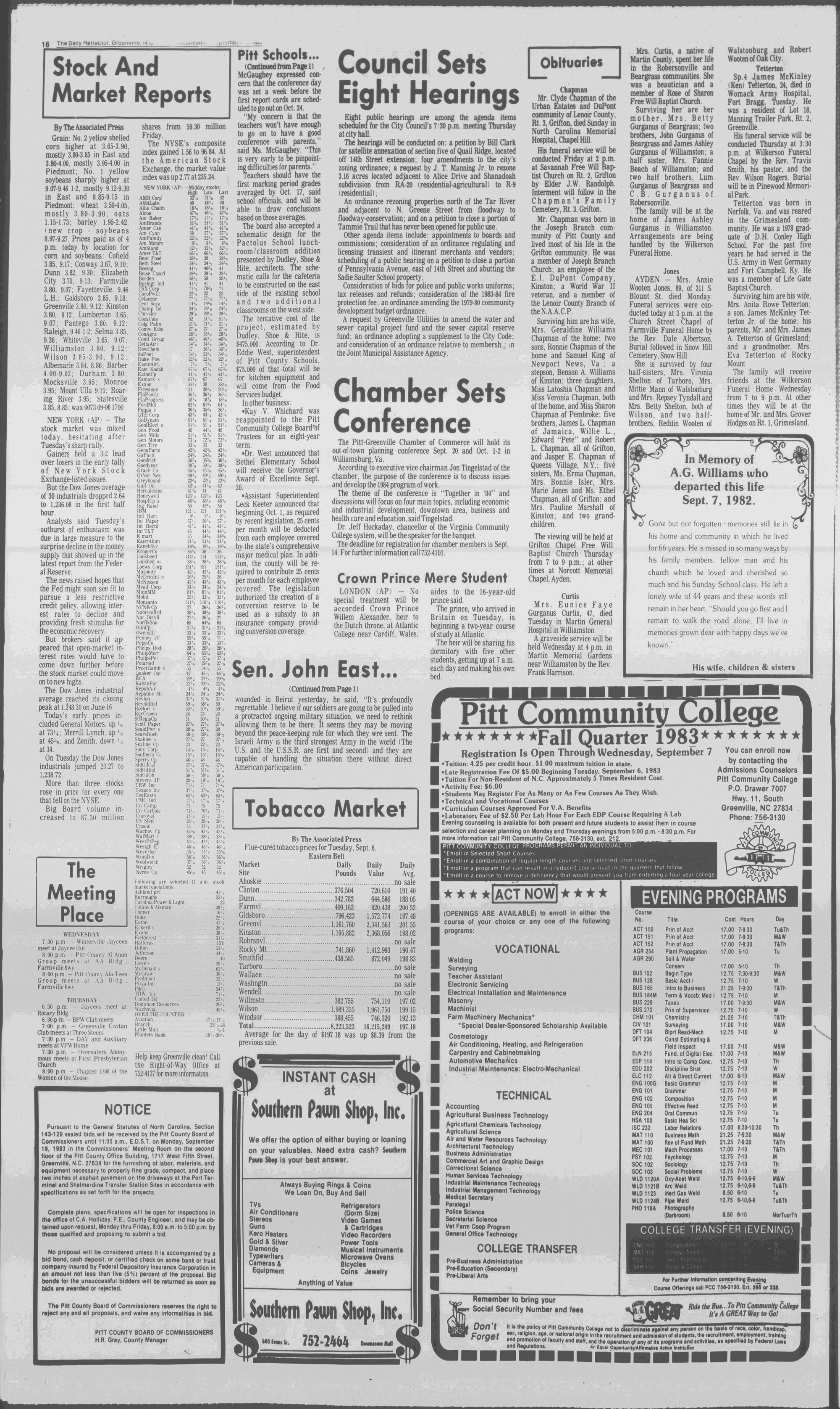 102NDYEAR NO. 196TRUTH IN PREFERENCE TO FICTIONGREENVILLE, N.C. WEDNESDAY AFTERNOON, SEPTEMBER 7, 1983