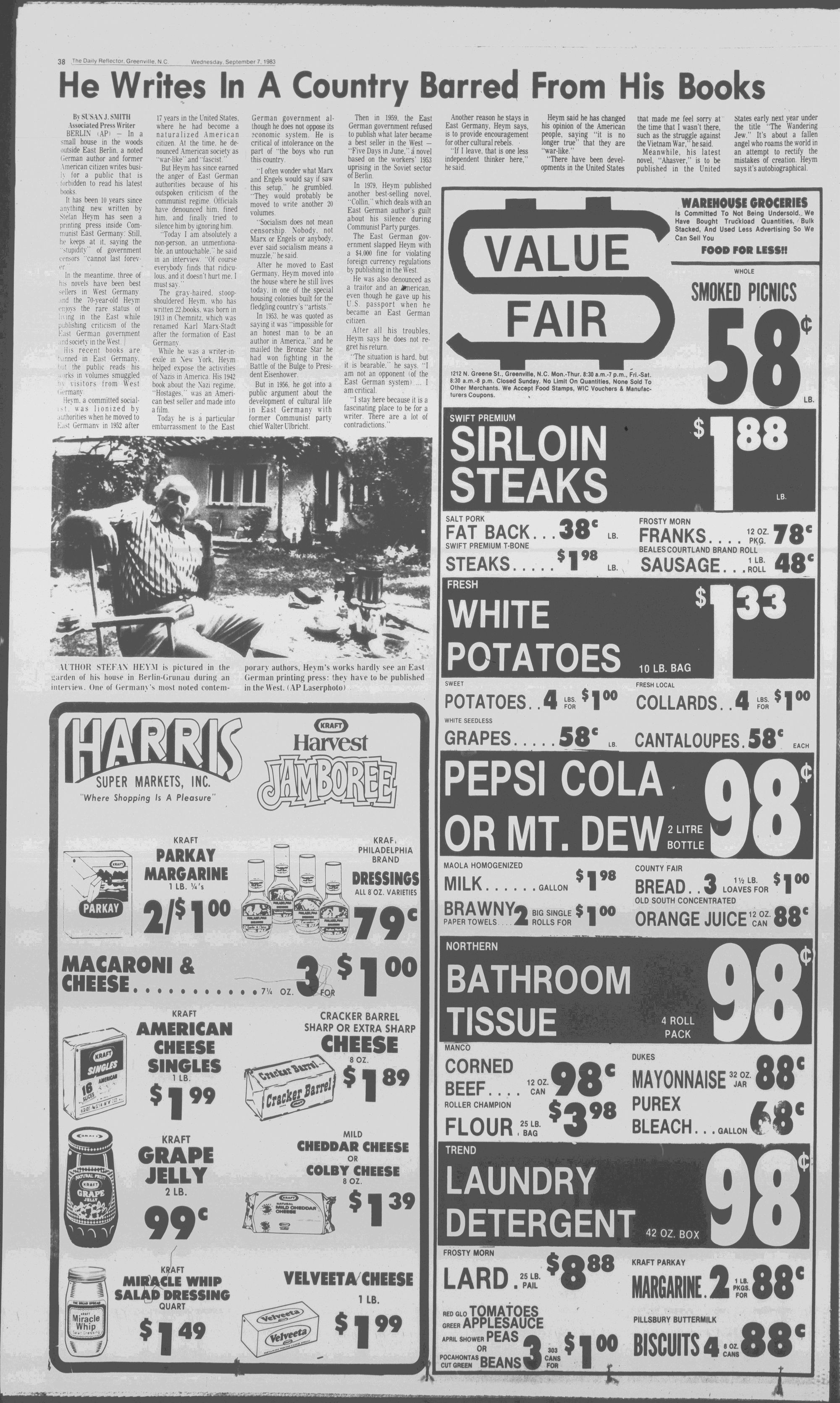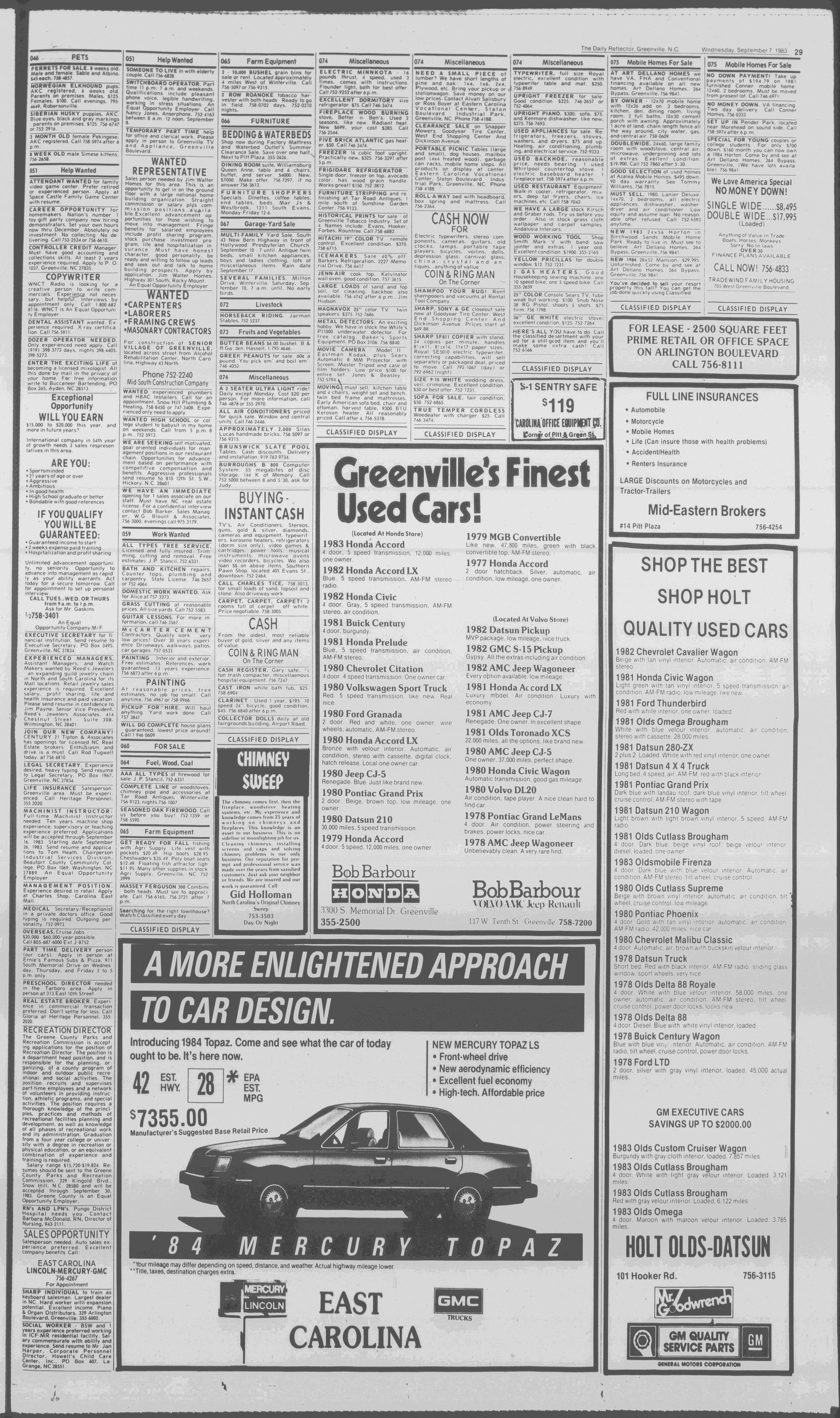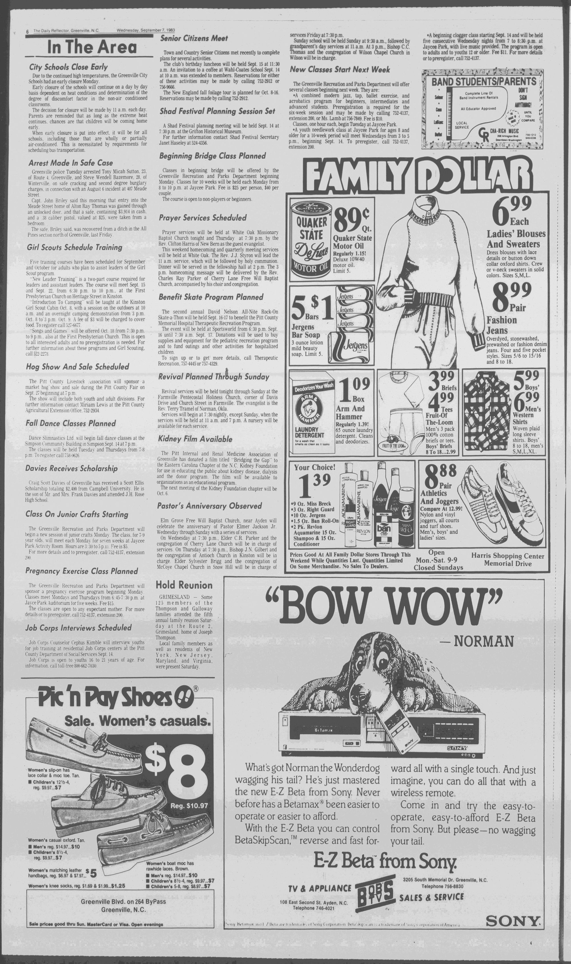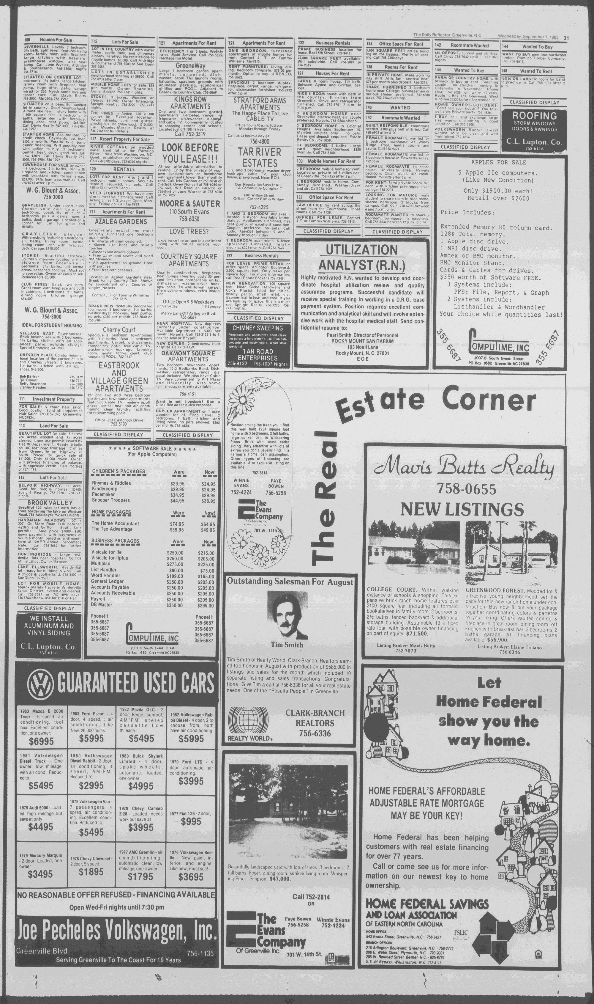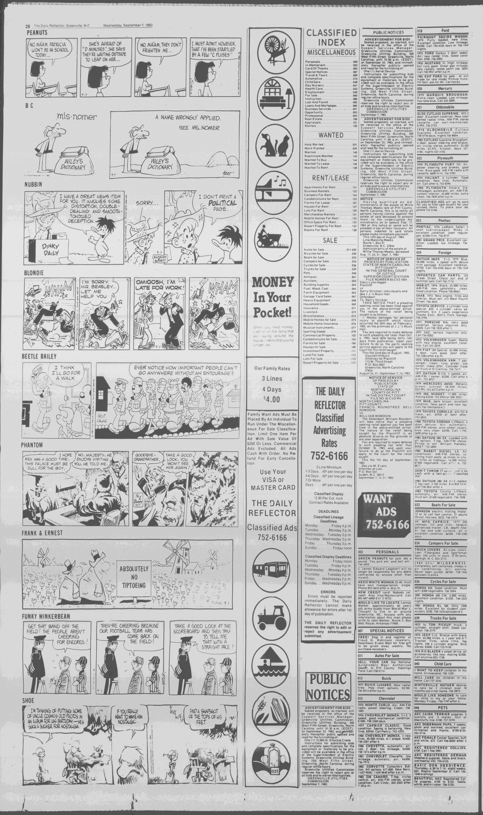 102NDYEAR NO. 196TRUTH IN PREFERENCE TO FICTIONGREENVILLE, N.C. WEDNESDAY AFTERNOON, SEPTEMBER 7, 1983
