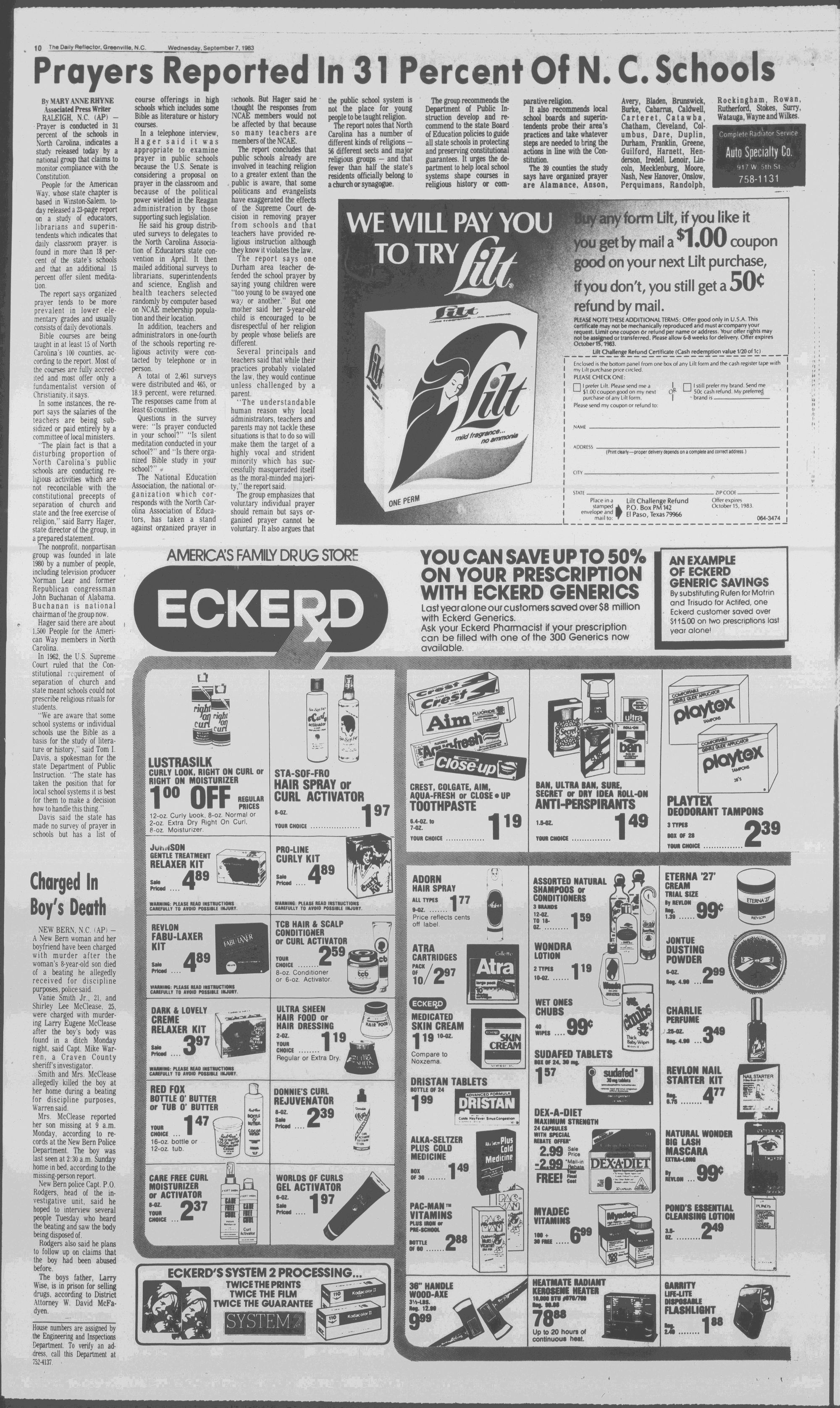 National group reports survey shows prayers conducted in 31 percent of N.C. Schools Director says data reflects disturbing proportion. (Page 10)