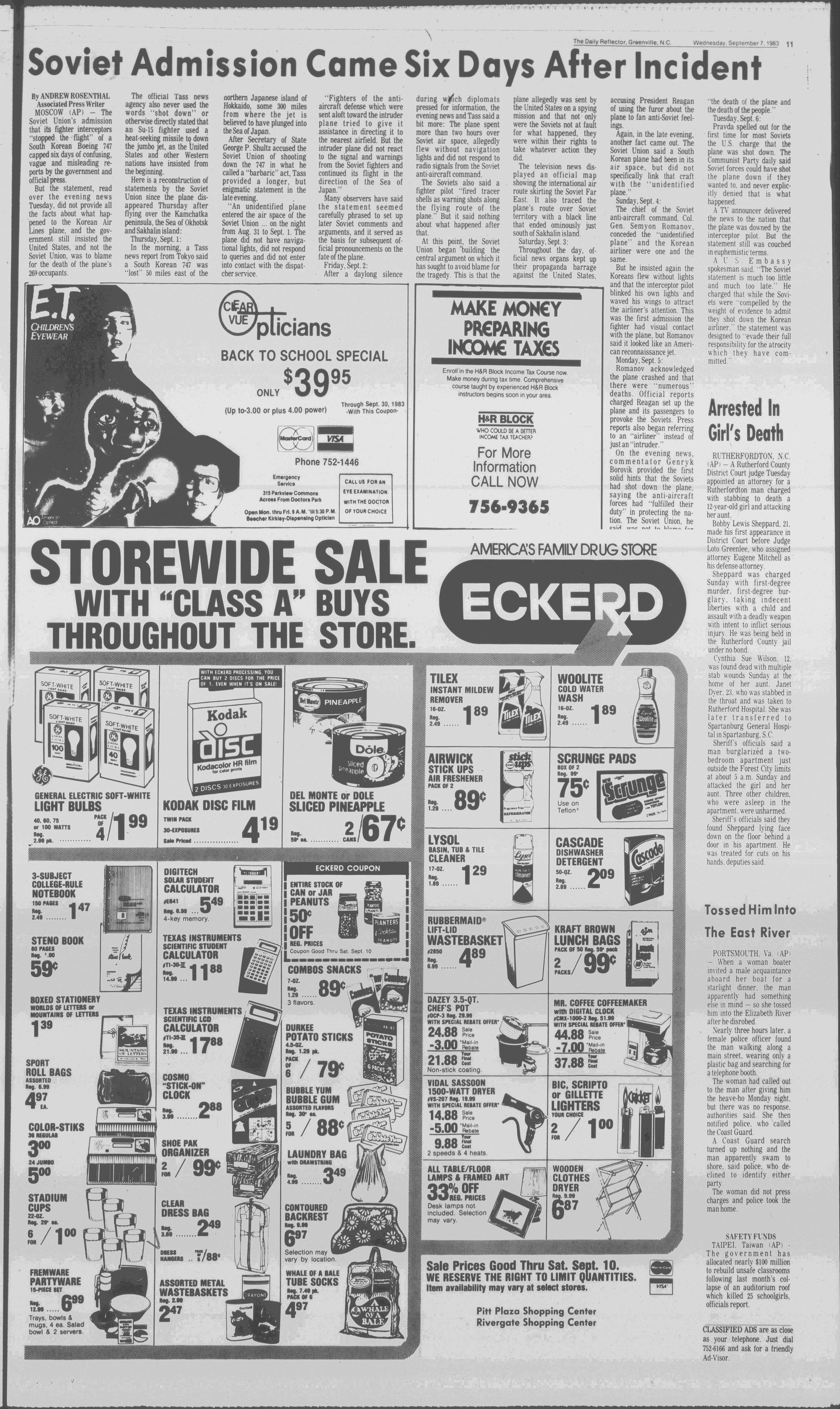 over the Sea of Japan after crossing Soviet territory on a flight from New York to the South Korean capital. The 269 people aboard, including 61 Americans, are presumed dead.