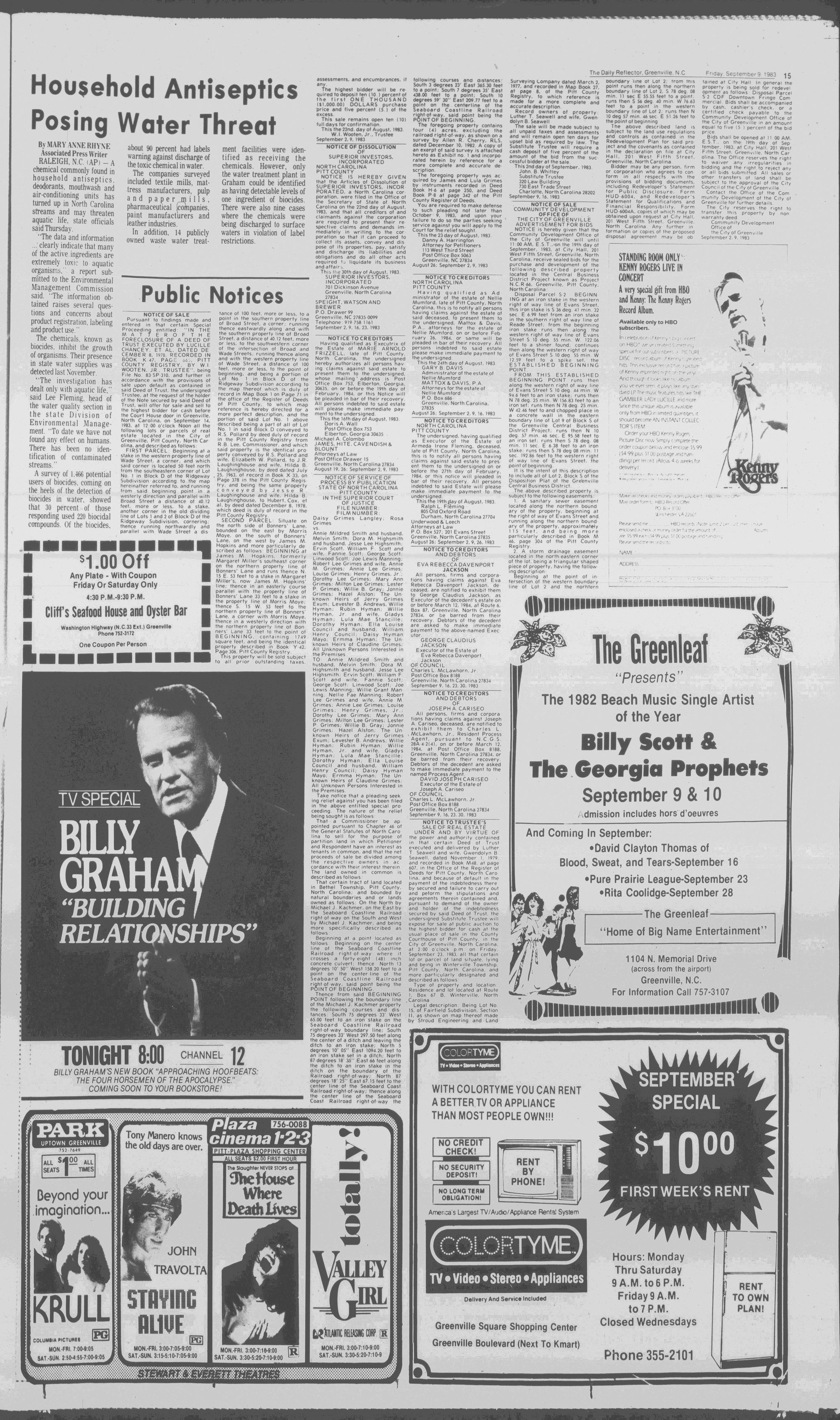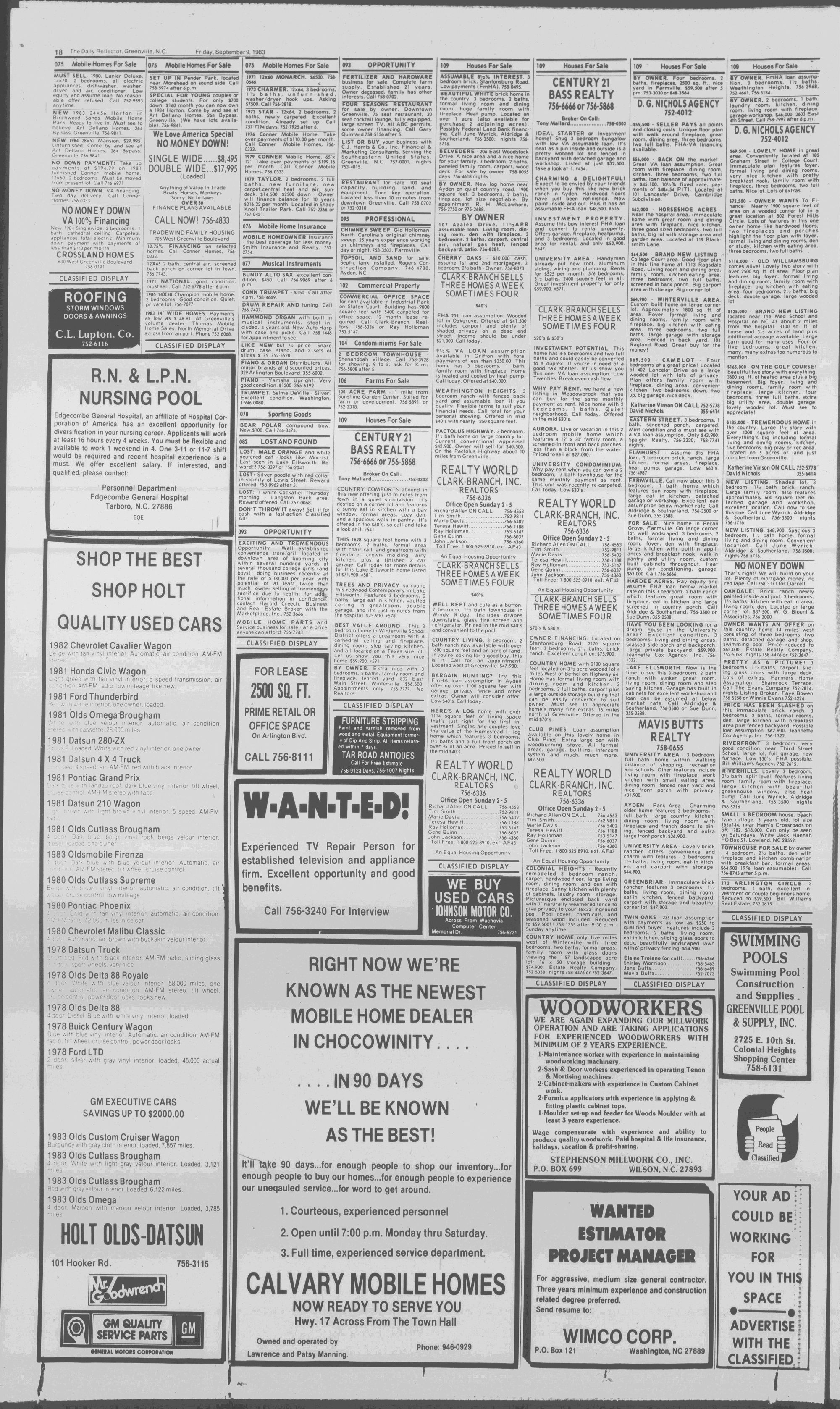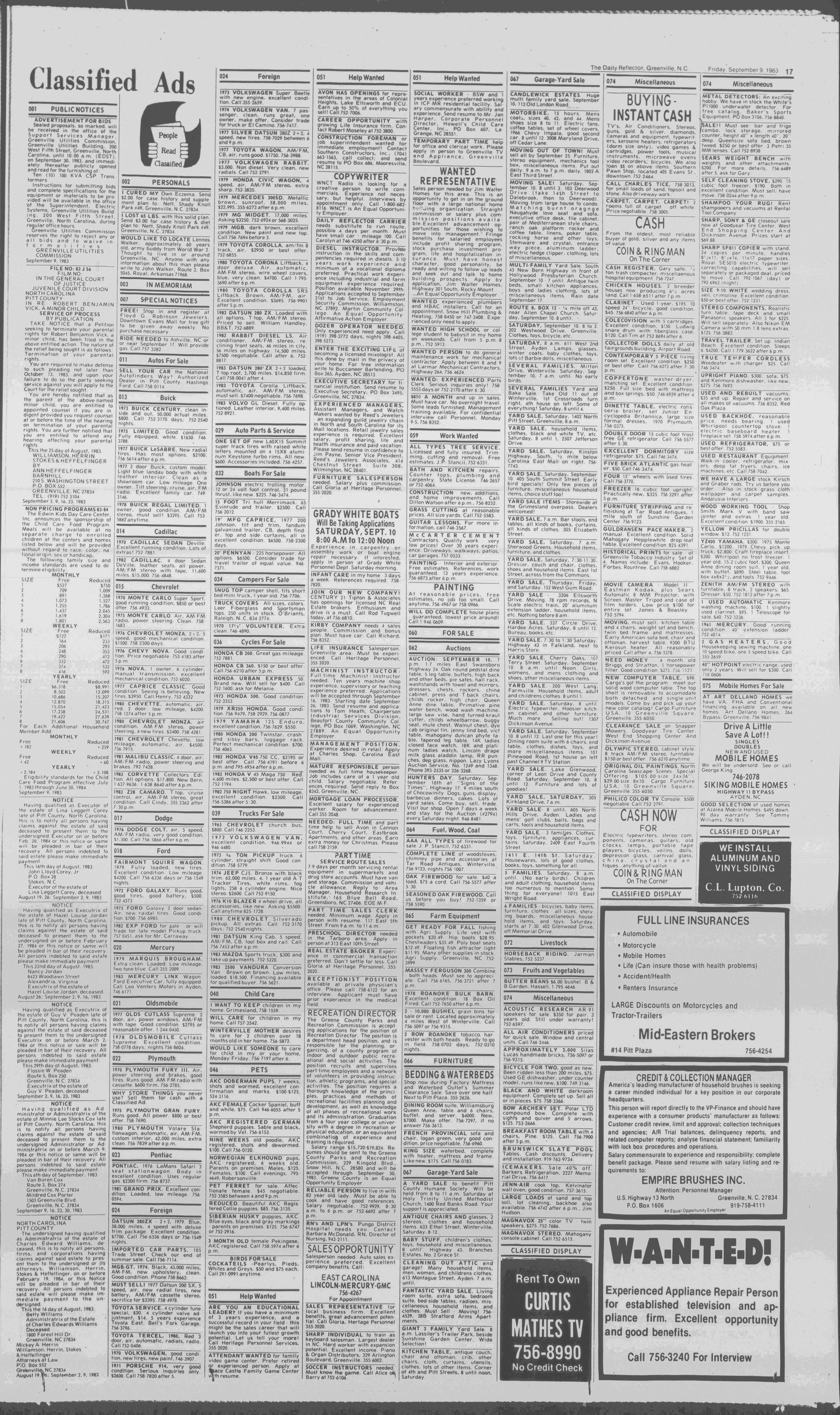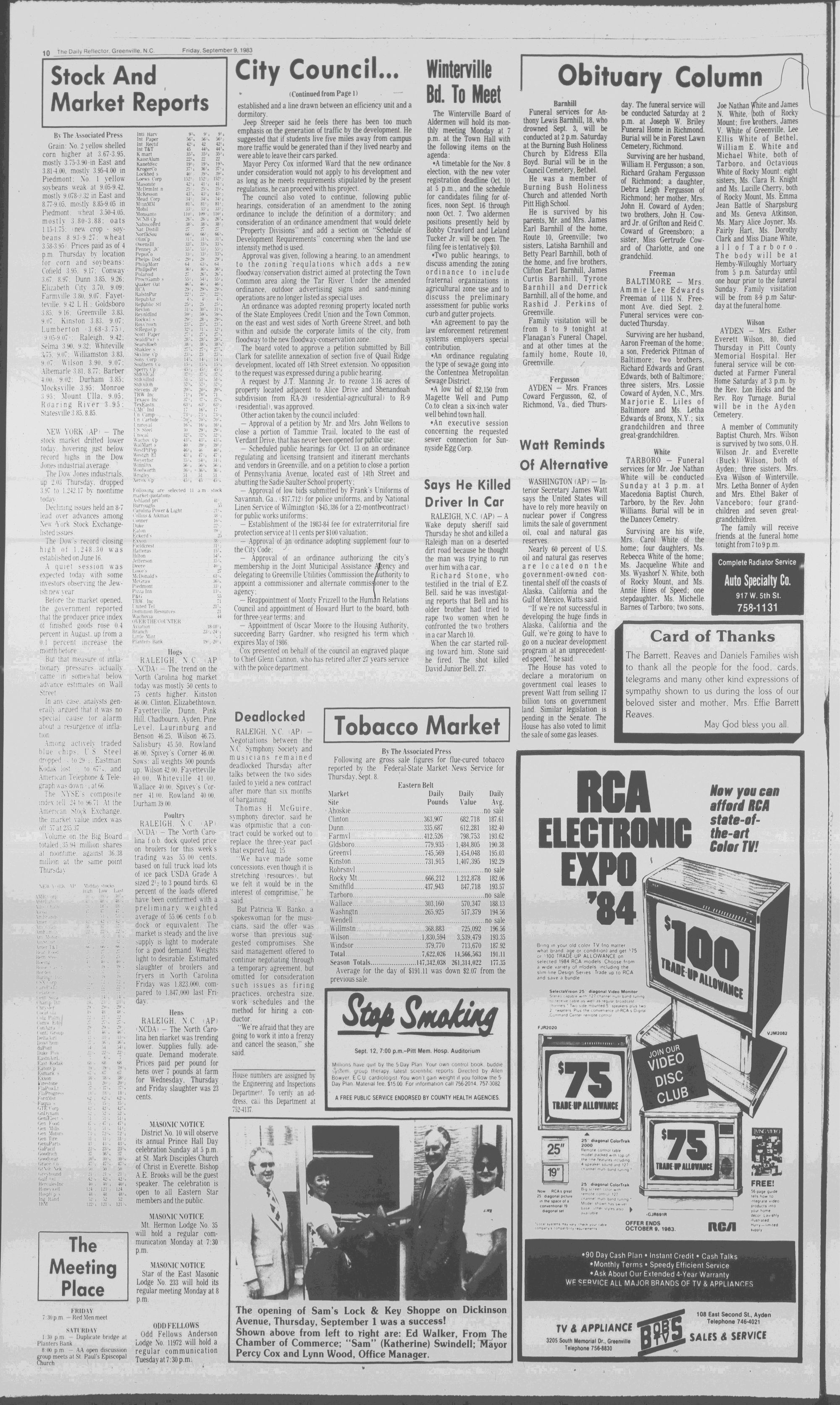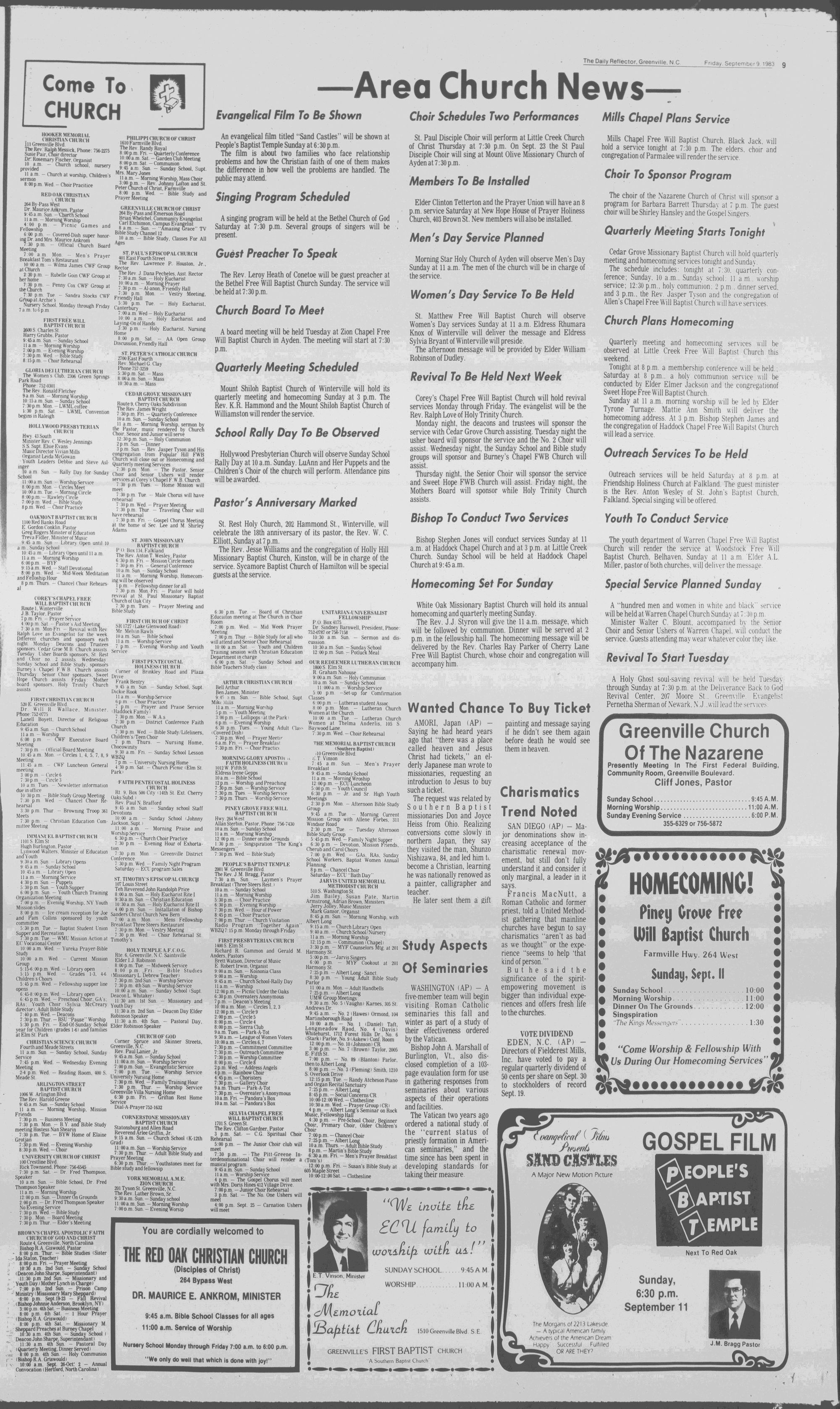 GREENVILLE, N.C. FRIDAY AFTERNOON, SEPTEMBER 9, 1983