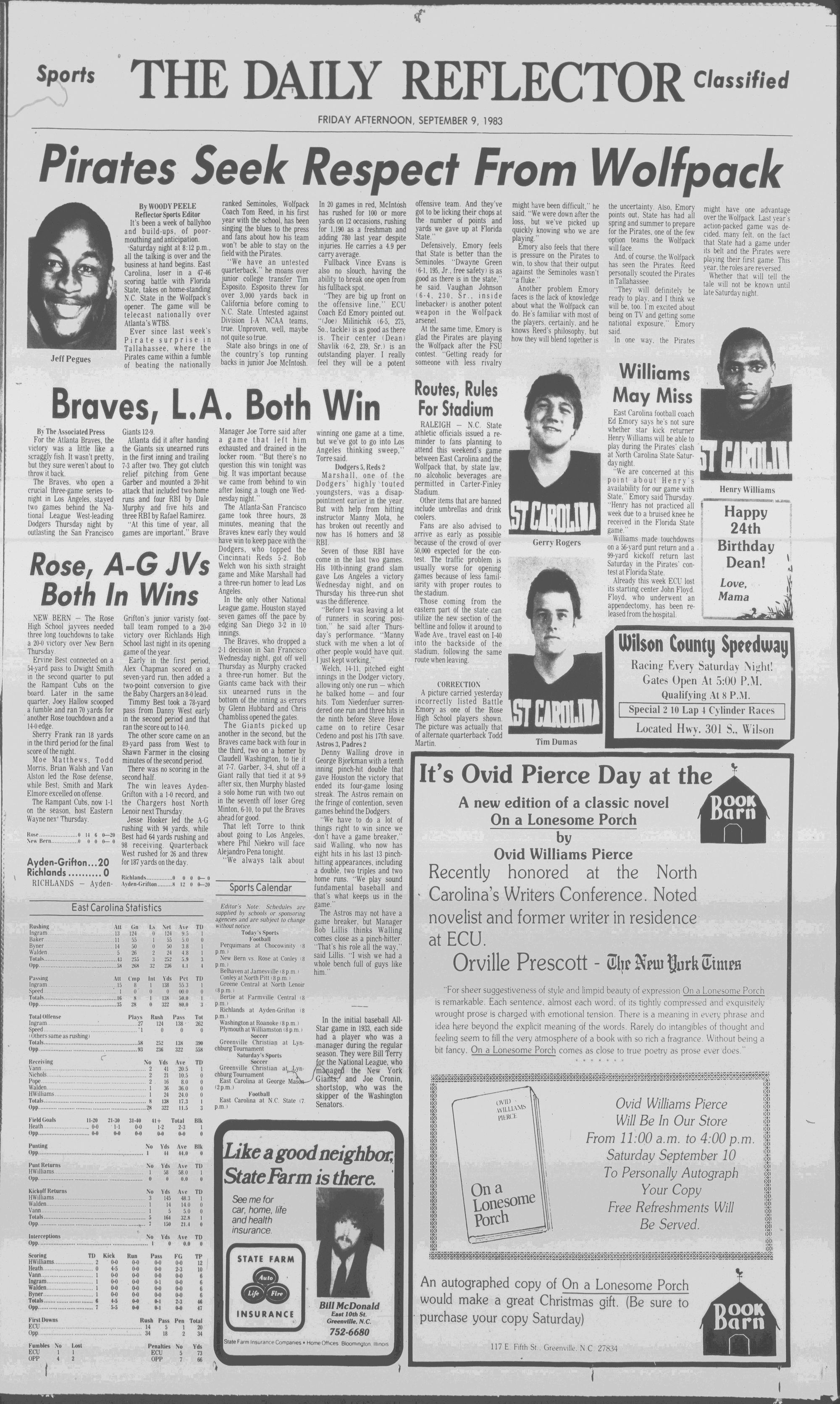 -Results of the 14th football game between the ECU Pirates the NCSU Wolfpack. -The World of Biking-safety, laws, recreation-and everything in between.THE DAILY REFLECTOR