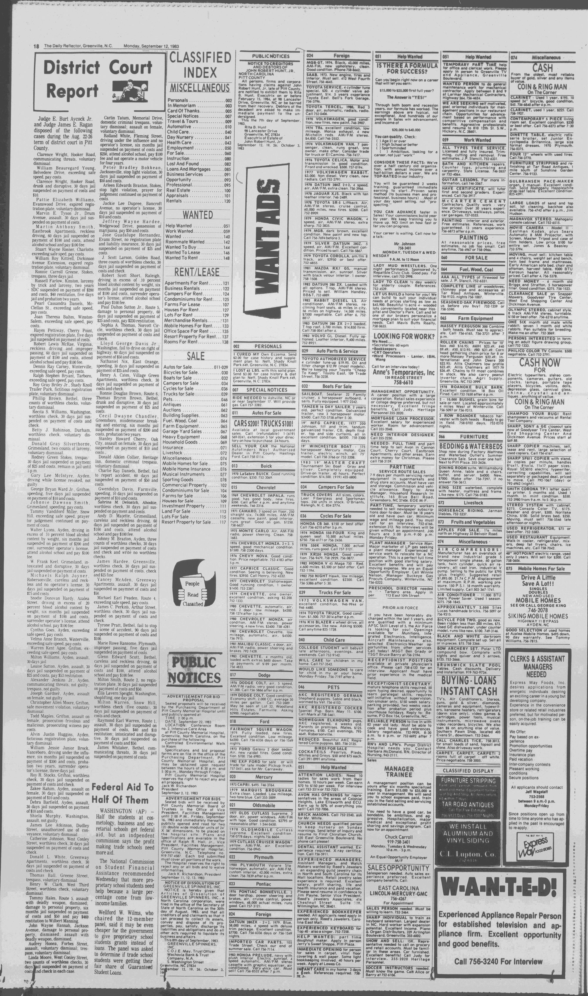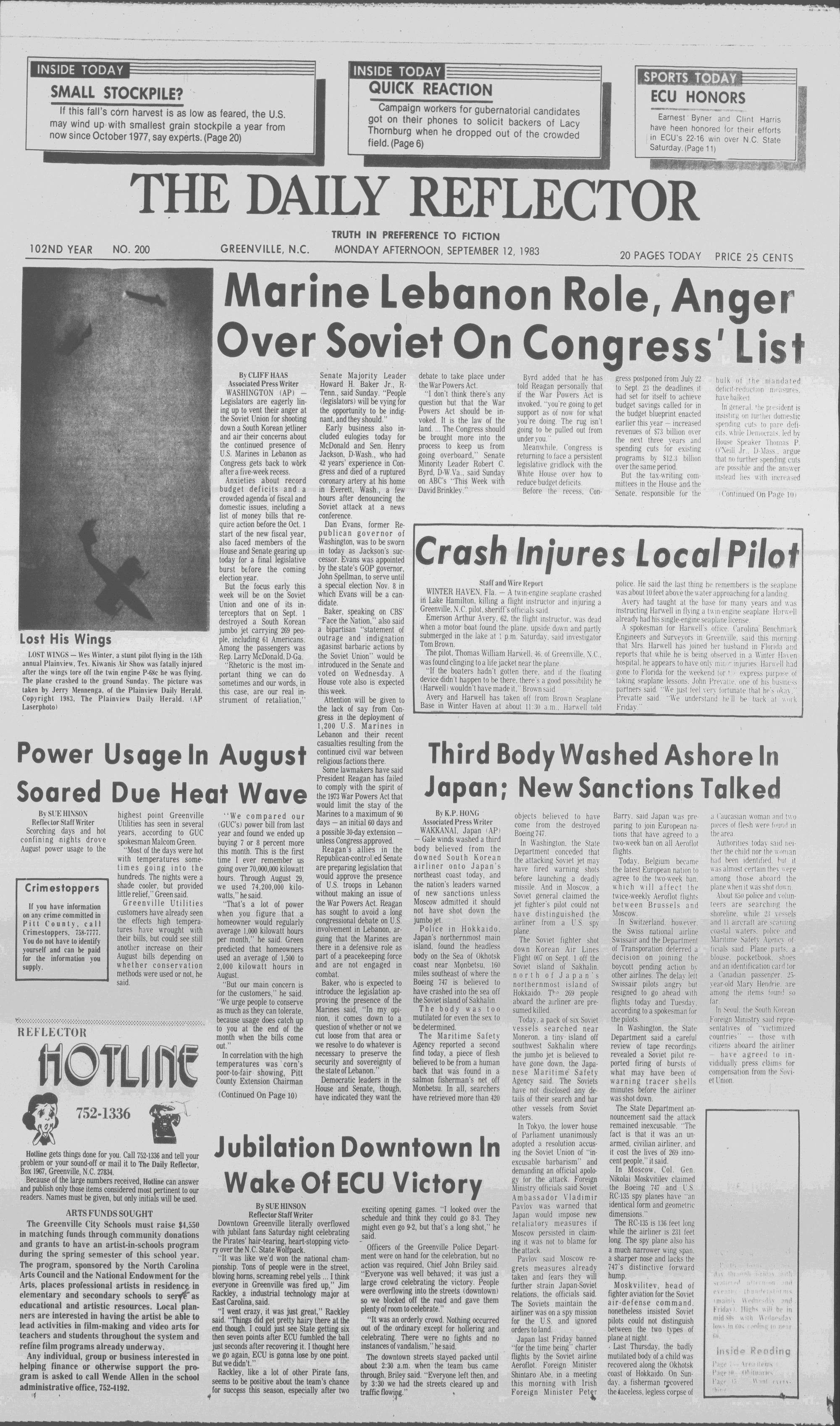 8 The Daily Reflector, Greenville, N.C. Monday, September 12,1983