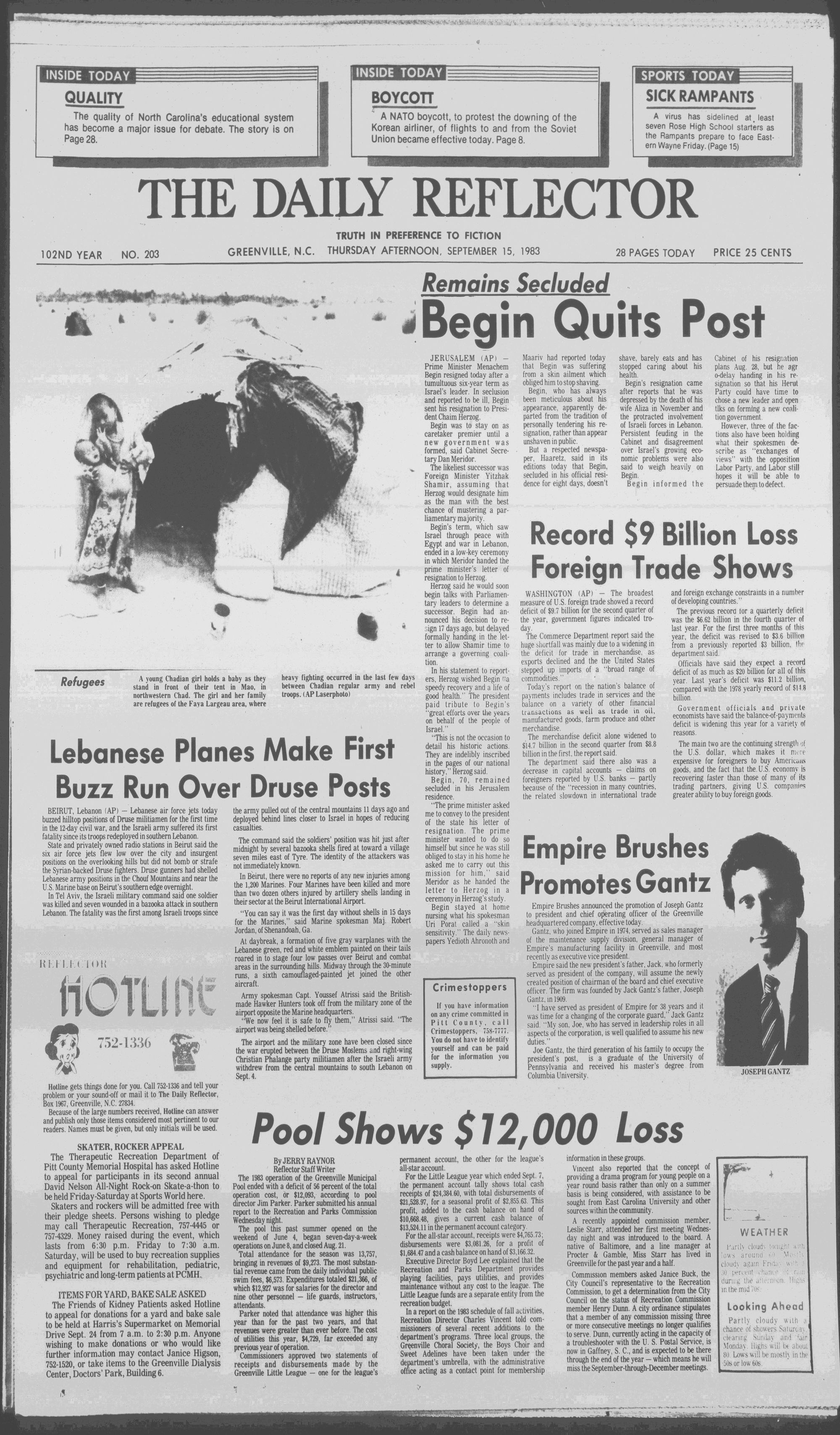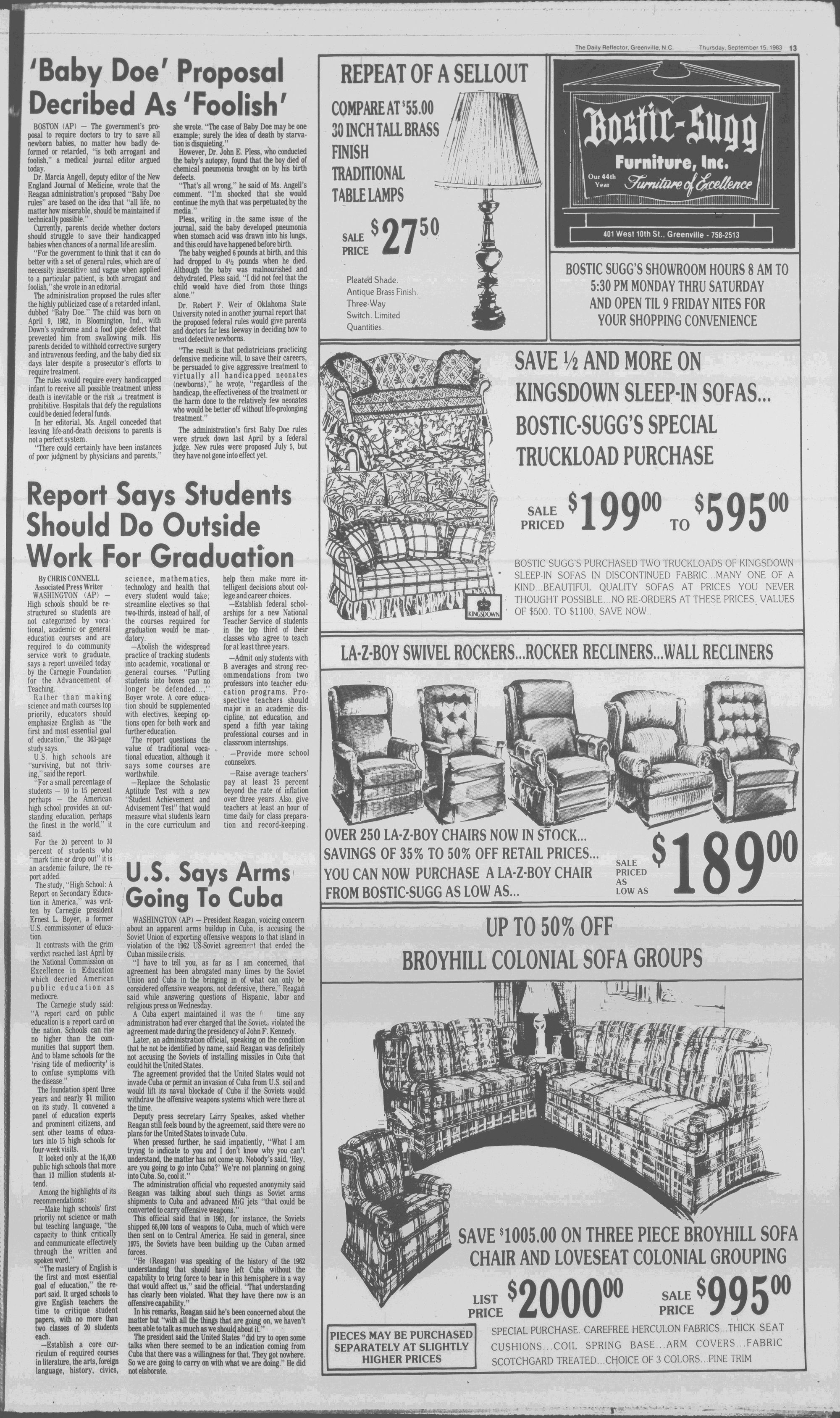 The newspaper was established in 1882, and was originally named the Eastern Reflector. It was founded by Julian Whichard and David Jordan with equipment they purchased from The Greenville Express. On December 10, 1894, it adopted the name The Reflector and began publishing every day. Cox Newspapers acquired The Daily Reflector in 1996. Creator: Daily Reflector (Greenville, N.C.)