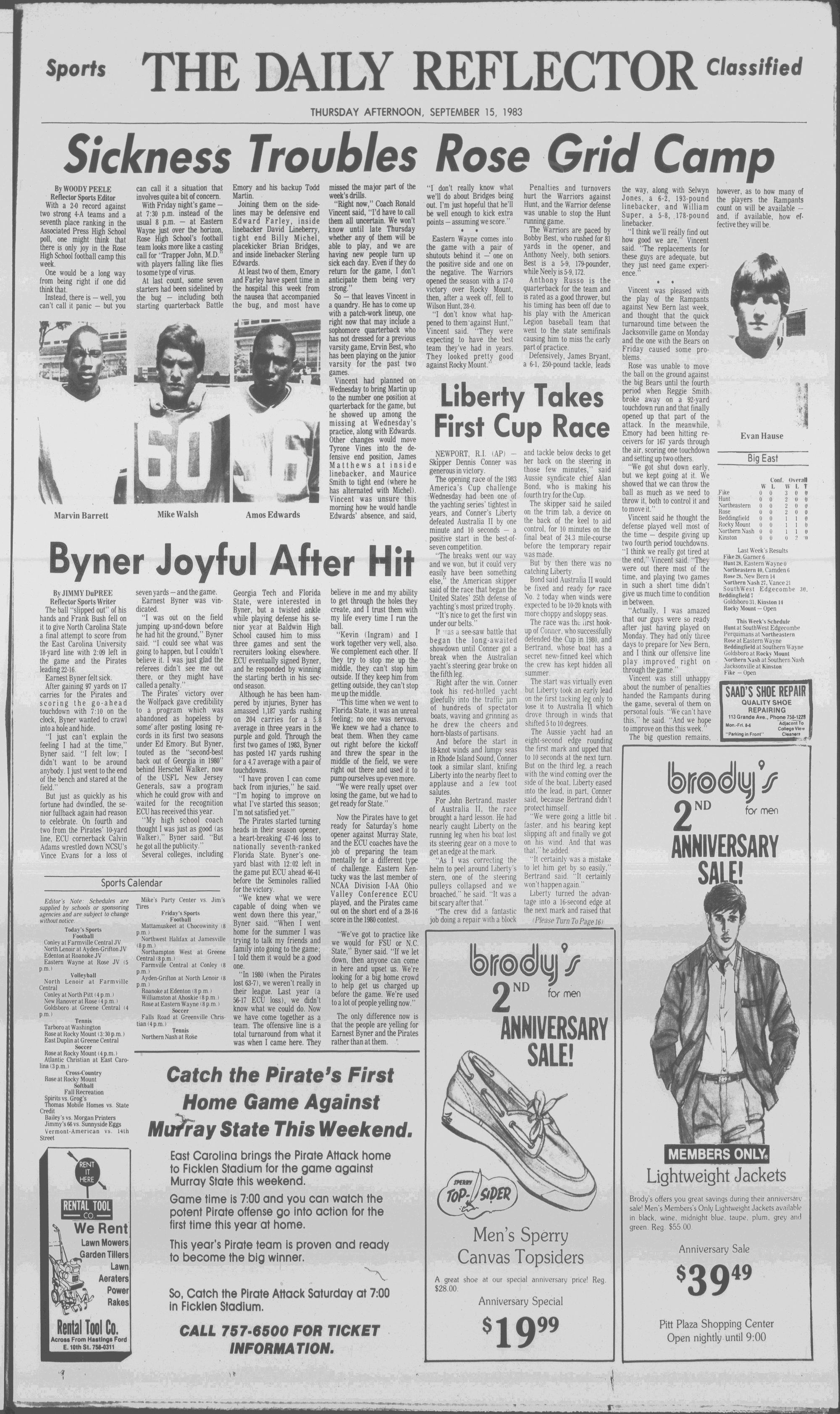 A virus has sidelined at .least seven Rose High School starters as the Rampants prepare to face Eastern Wayne Friday. (Page 15)THE DAILY REFLECTOR