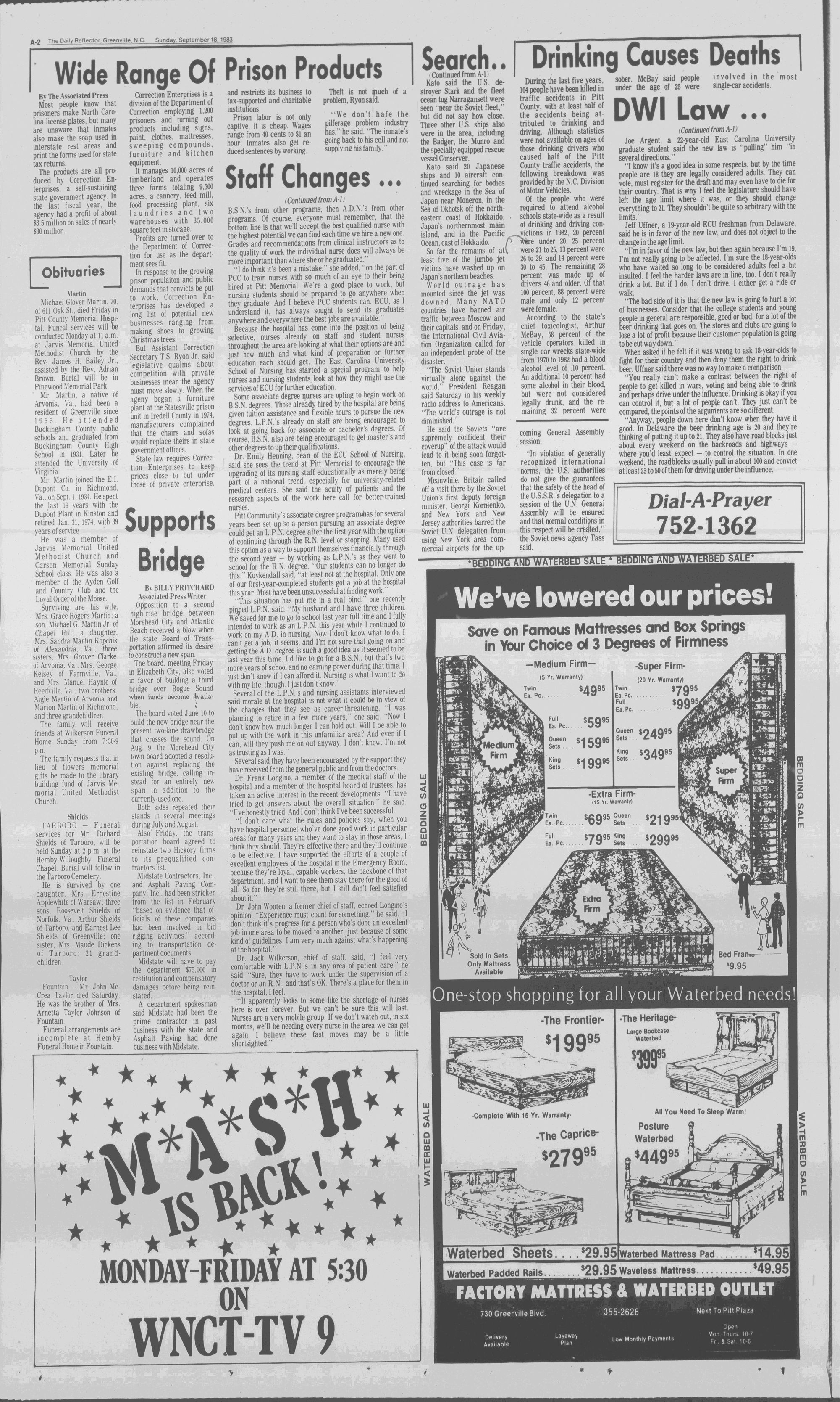 The result for Pitt Memorial has been a fluctuation in tient care load. The hospital has units that one day will lave three, patients; the next day, 25. Its difficult to plan nursing care. Were even doing something we wouldnt have consiitared a short time ago asking some of our nurs^ to float from one unit to another to meet this staffing flexibility need.