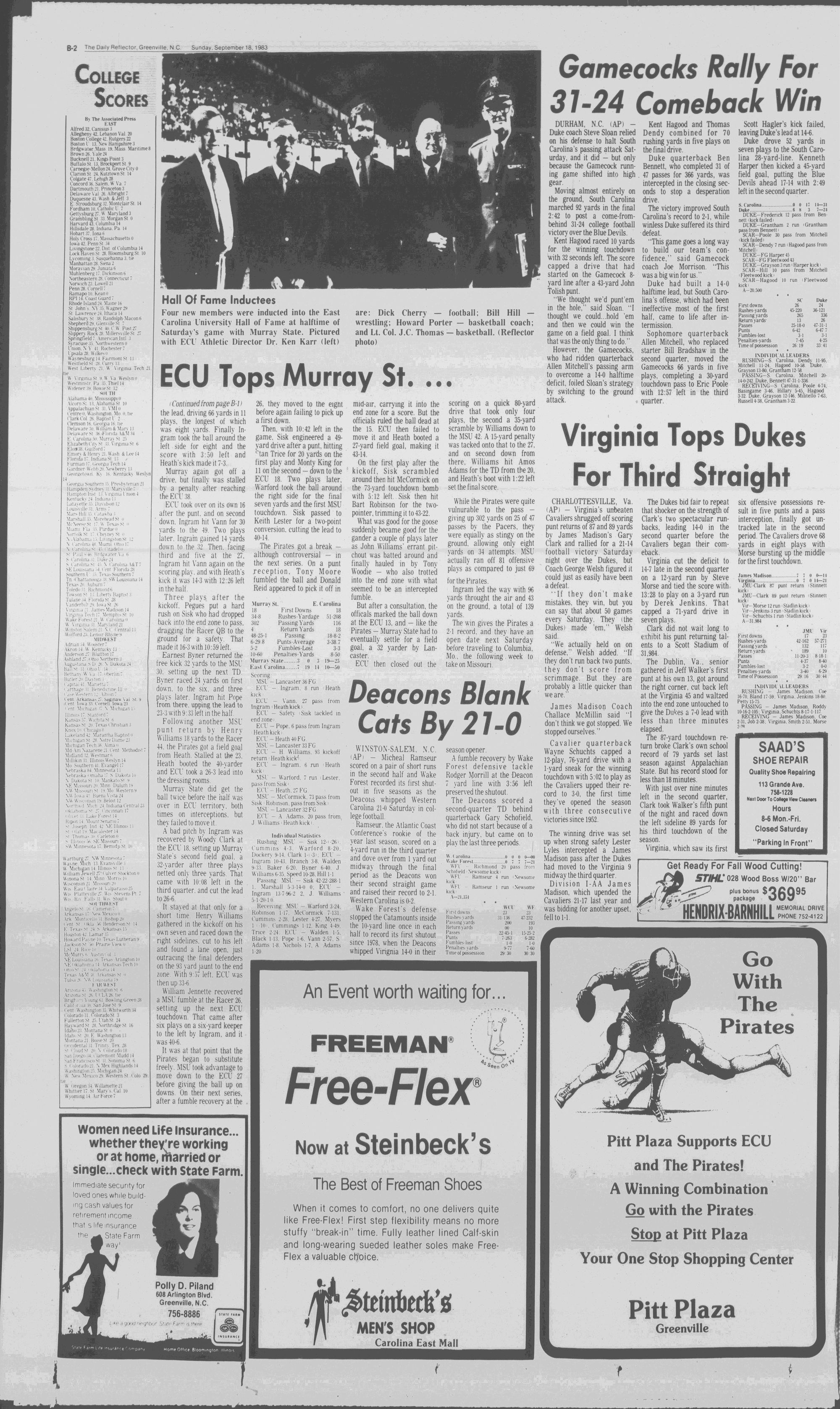 East Carolina toppled Murray State 50-25 In the Pirates home opener as Kevin Ingram ran for a pair of touchdowns. (Page B-1)