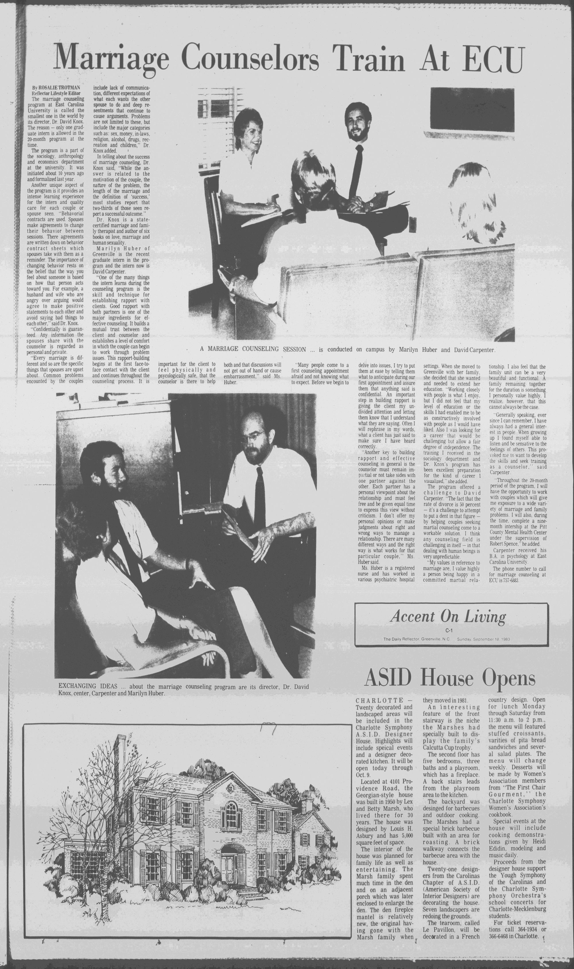 Marriage counselors are training at East Carolina University. Rosalie Trotman tells the story on C-1.Today's Reading