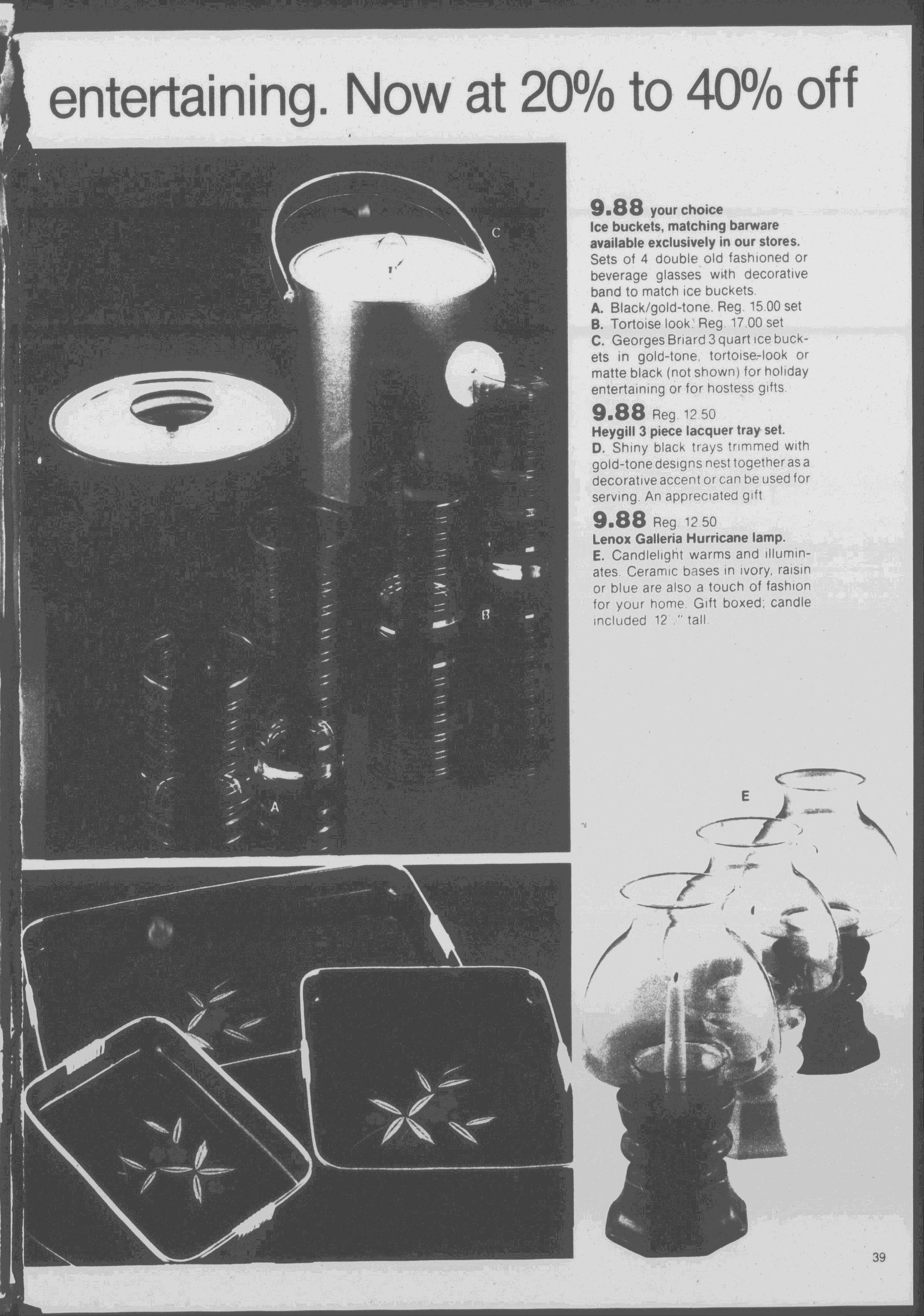 Ice buckets, matching barware available exclusively in our stores.