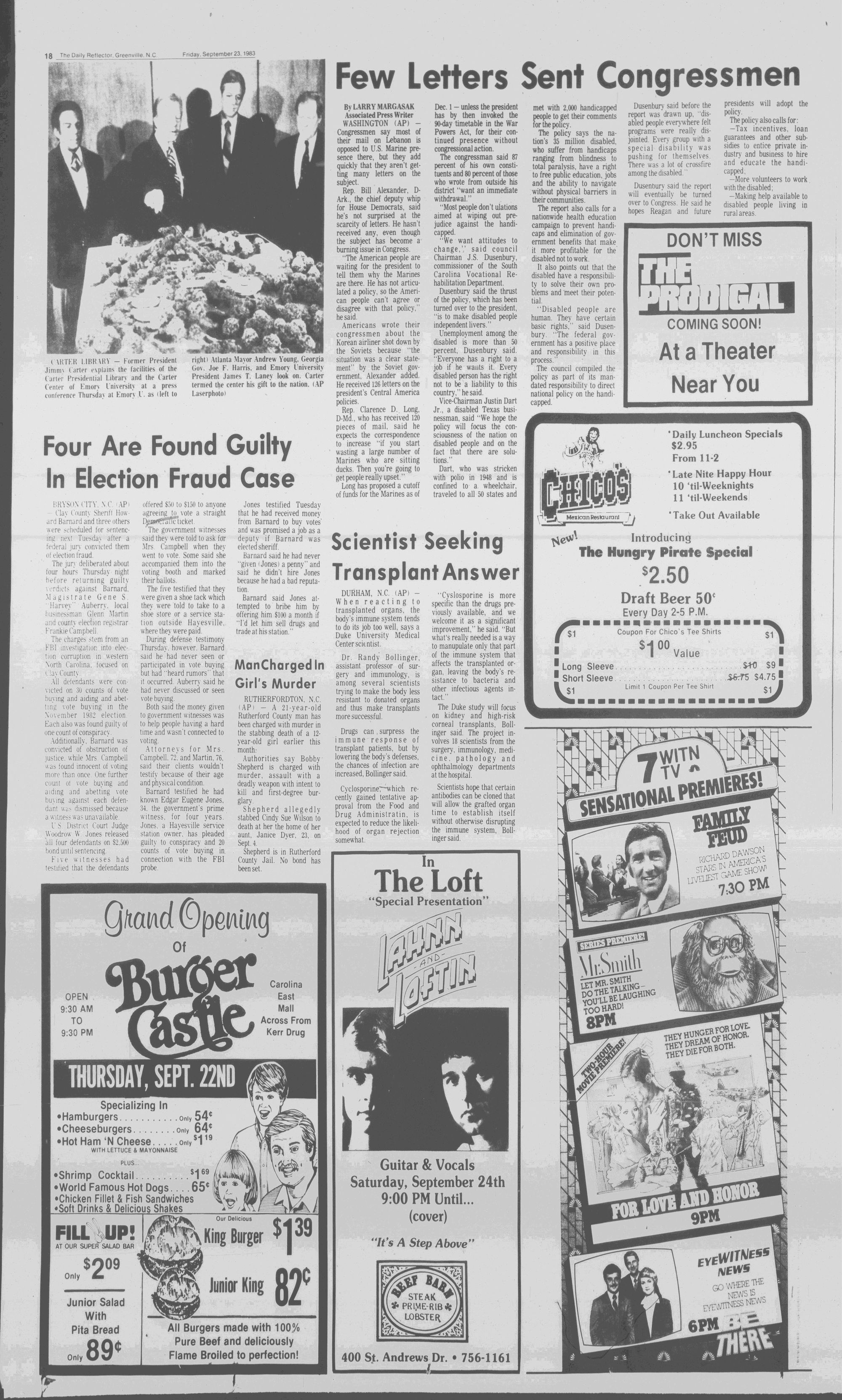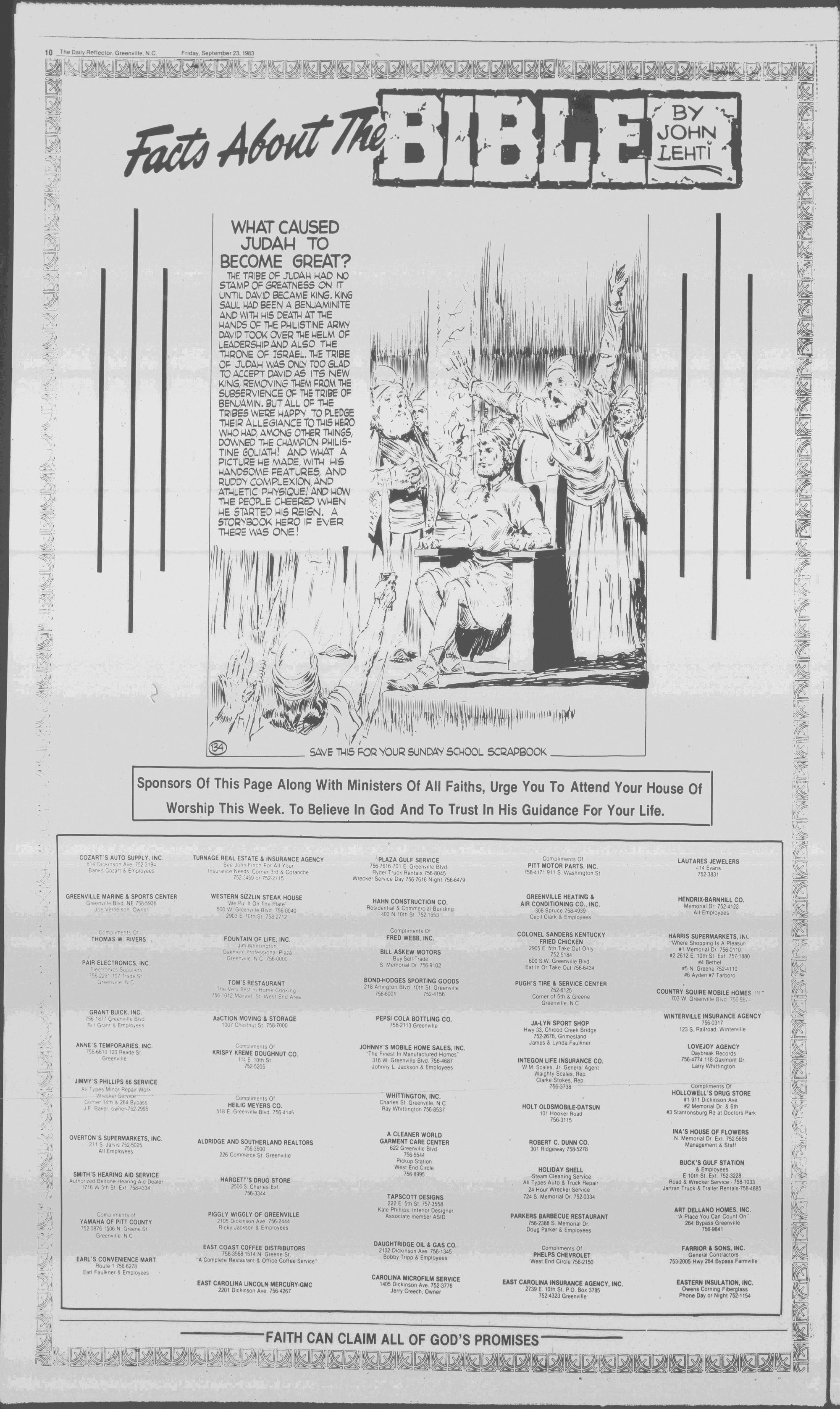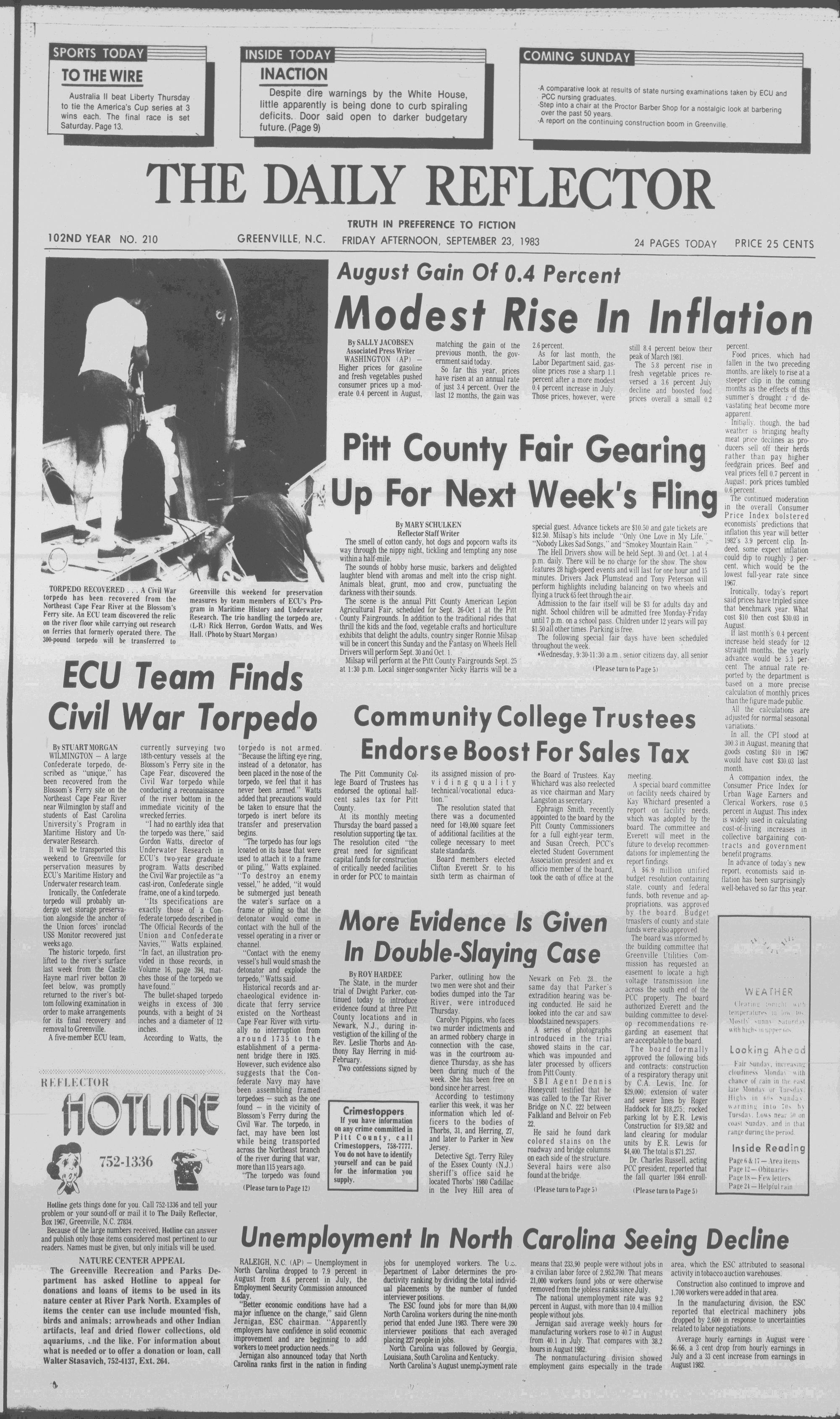 The newspaper was established in 1882, and was originally named the Eastern Reflector. It was founded by Julian Whichard and David Jordan with equipment they purchased from The Greenville Express. On December 10, 1894, it adopted the name The Reflector and began publishing every day. Cox Newspapers acquired The Daily Reflector in 1996. Creator: Daily Reflector (Greenville, N.C.)