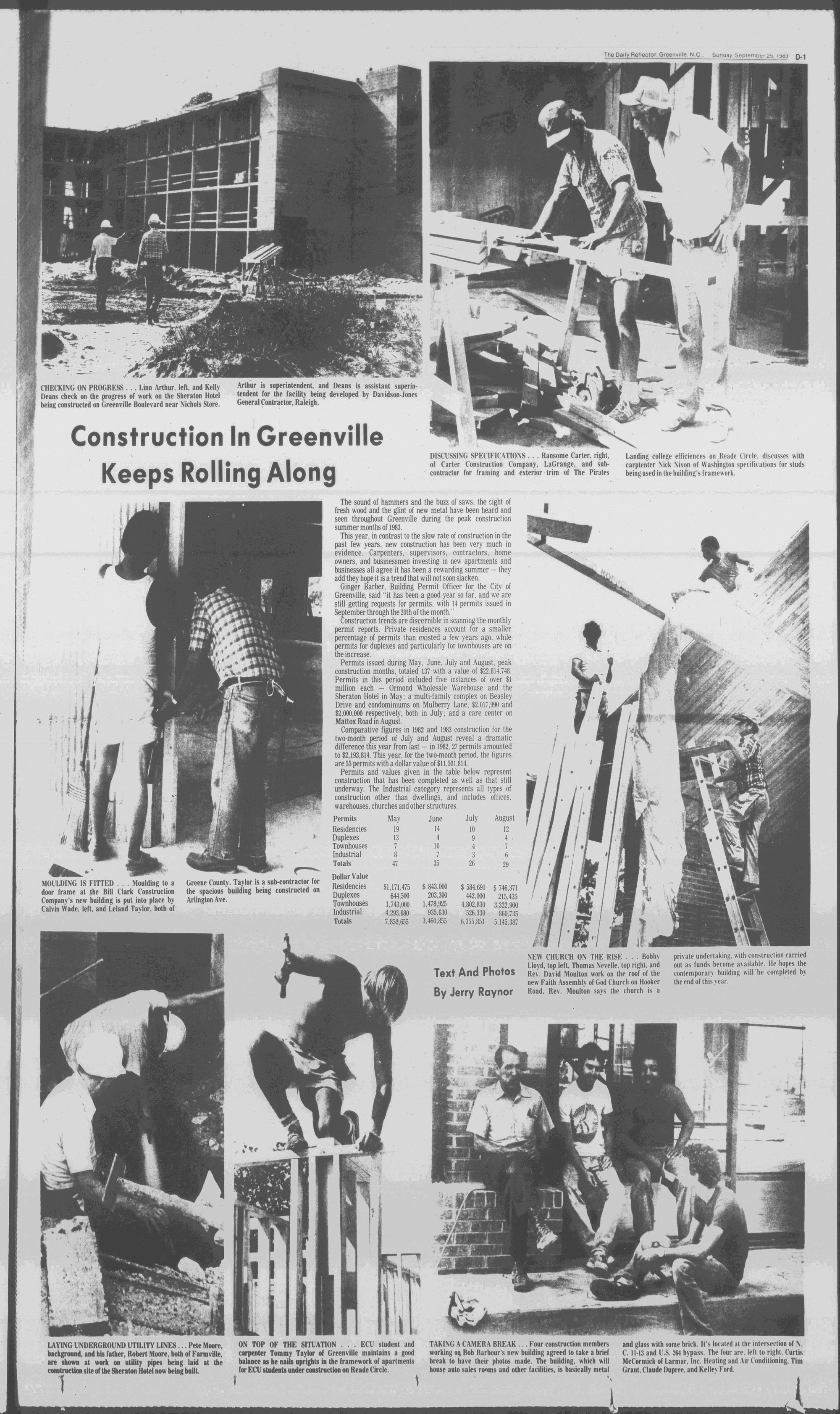 The buiiding industry in Greenviiie keeps roliing aiong. Jerry Raynor teiis the story in words and pictures on D-1.CUP DELAYED