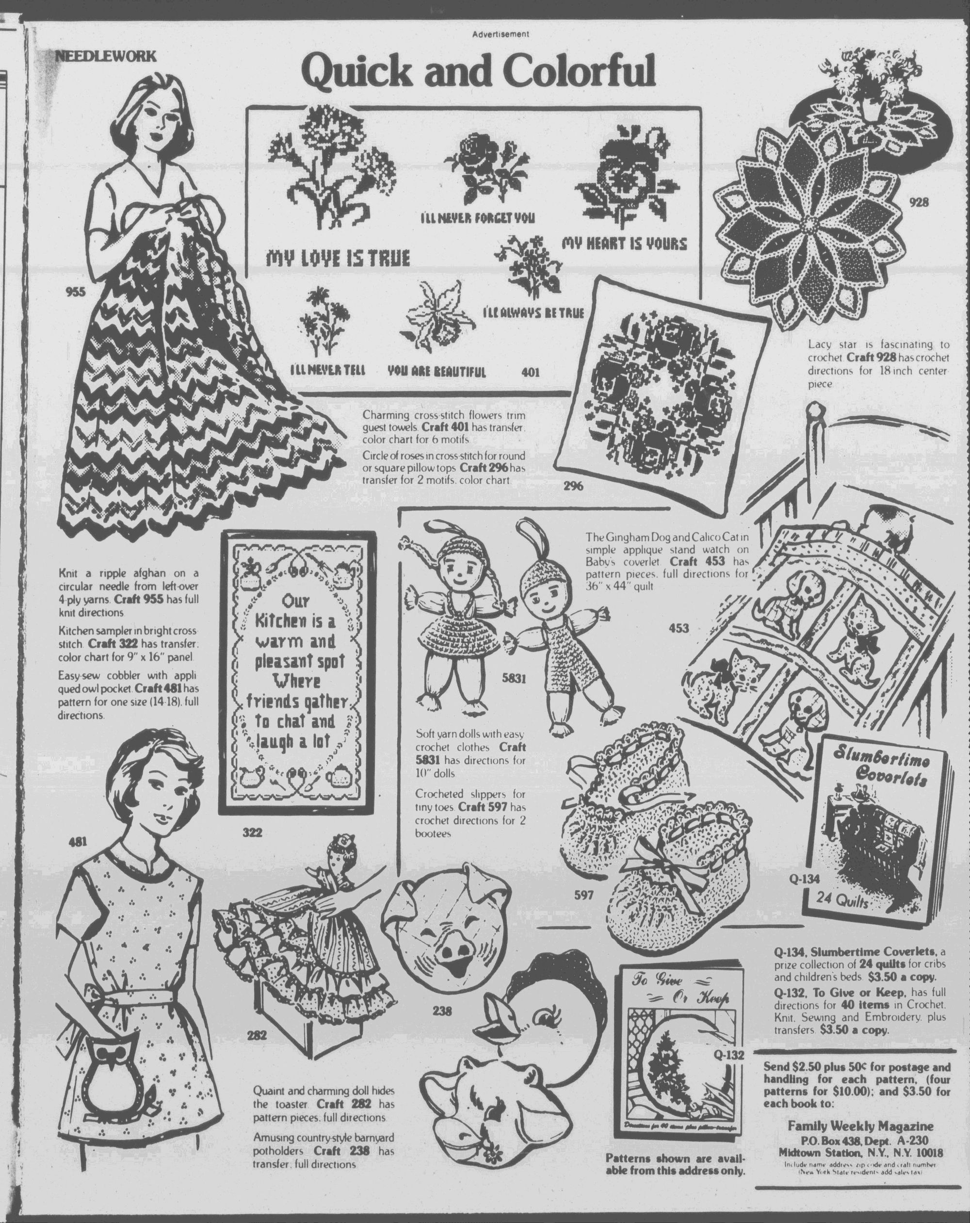 Fa'I.Winter has over ICO s-yies. choose one pattern tree. $1 bO 1984 NEEOLECRAFT CATALOG Filled with 150 designs, plus 3 free patterns mside. $1 50