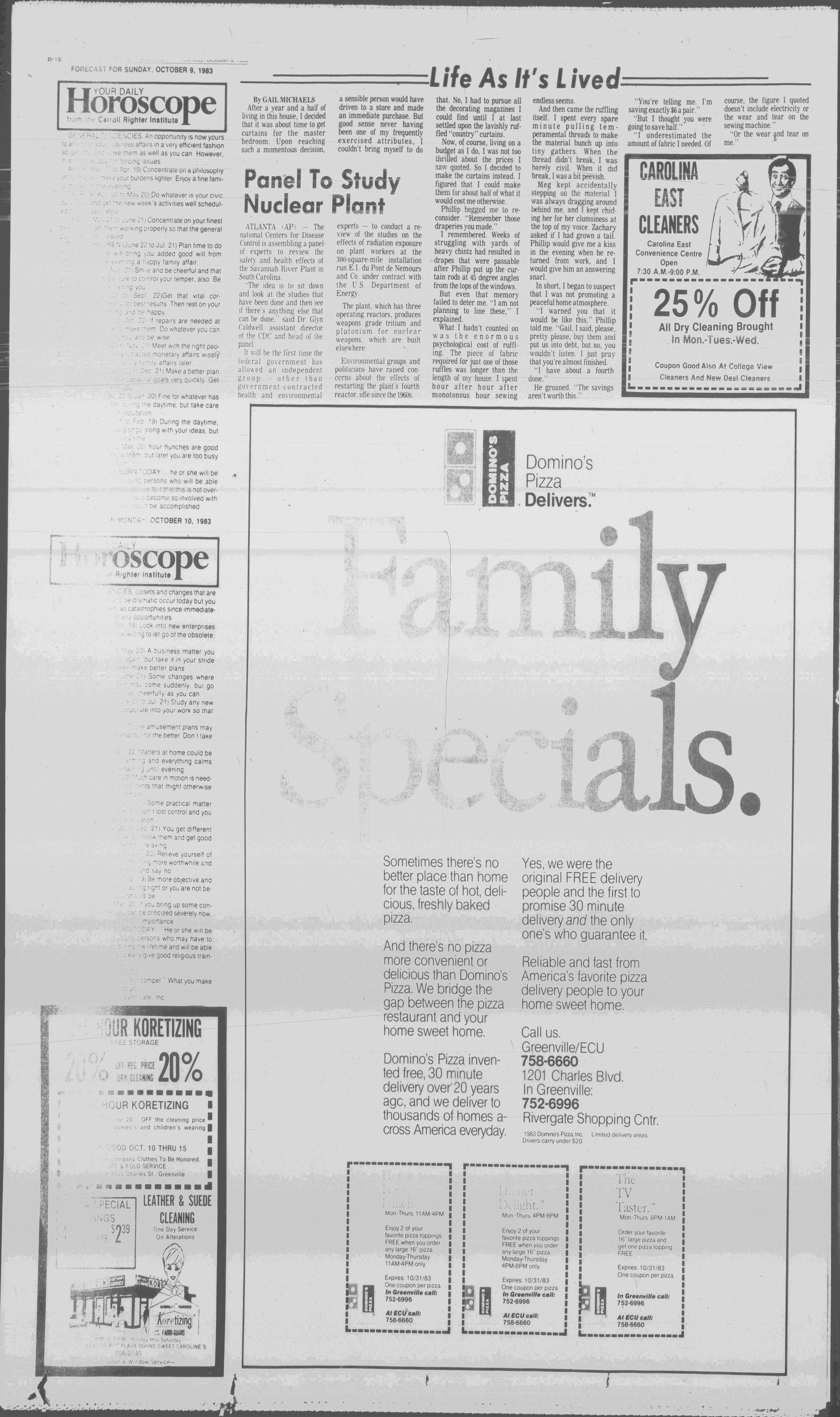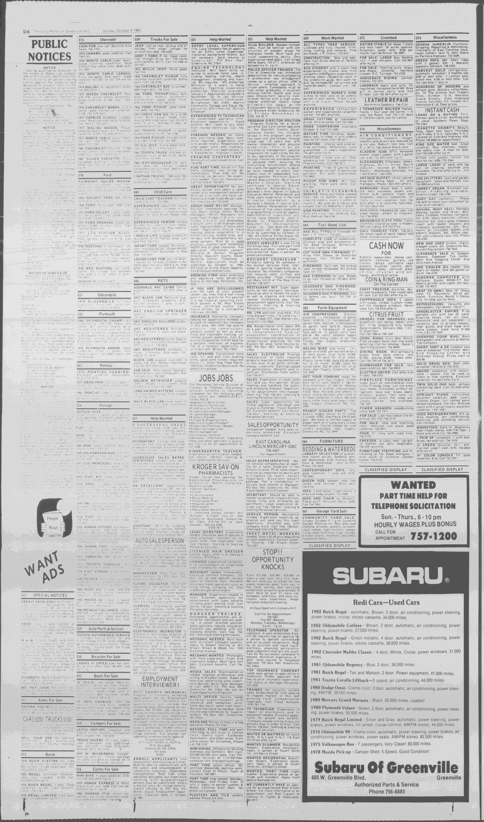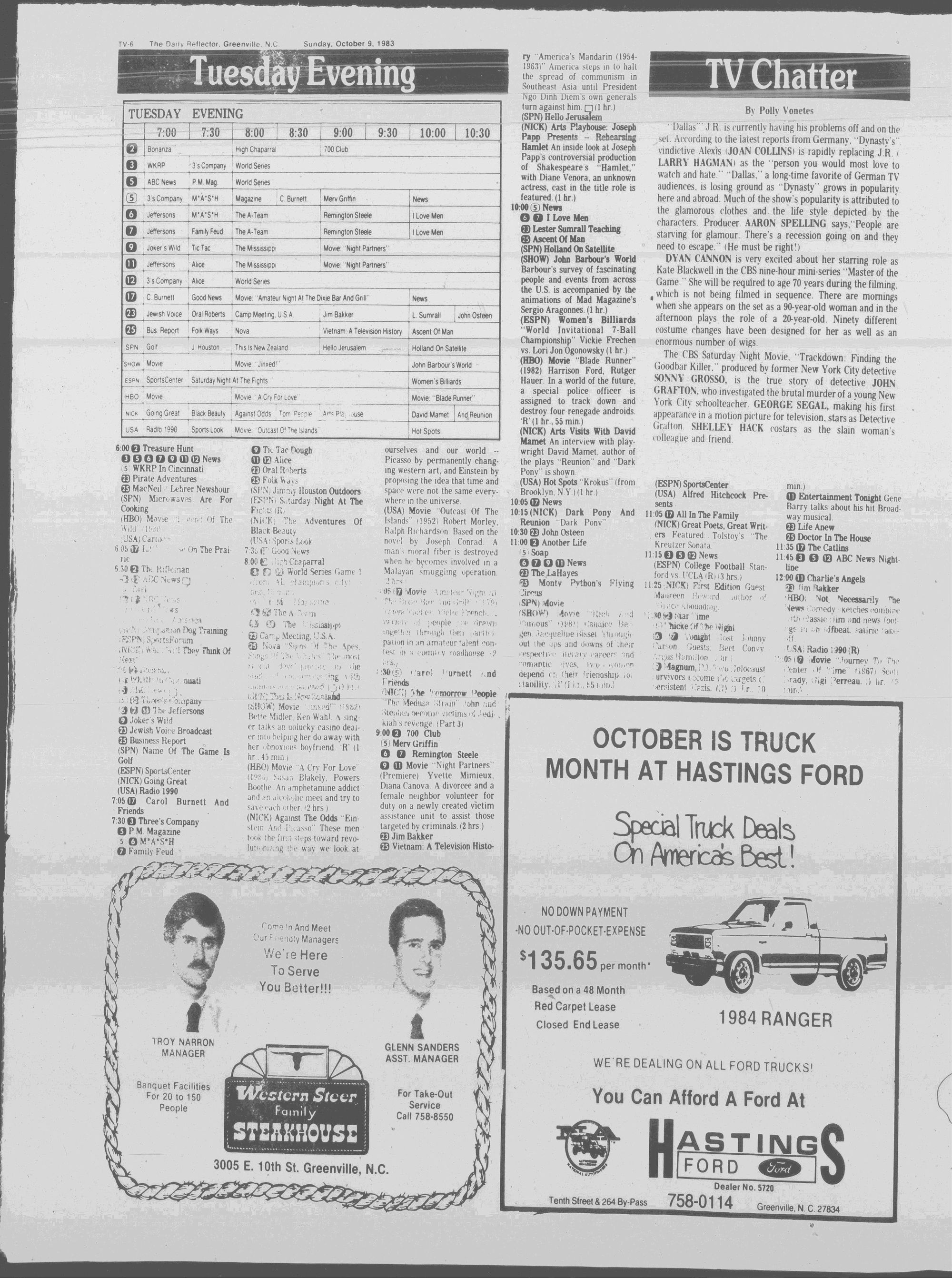 GREENVILLE, N.C. SUNDAY MORNING, OCTOBER 9, 1983