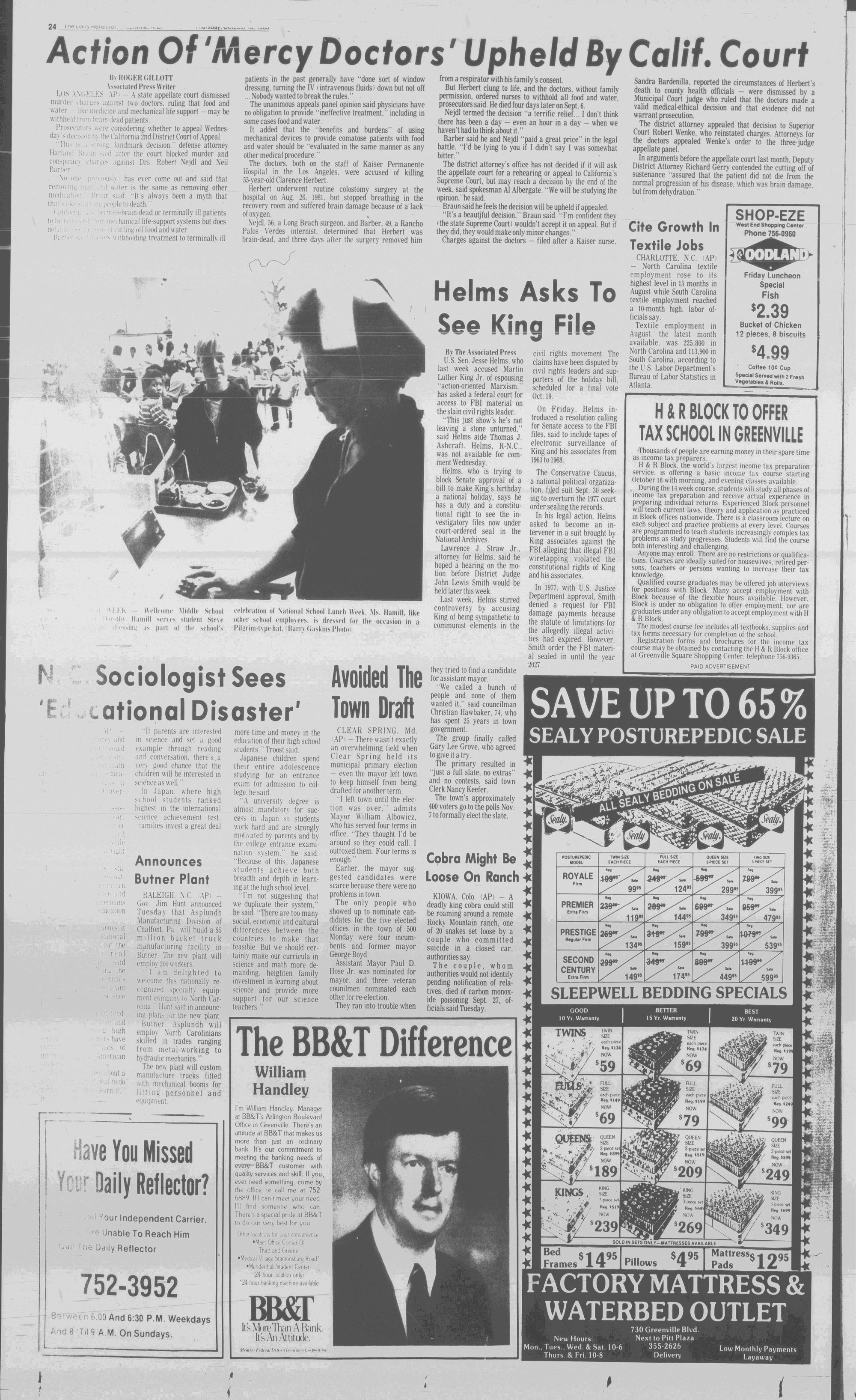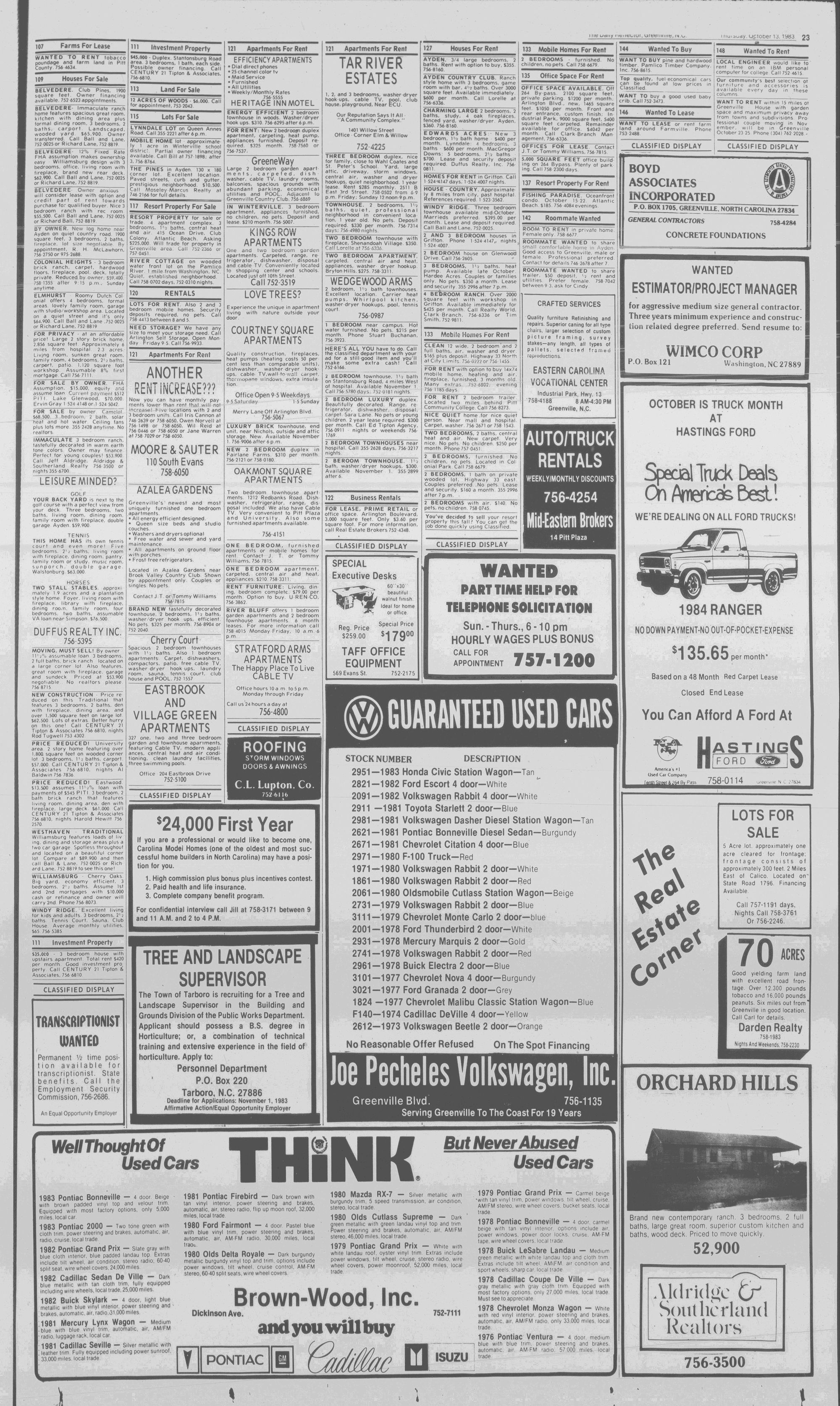 GREENVILLE, N.C. THURSDAY AFTERNOON, OCTOBER 13, 1983