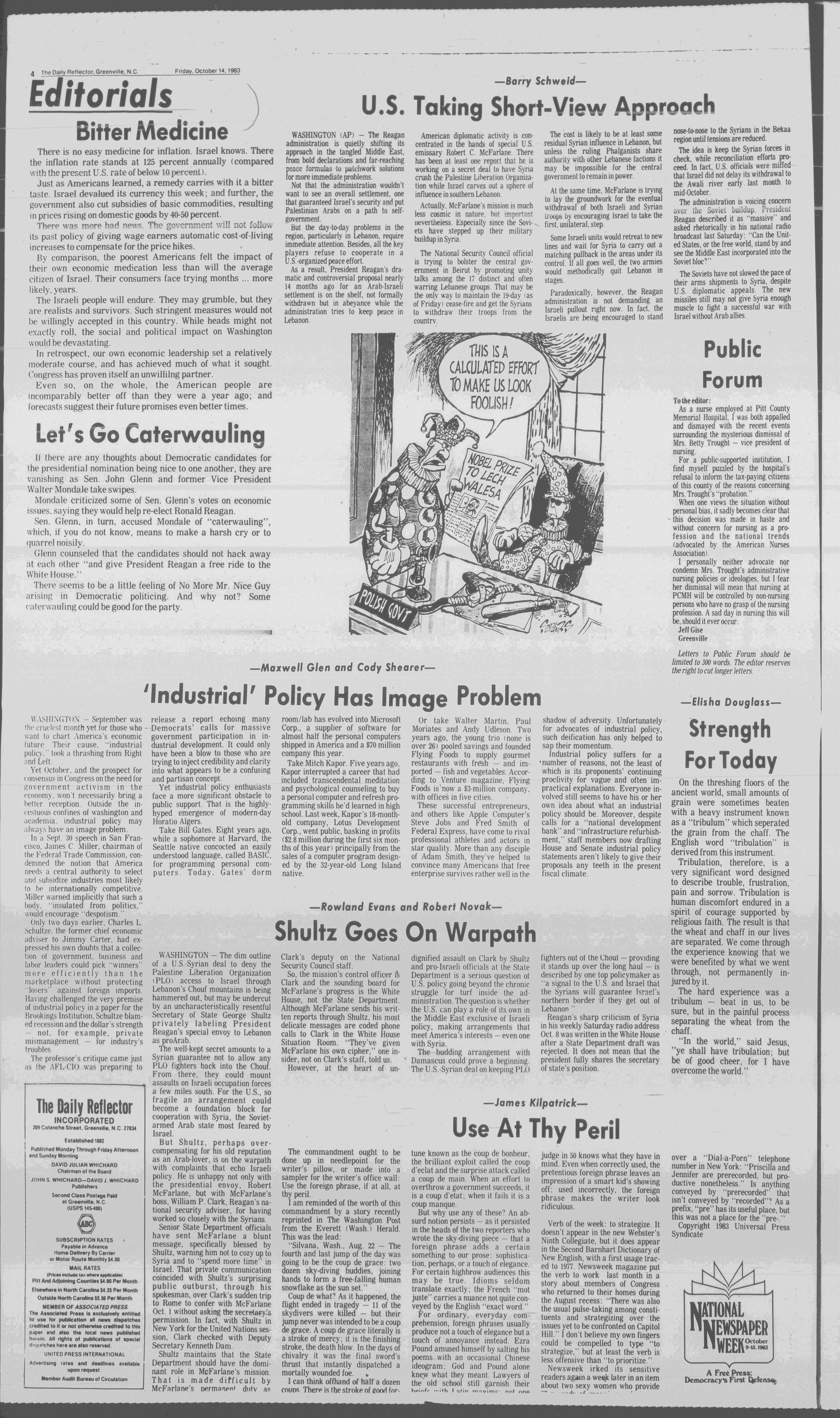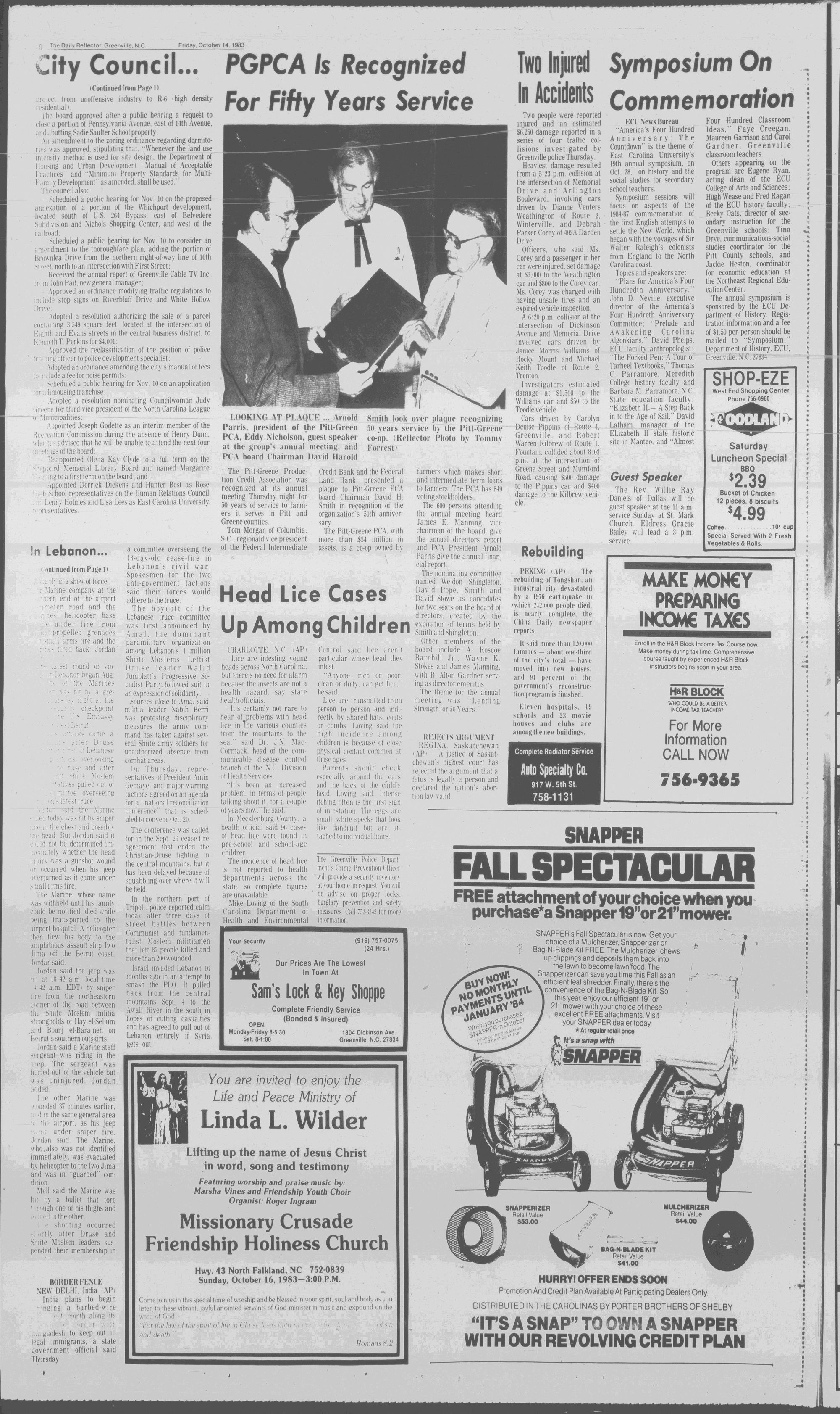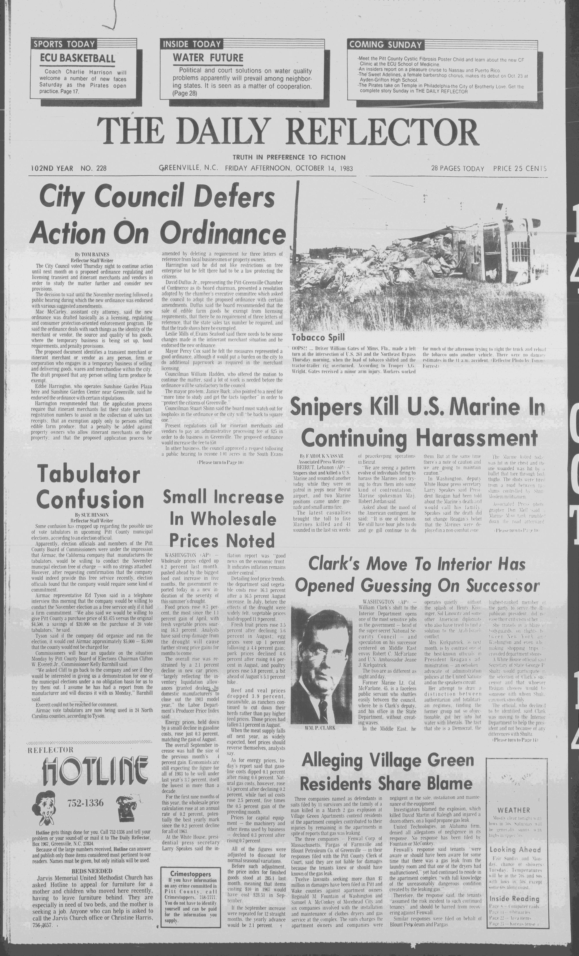 102NDYEAR NO. 228TRUTH IN PREFERENCE TO FICTIONCy?EENVILLE, N.C. FRIDAY AFTERNOON, OCTOBER 14, 1983
