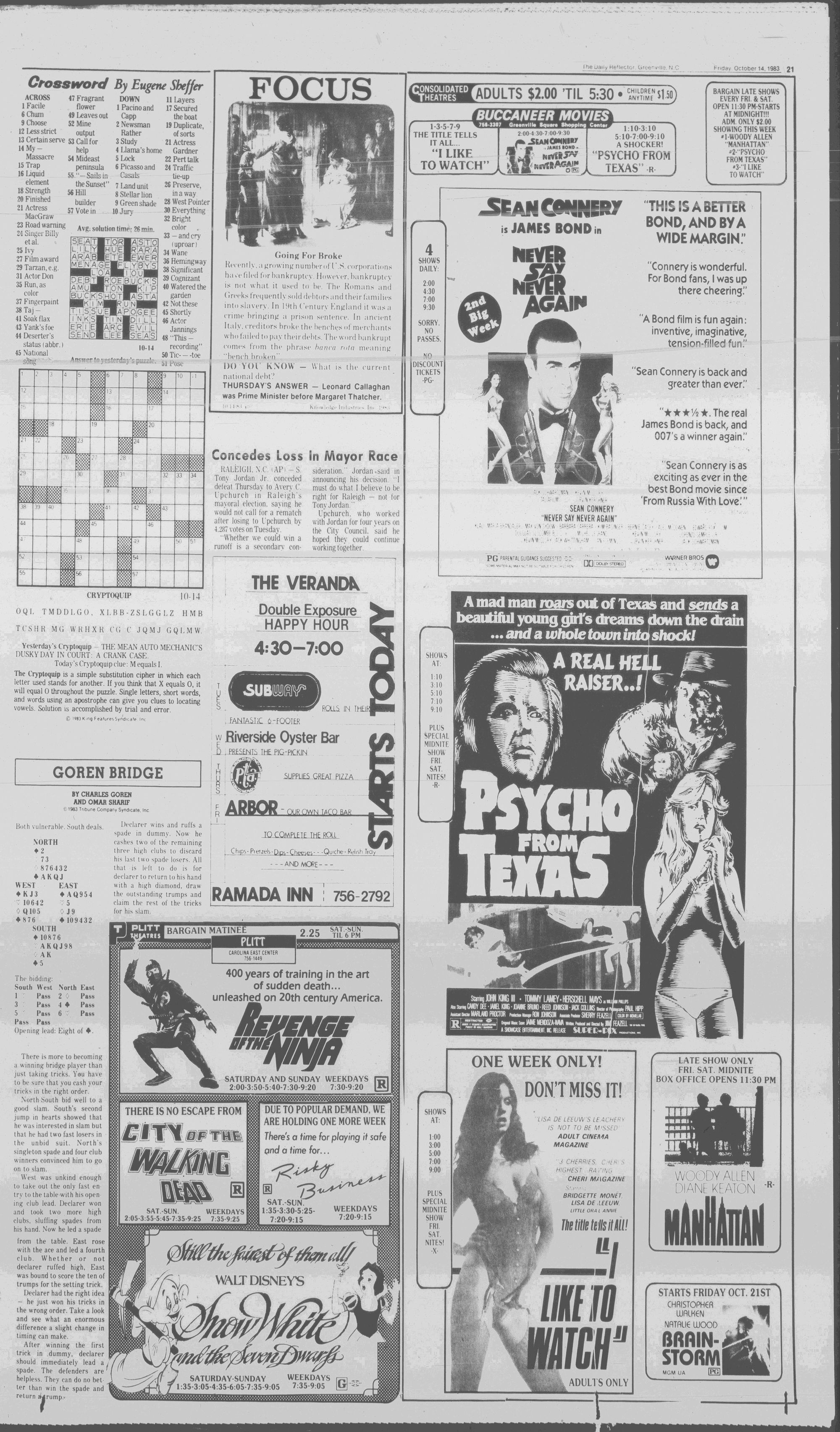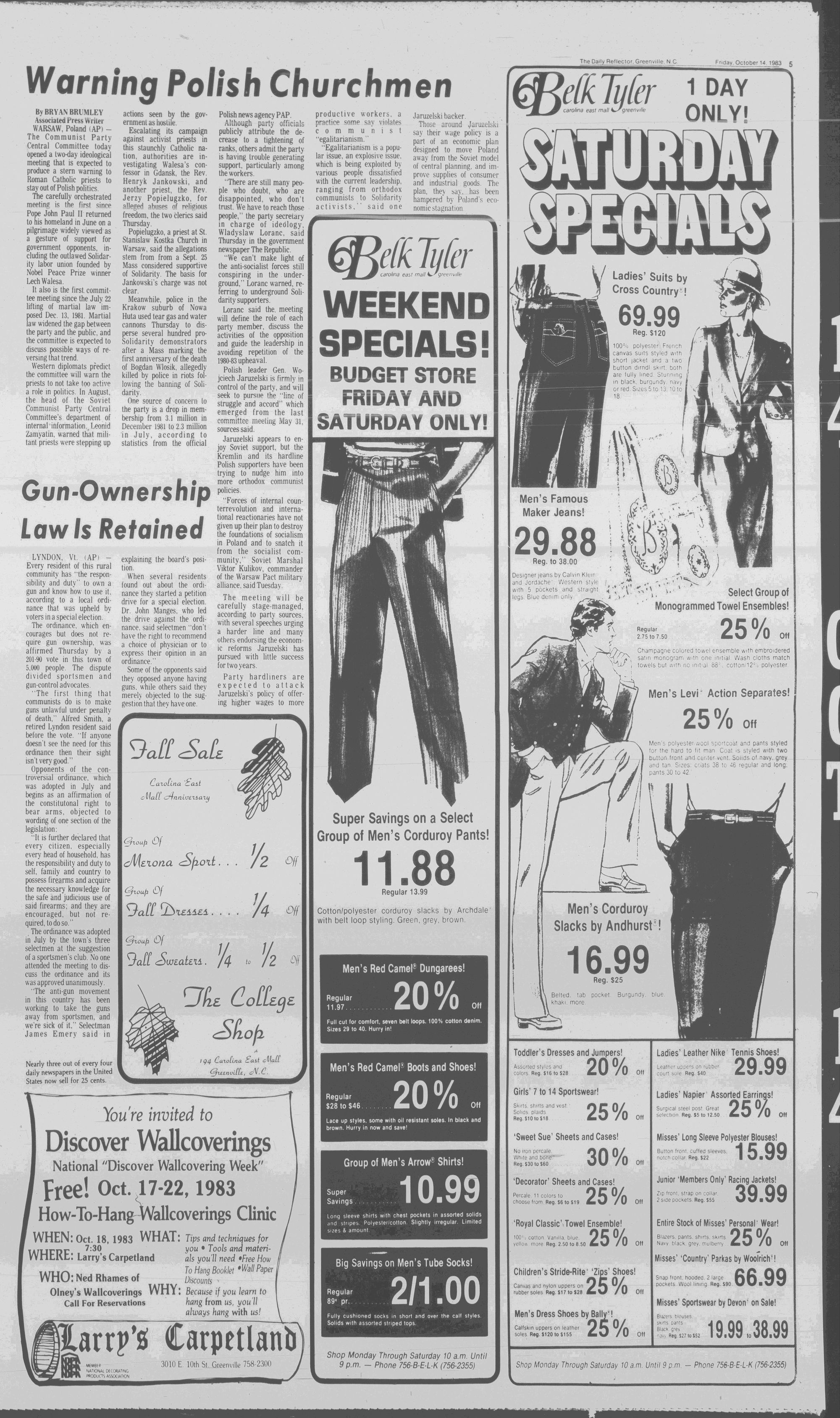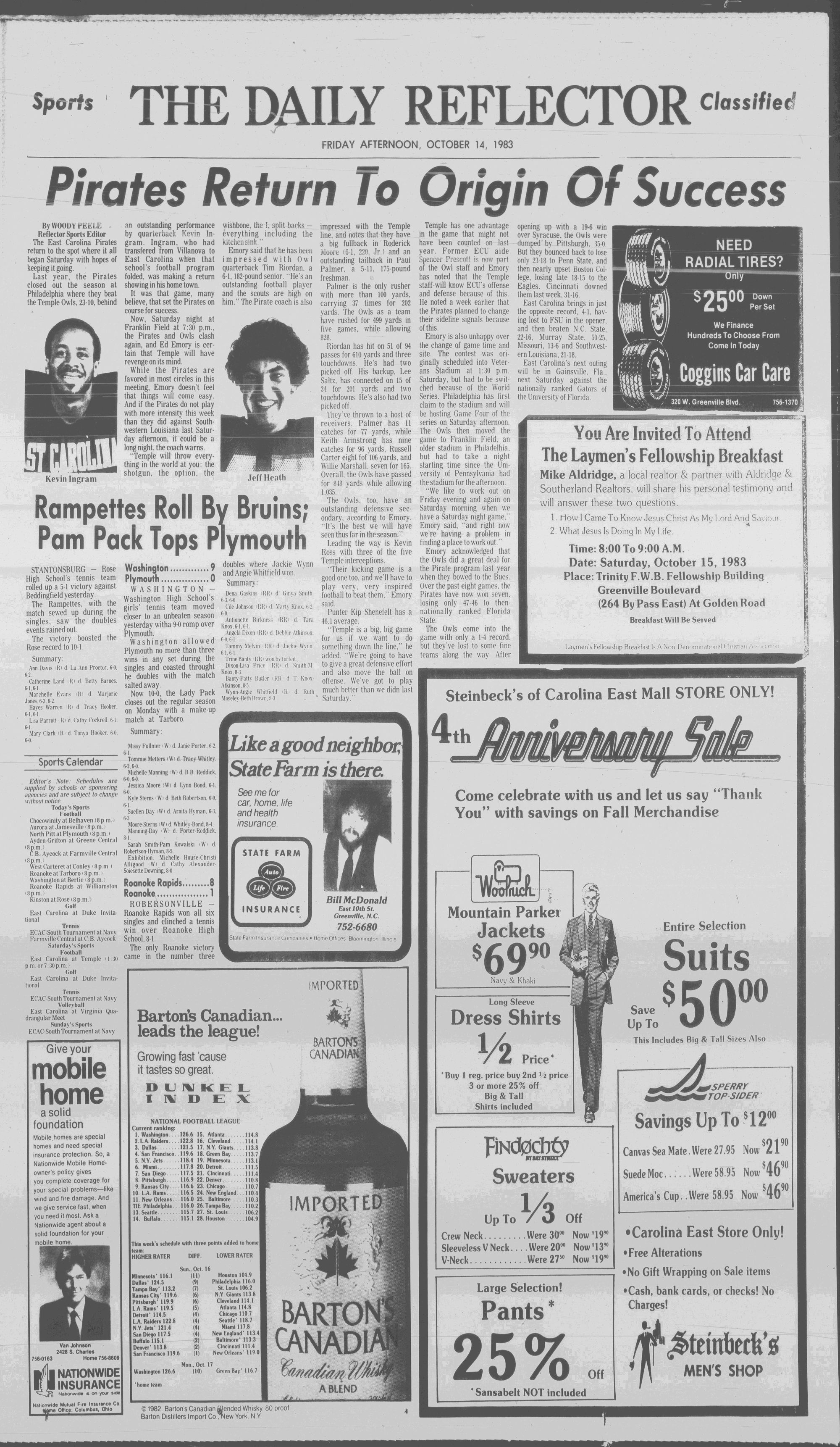 102NDYEAR NO. 228TRUTH IN PREFERENCE TO FICTIONCy?EENVILLE, N.C. FRIDAY AFTERNOON, OCTOBER 14, 1983