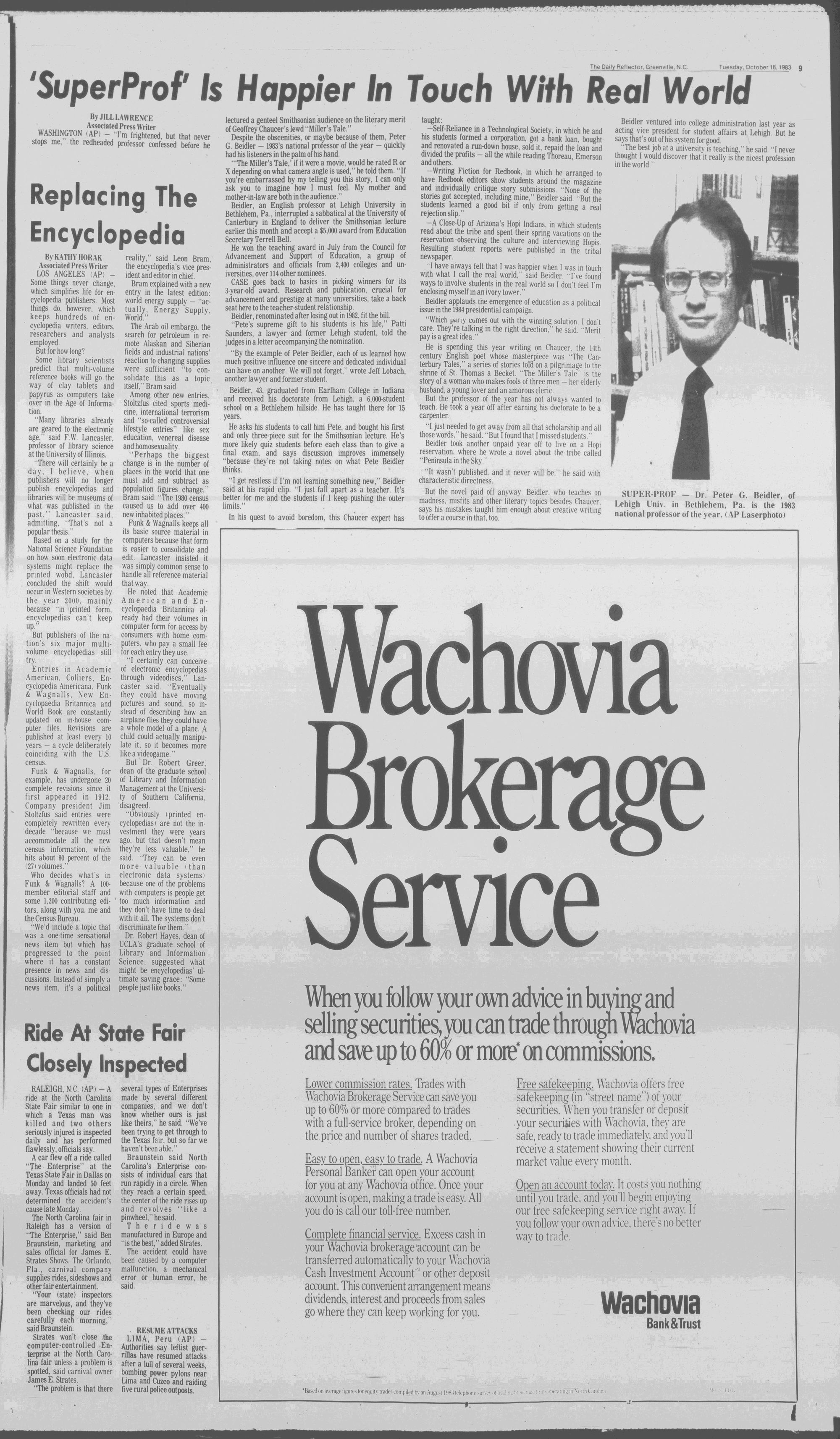 English professor Peter Beidler holds students and his audiences in the palm of his hand; and not ust because hes a Chaucer expert, either. (Page 9)