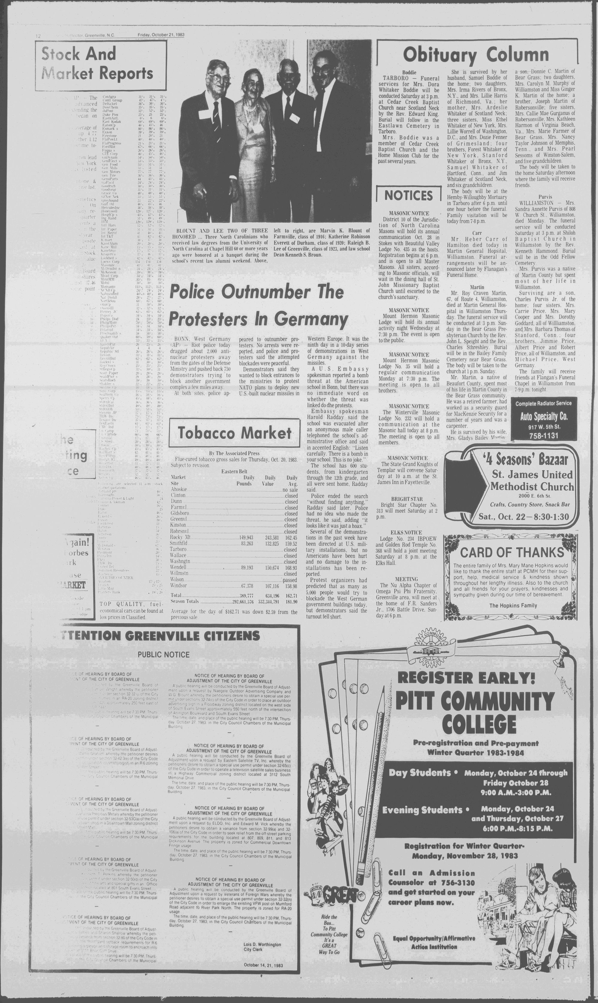 GREENVILLE, N.C. FRIDAY AFTERNOON, OCTOBER 21, 1983
