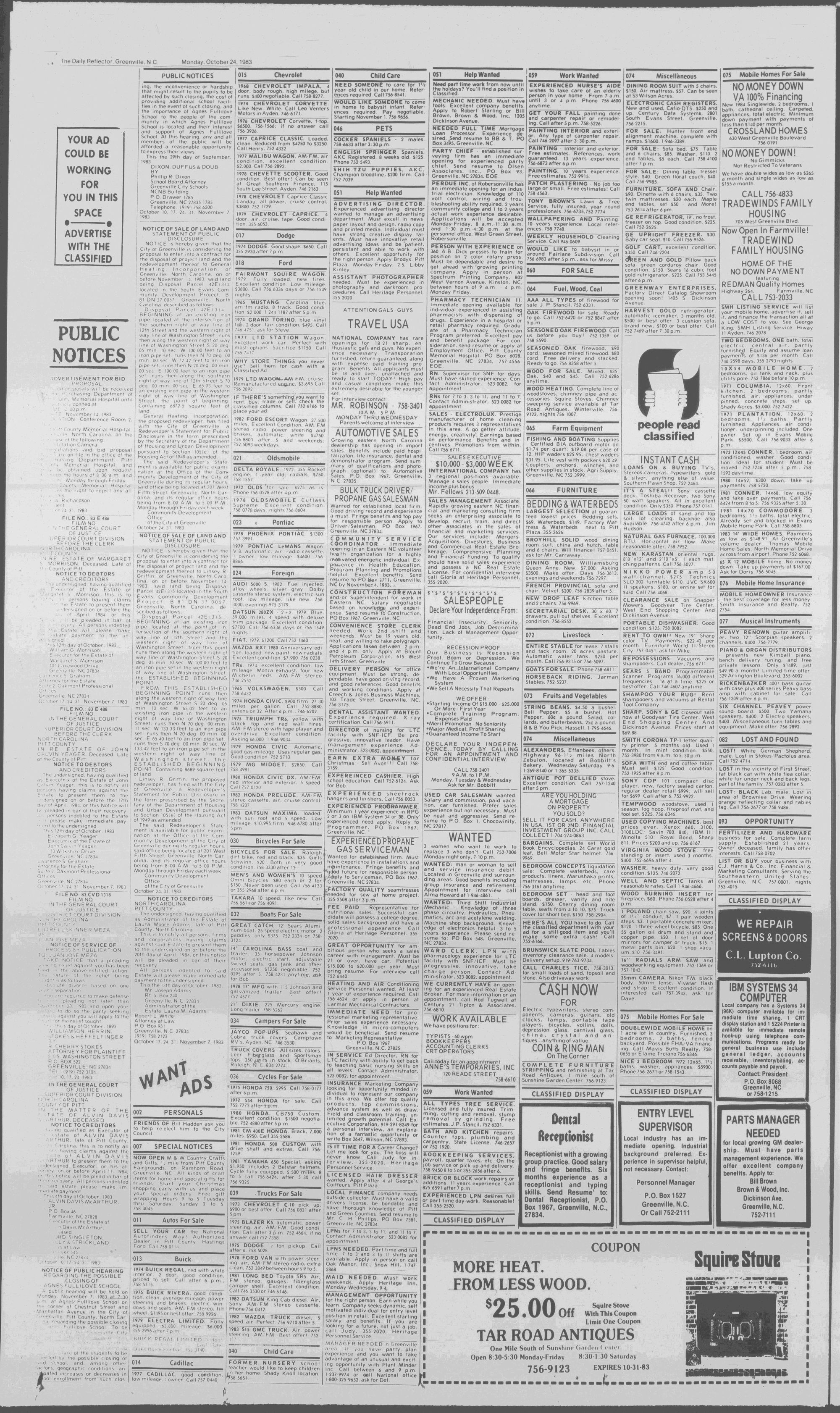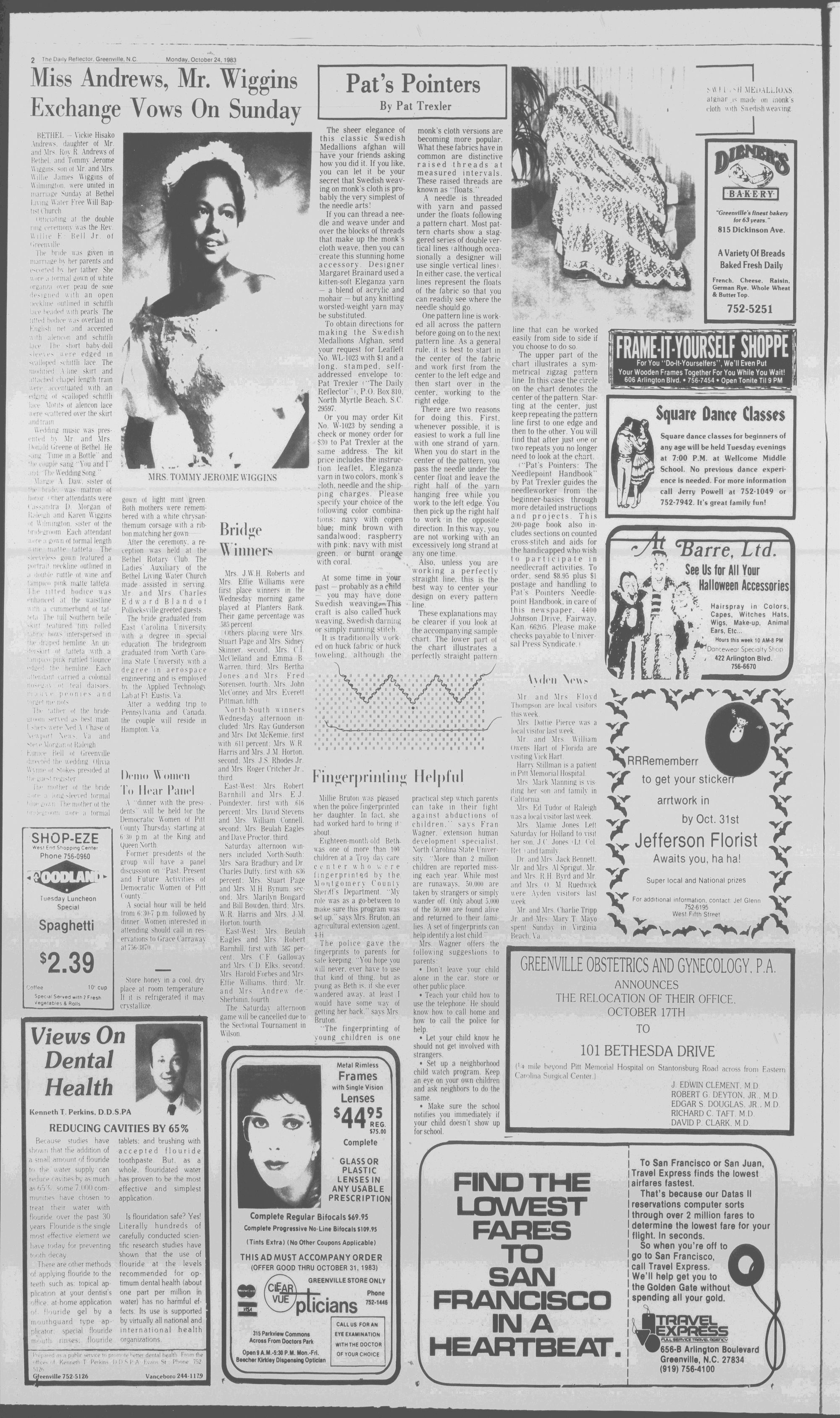 Surviving him are his wife, Mrs. Helen 11. Ilarnngton; two sons, Lt, Col. 'USA retired) Bobby C. Ilarnngton of Springfield, Va. and Jackie R. Harrington of Greenville; three daughters. Mrs. Barbara Ann Powell of Roanoke Rapids, Ms Fay Harringfon and Mrs Kathy Taylor, both ol (ireenville; a brother, Frank Harrington of Greenville; a sister, Mrs. Dorothy Dixon of Black Jack; seven grandchildren and one great grandchild.