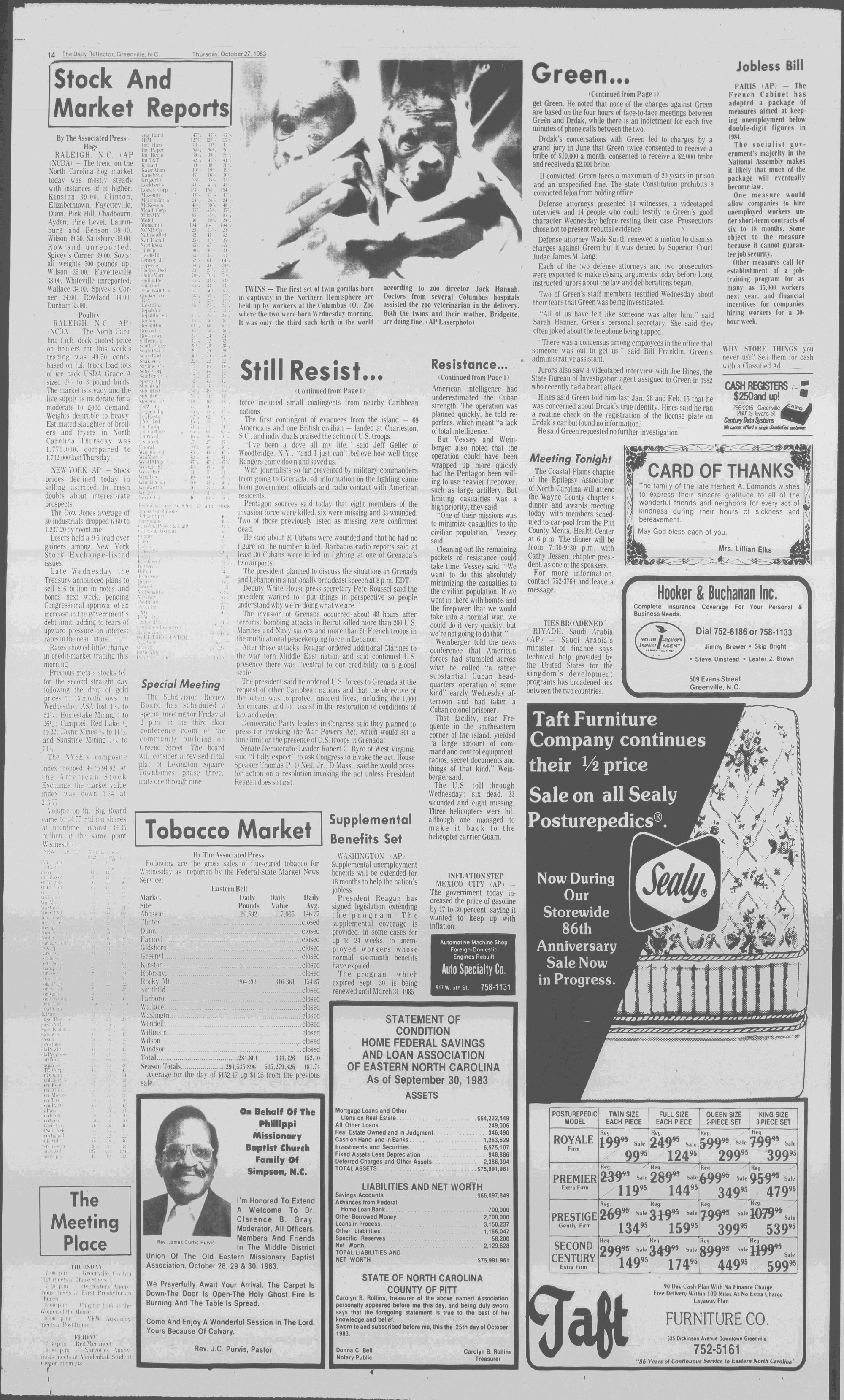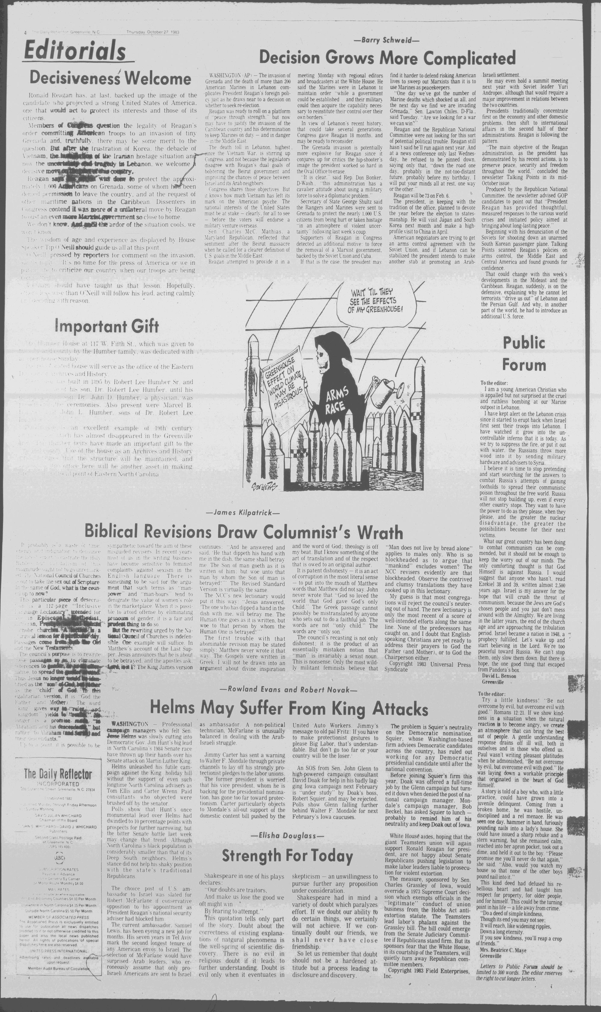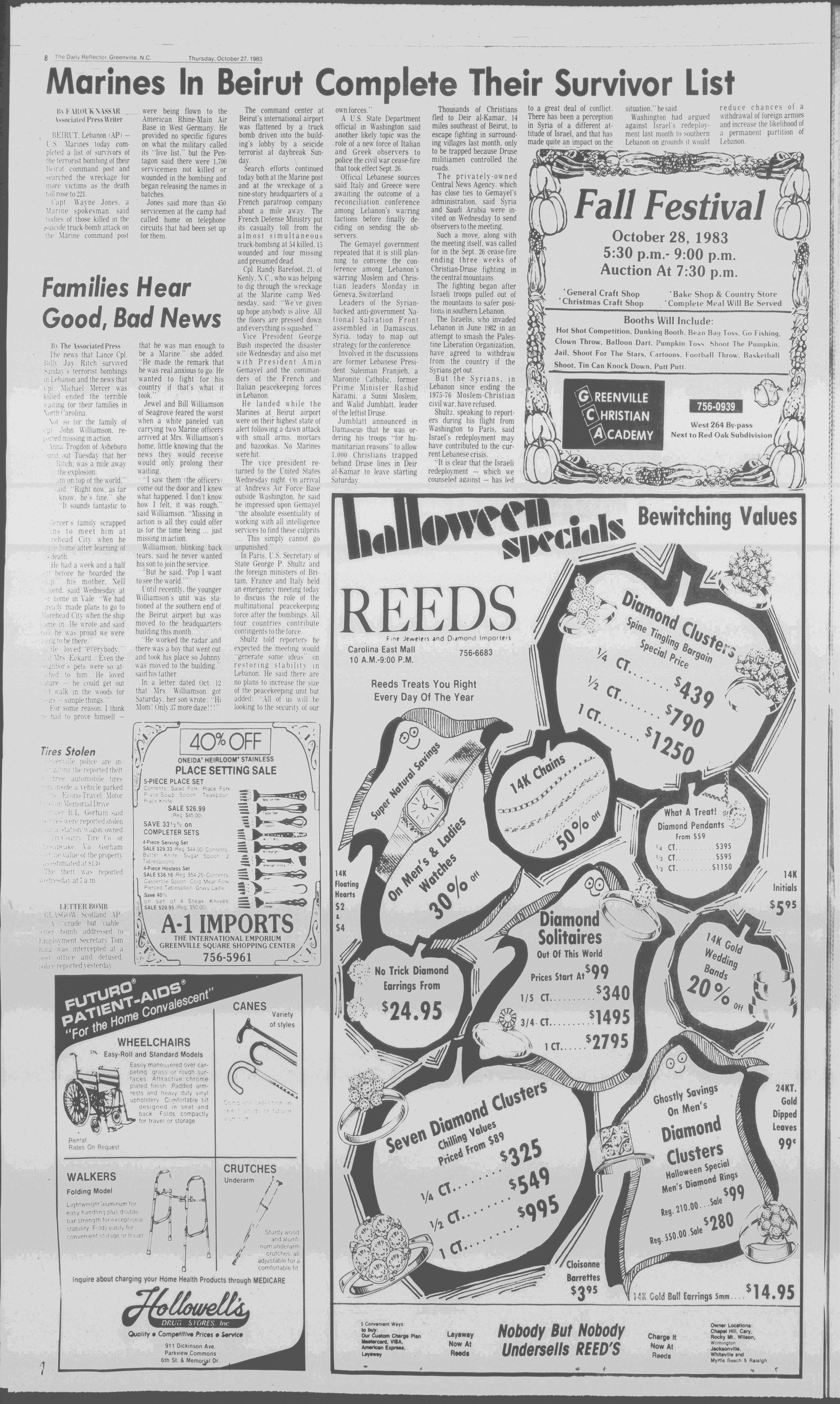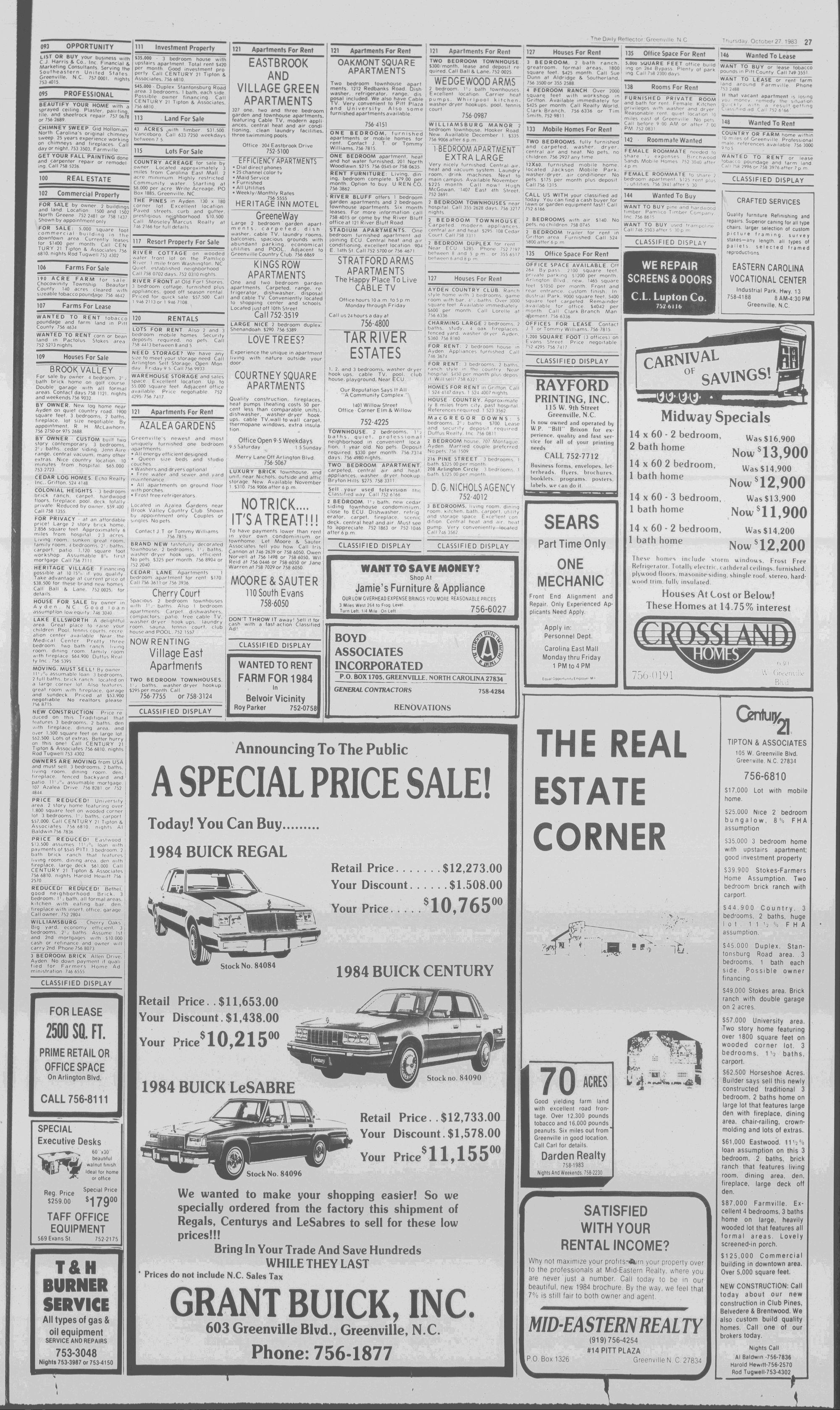 102NDYEAR NO. 239TRUTH IN PREFERENCE TO FICTIONGREENVILLE, N.C. THURSDAY AFTERNOON, OCTOBER 27, 1983