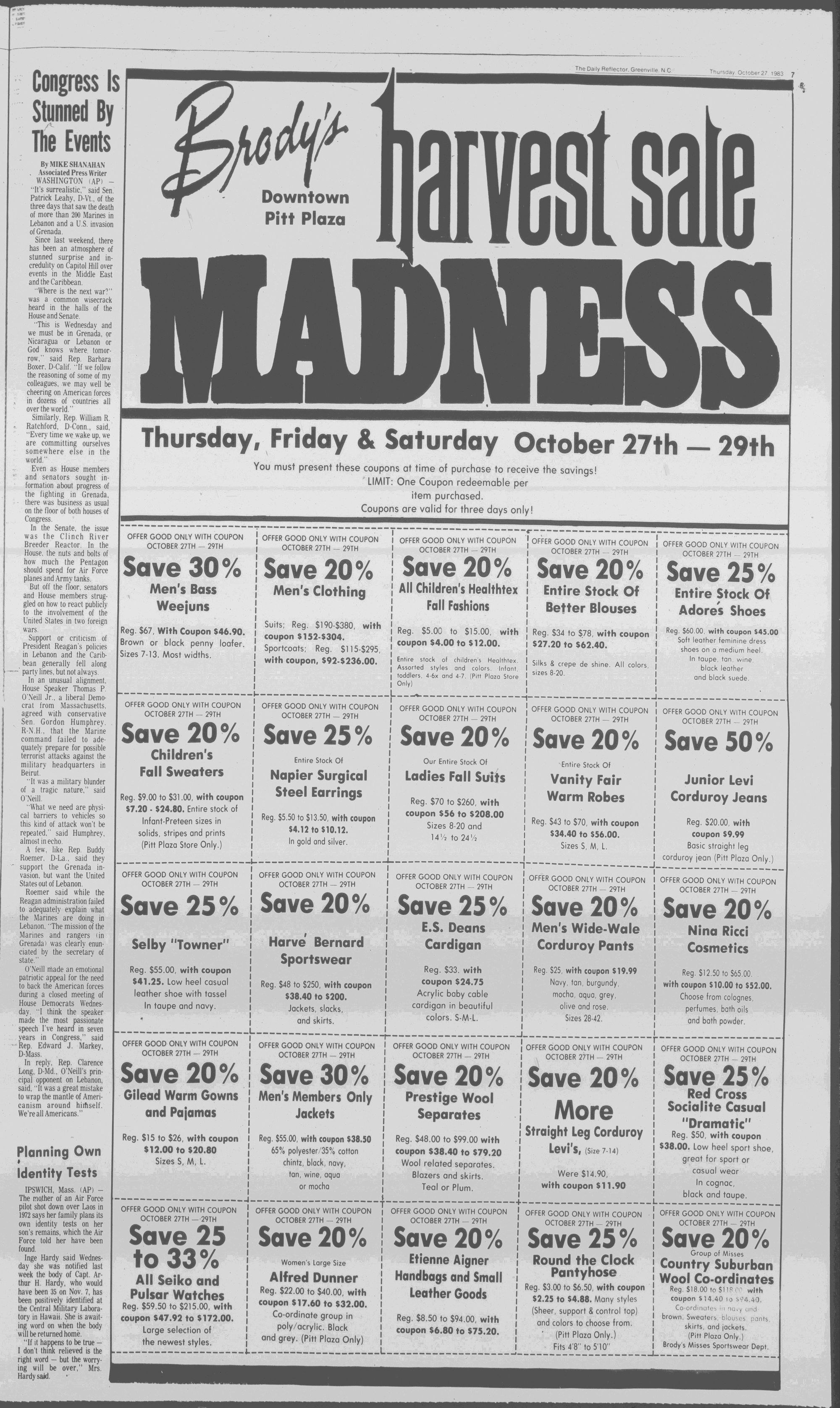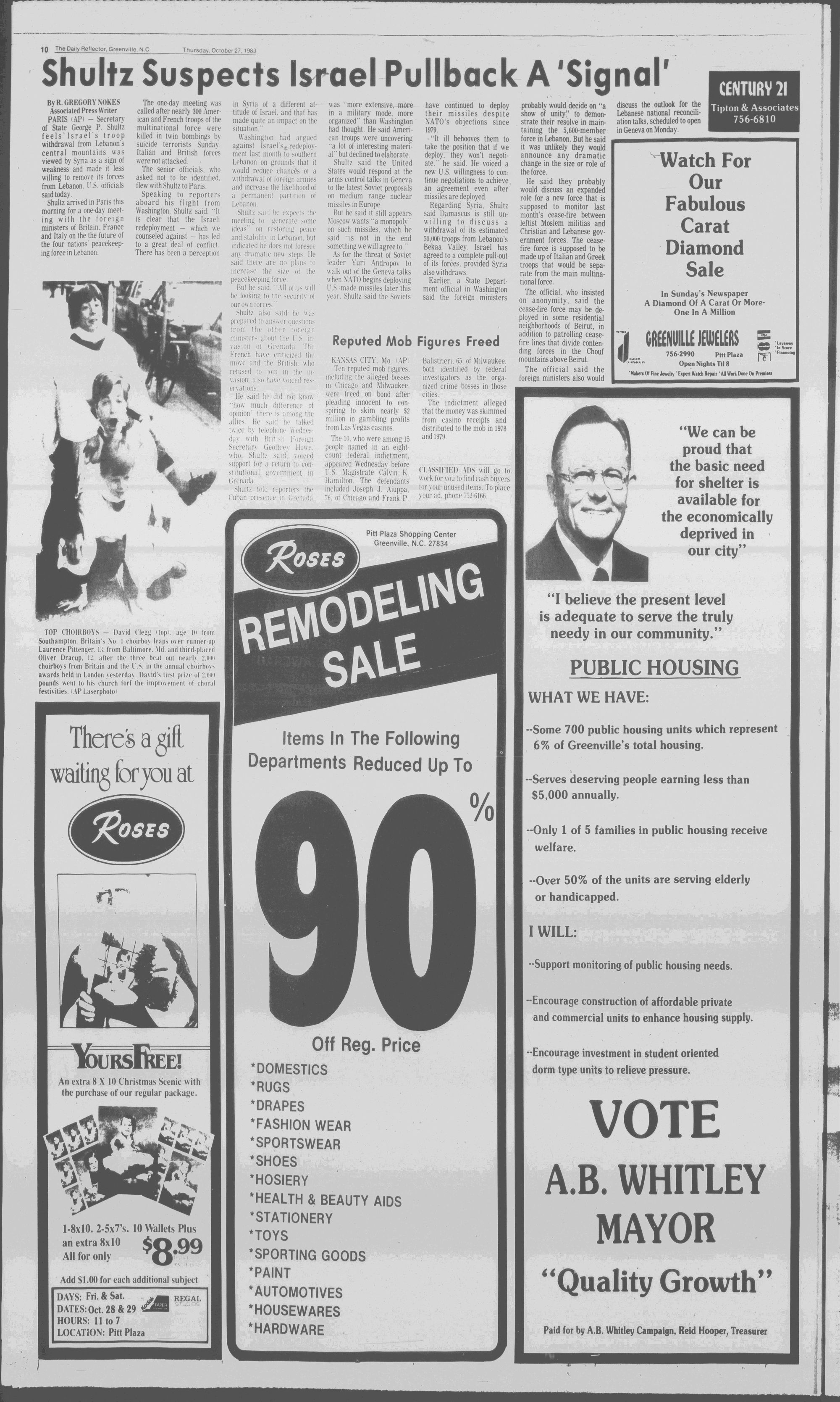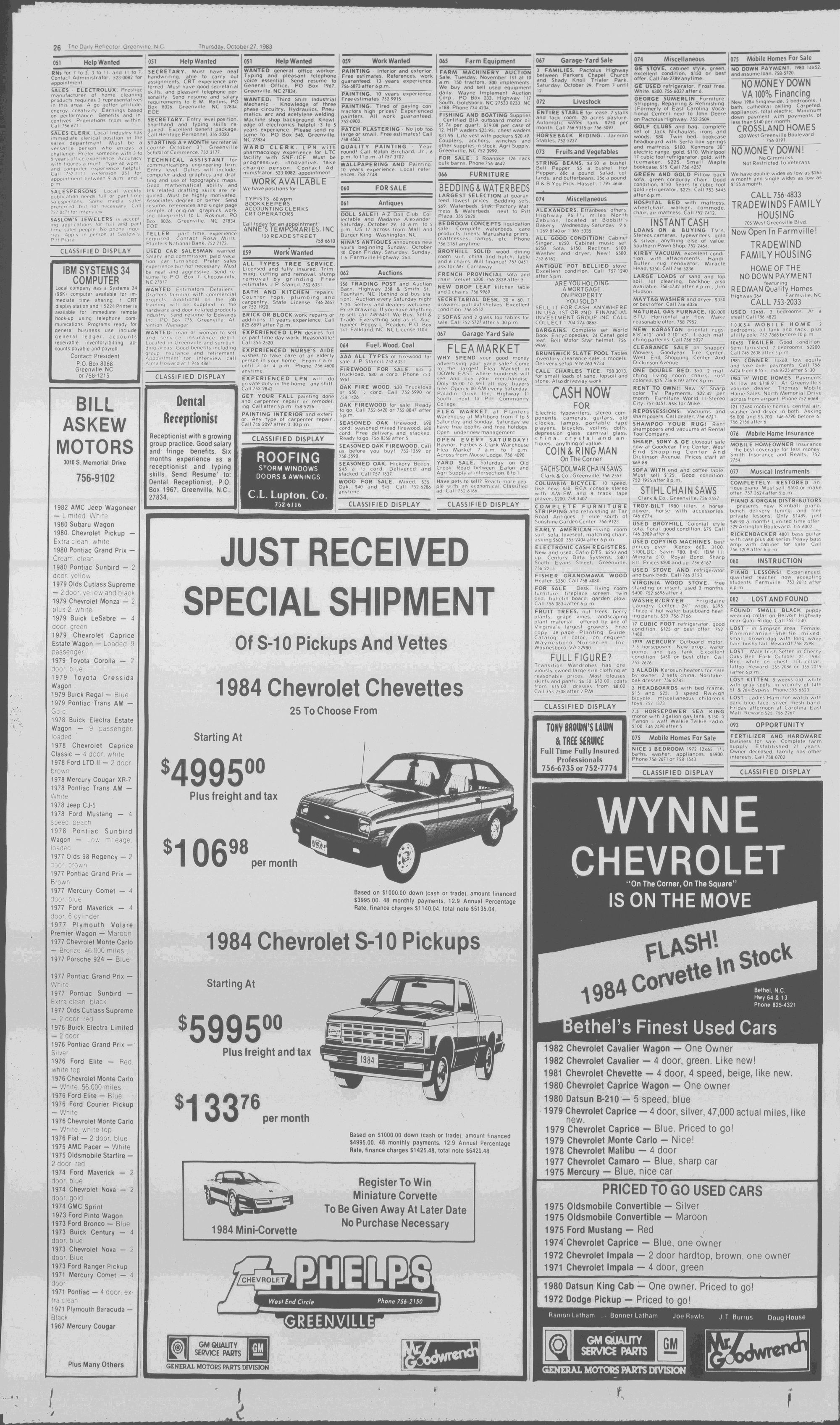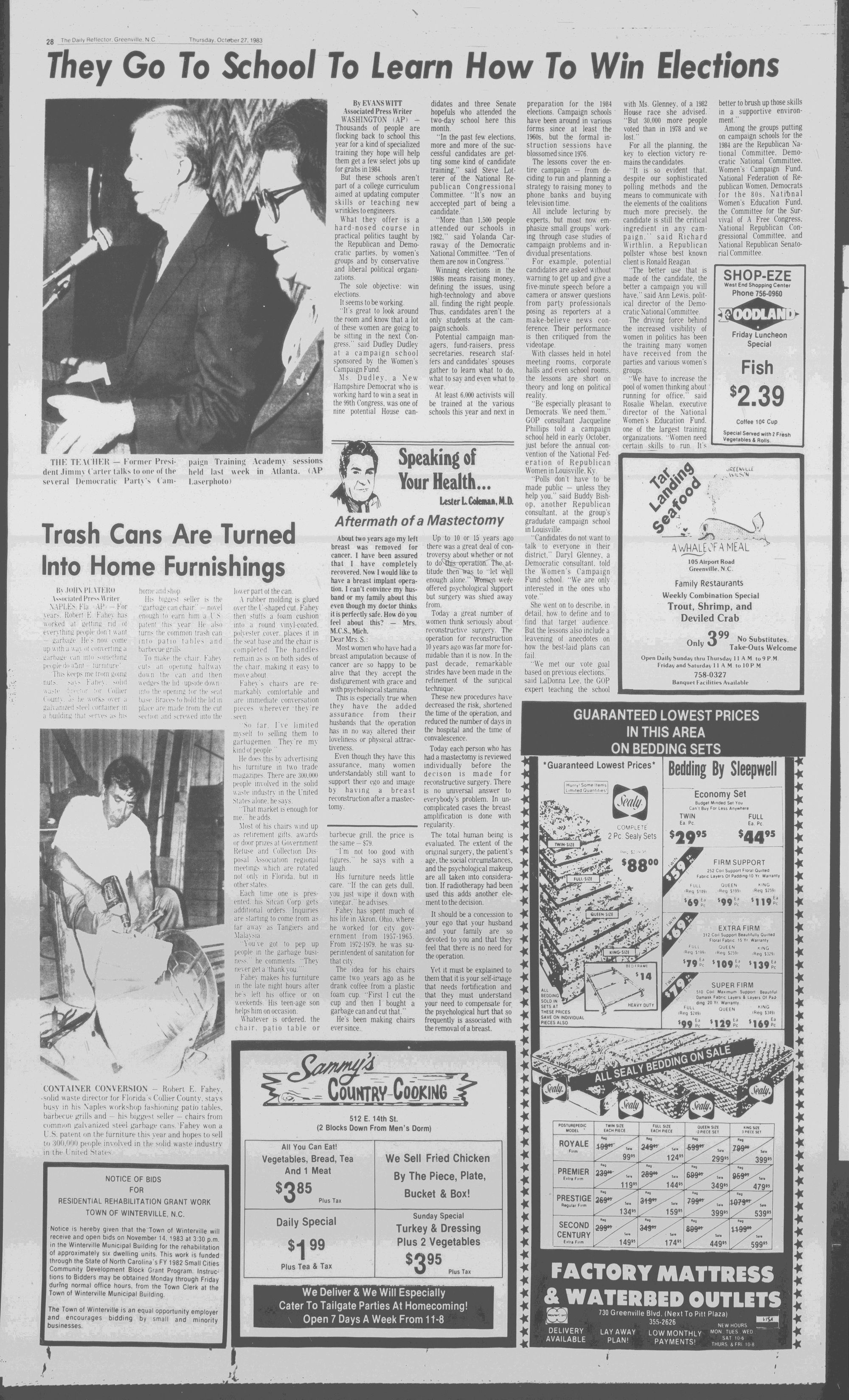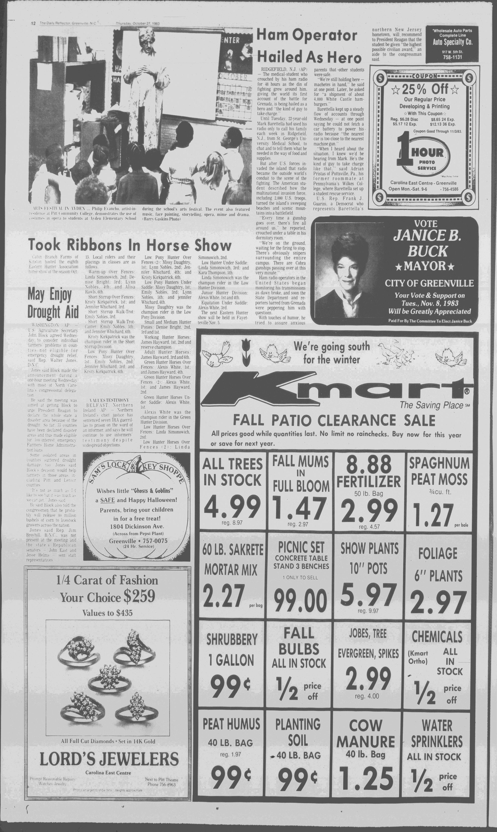 102NDYEAR NO. 239TRUTH IN PREFERENCE TO FICTIONGREENVILLE, N.C. THURSDAY AFTERNOON, OCTOBER 27, 1983