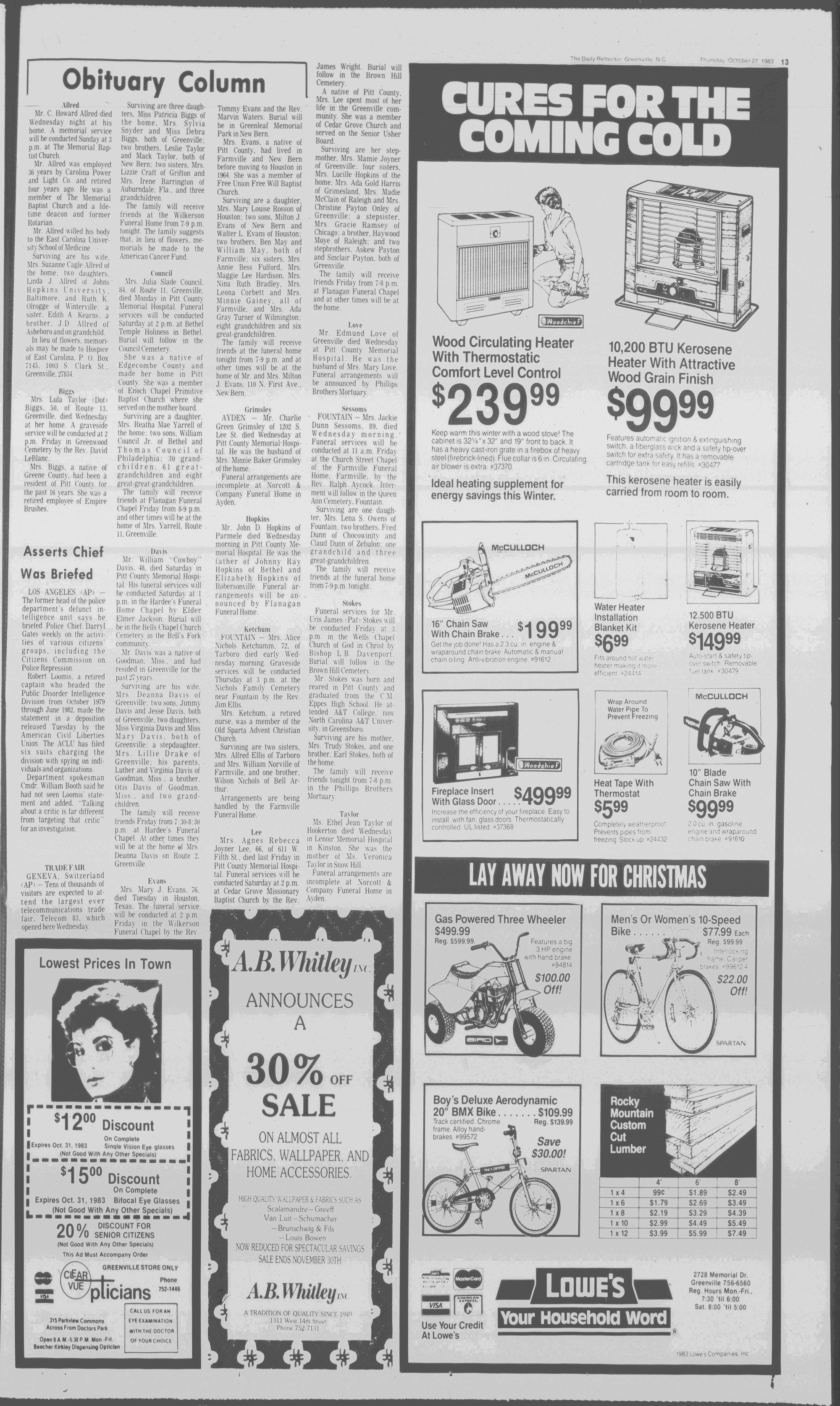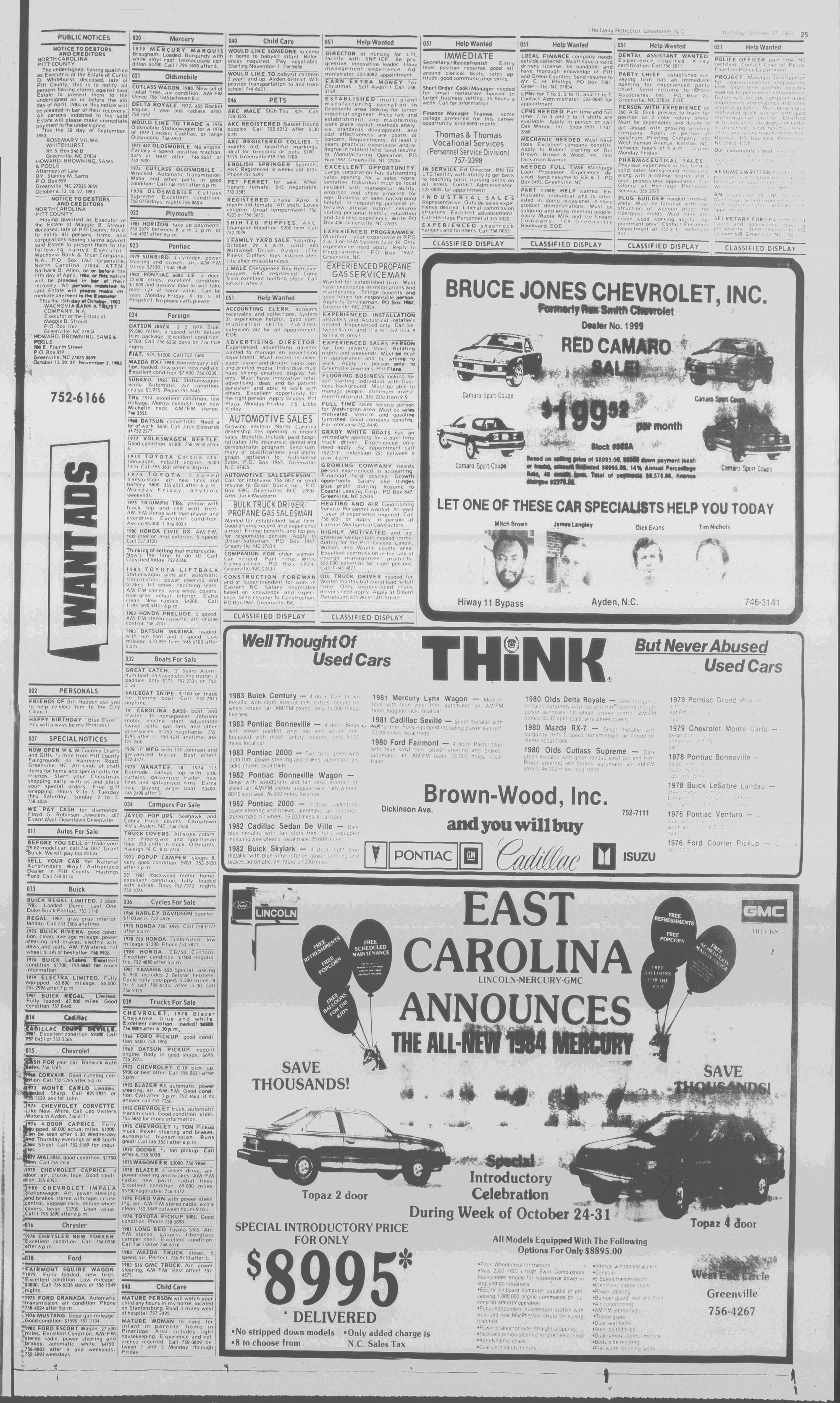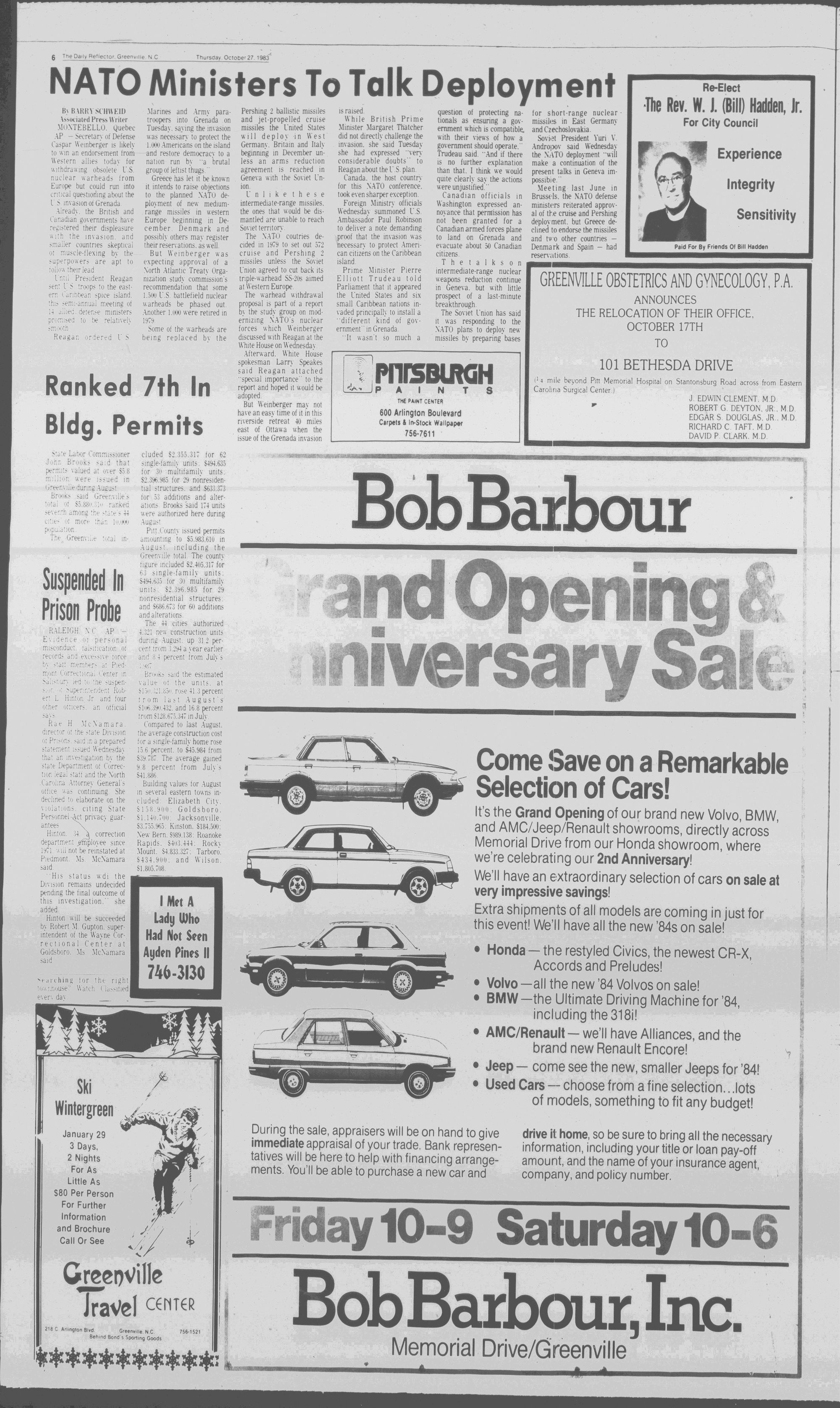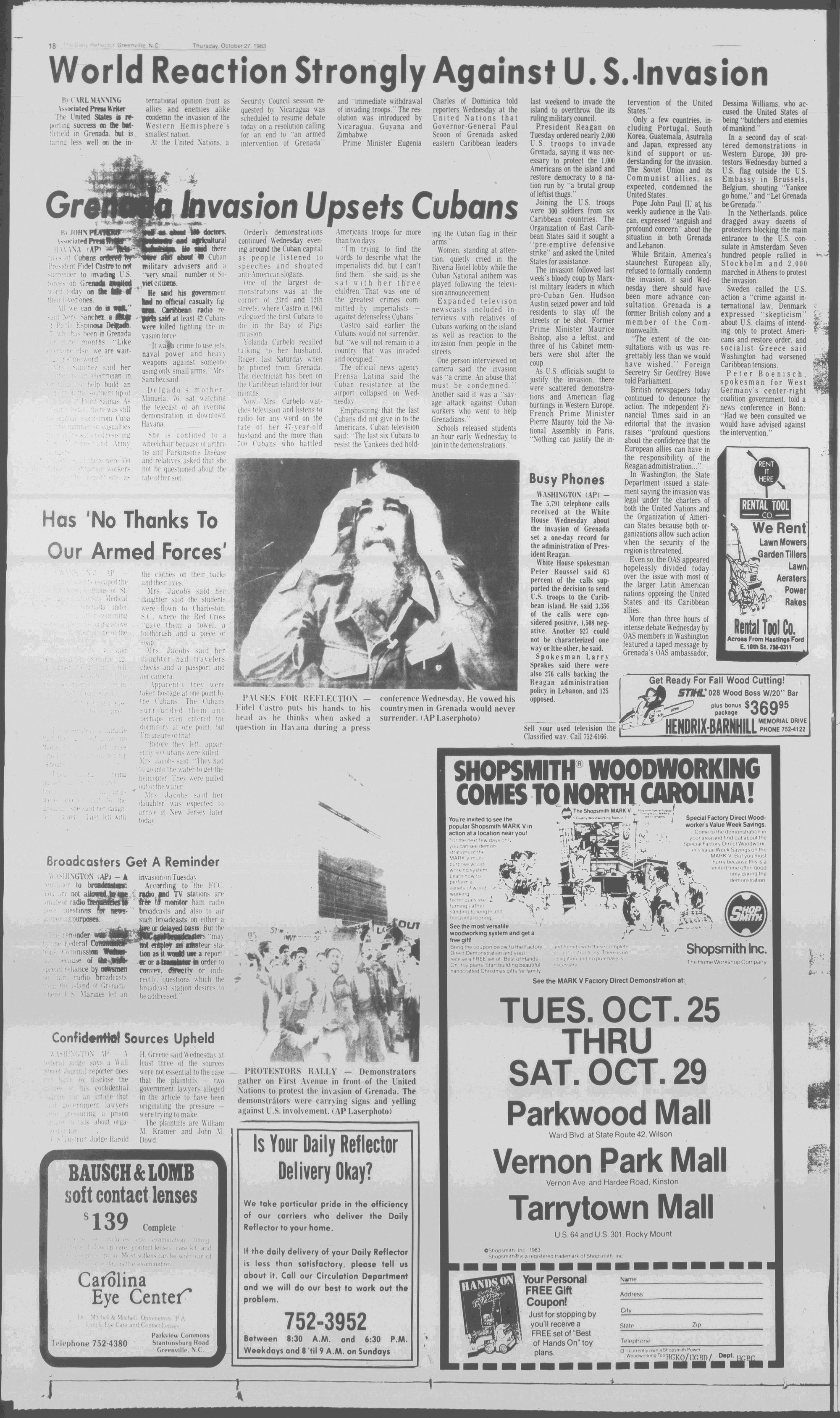 102NDYEAR NO. 239TRUTH IN PREFERENCE TO FICTIONGREENVILLE, N.C. THURSDAY AFTERNOON, OCTOBER 27, 1983