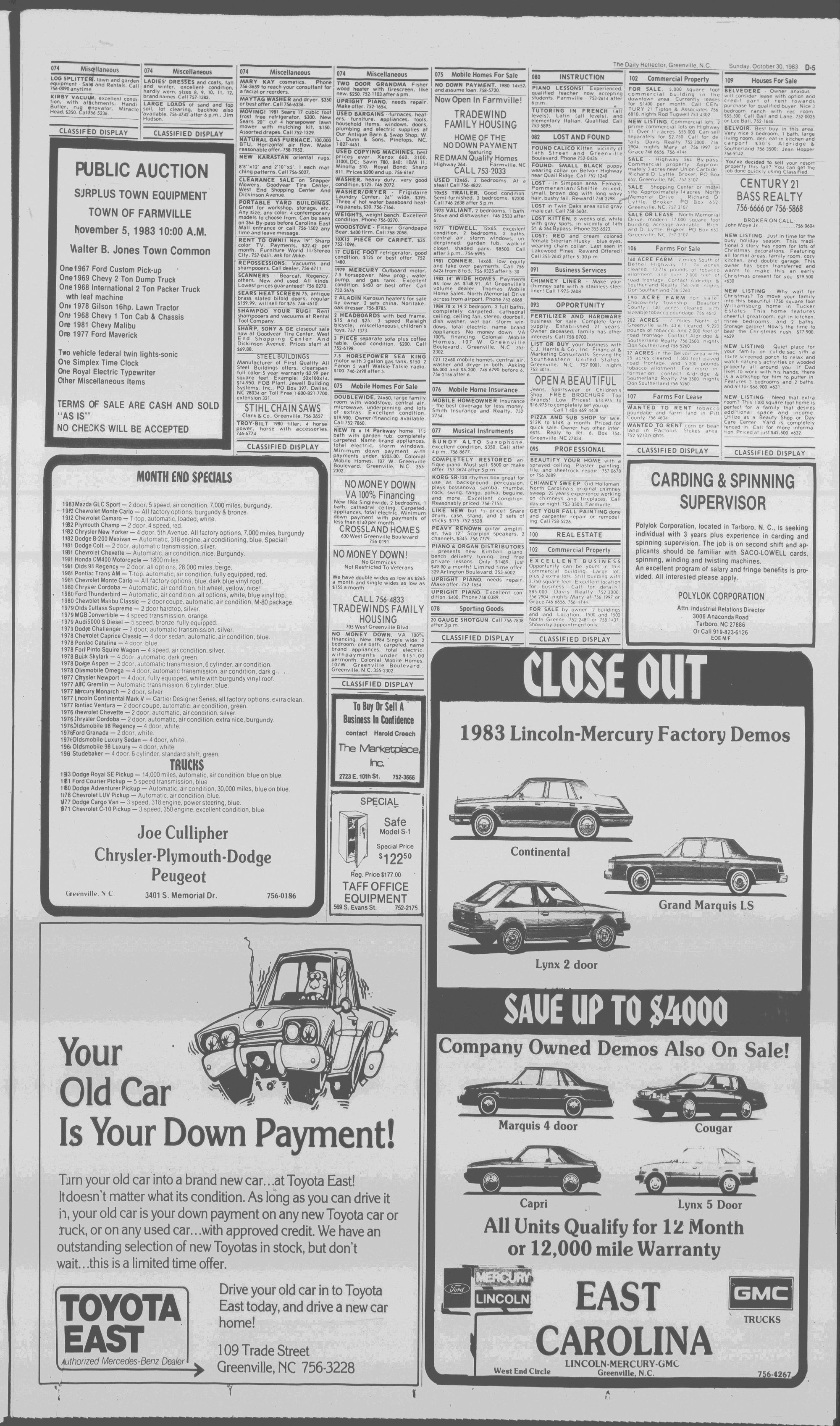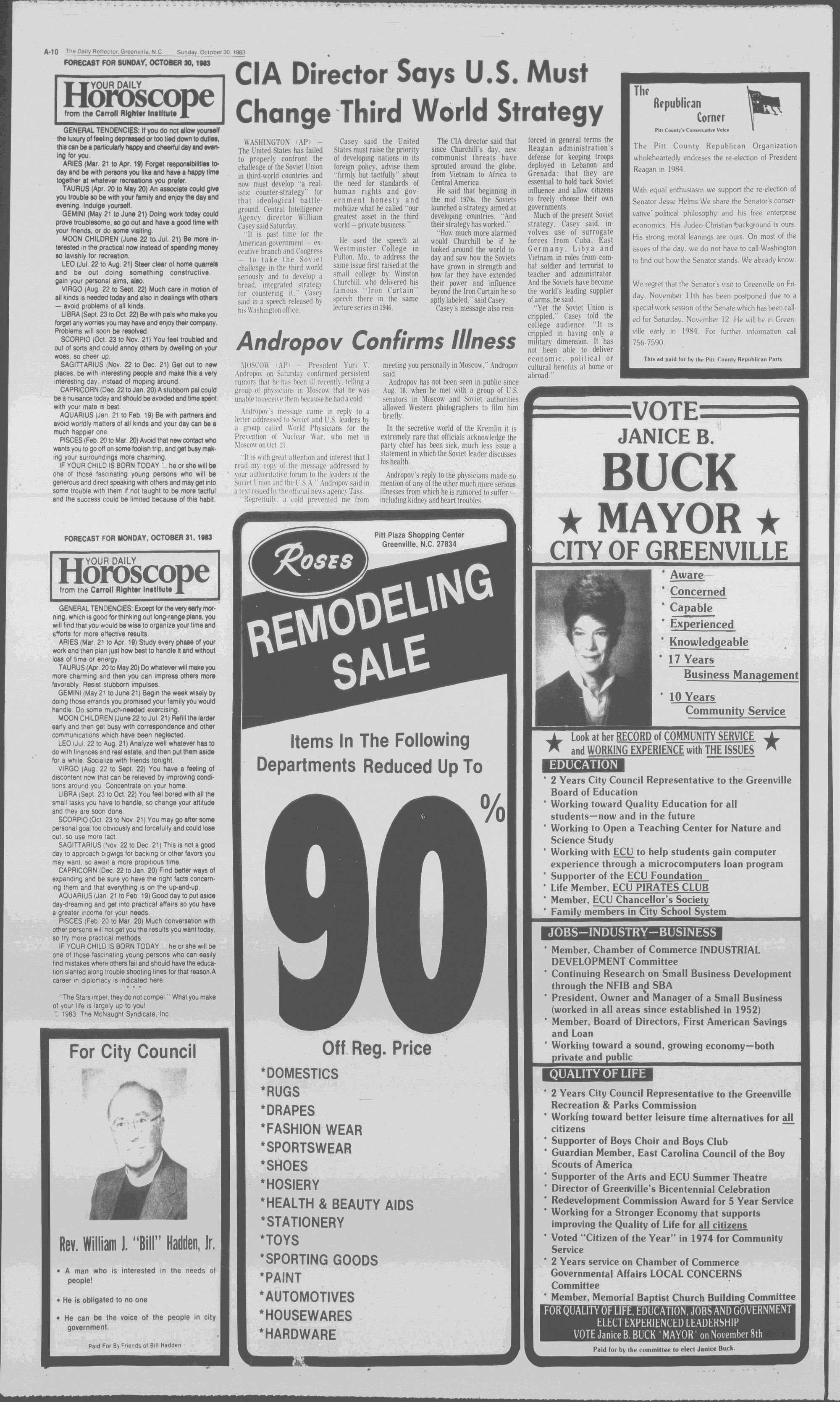 GREENVILLE, N.C. SUNDAY MORNING, OCTOBER 30, 1983