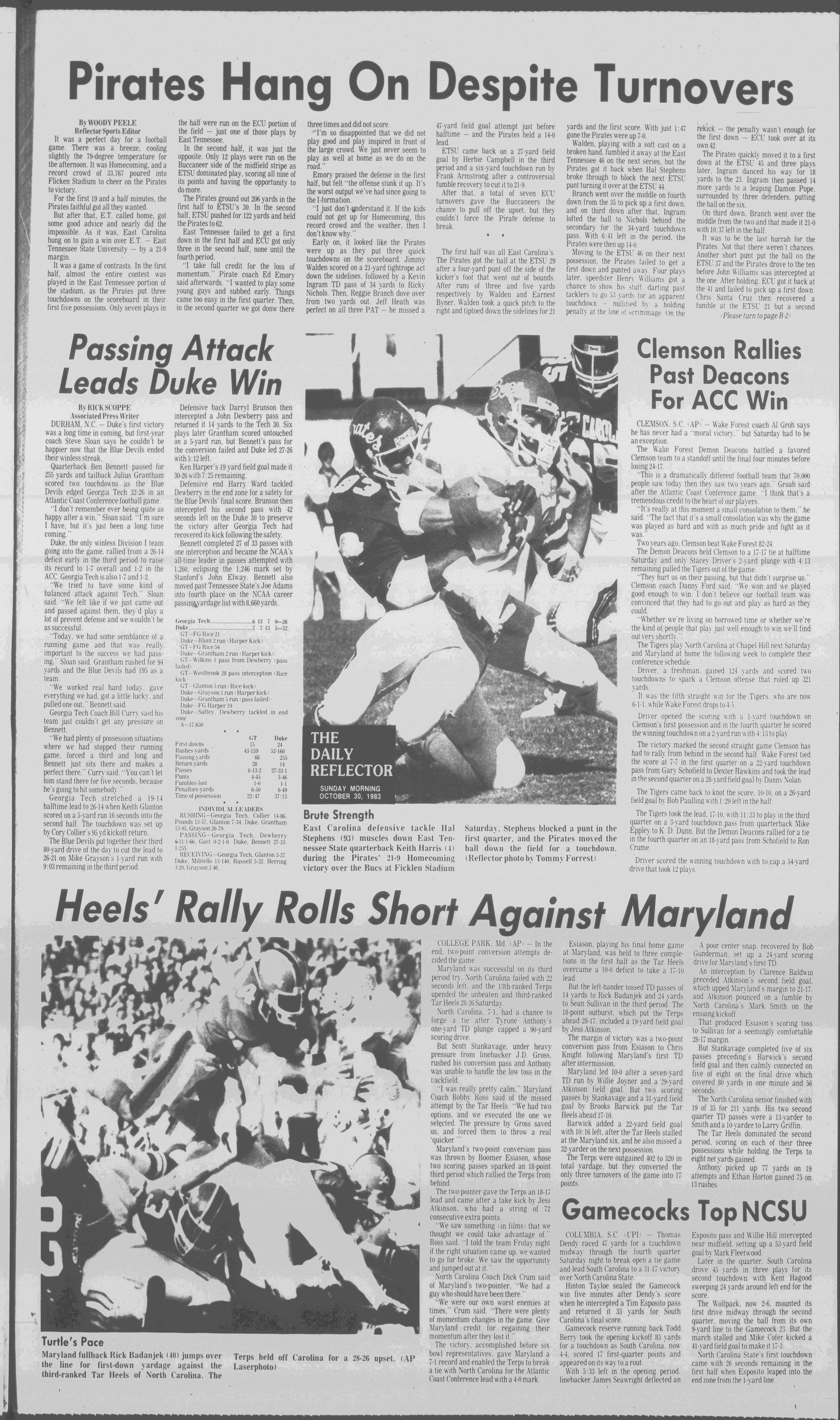 East Carolina University held its 1983 Homecoming Saturday. A pictorial review is on A-12.TERPS UPSET UNC