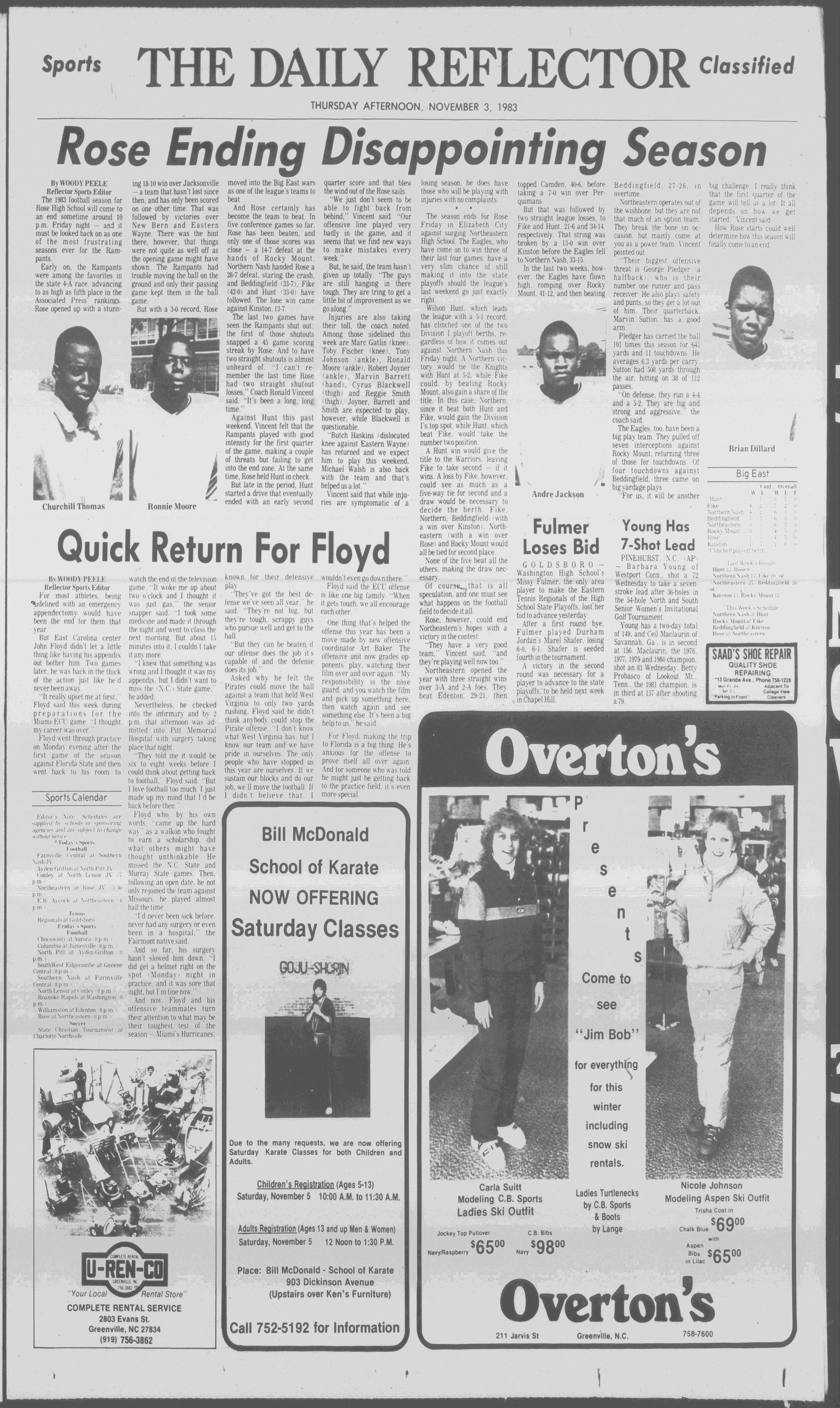 Scoring C - Dee Nelson. 5 pass from Julius Smith; C - Smith 45 run. R - Tarrance Smith. 35 run; C - Smith, 5 run; R Smith, 25 run