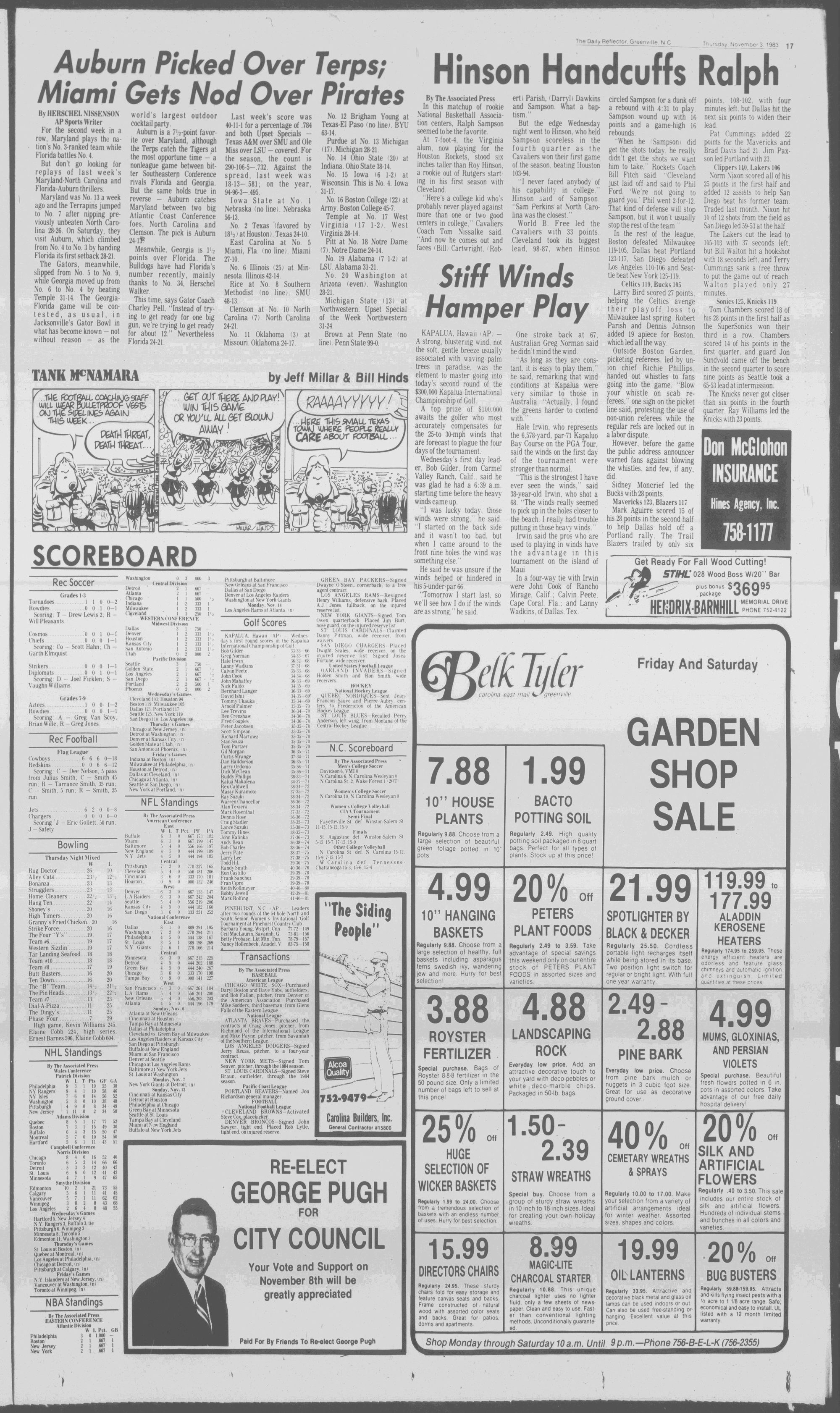 Auburn is a 7'--point favorite over Maryland, although the Terps catch the Tigers at the most opportune time - a nonleague game between bitter Southeastern Conference rivals Florida and Georgia. But the same holds true in reverse - Auburn catches Maryland between two big Atlantic Coast Conference foes. North Carolina and Clemson. The pick is Auburn 24-1^