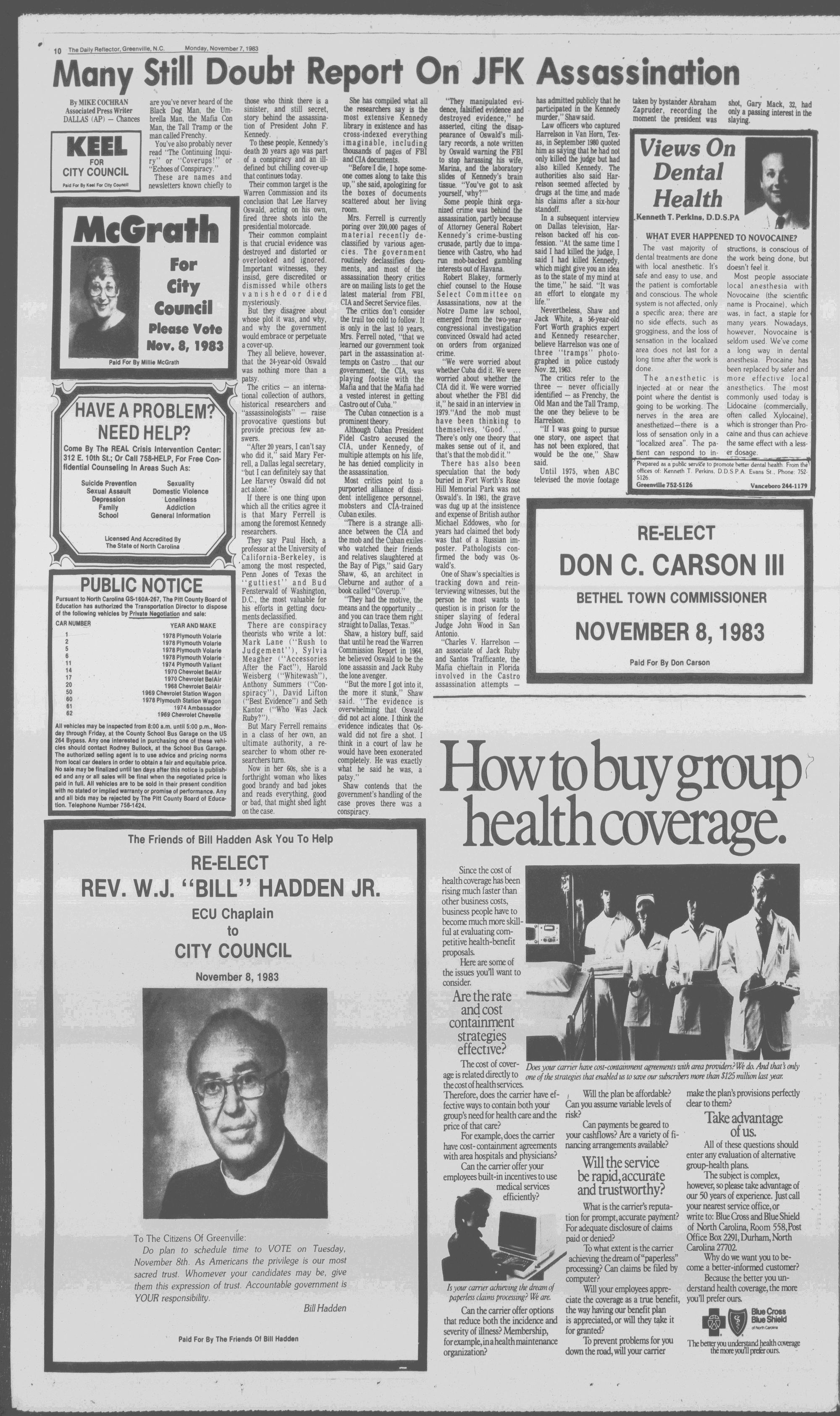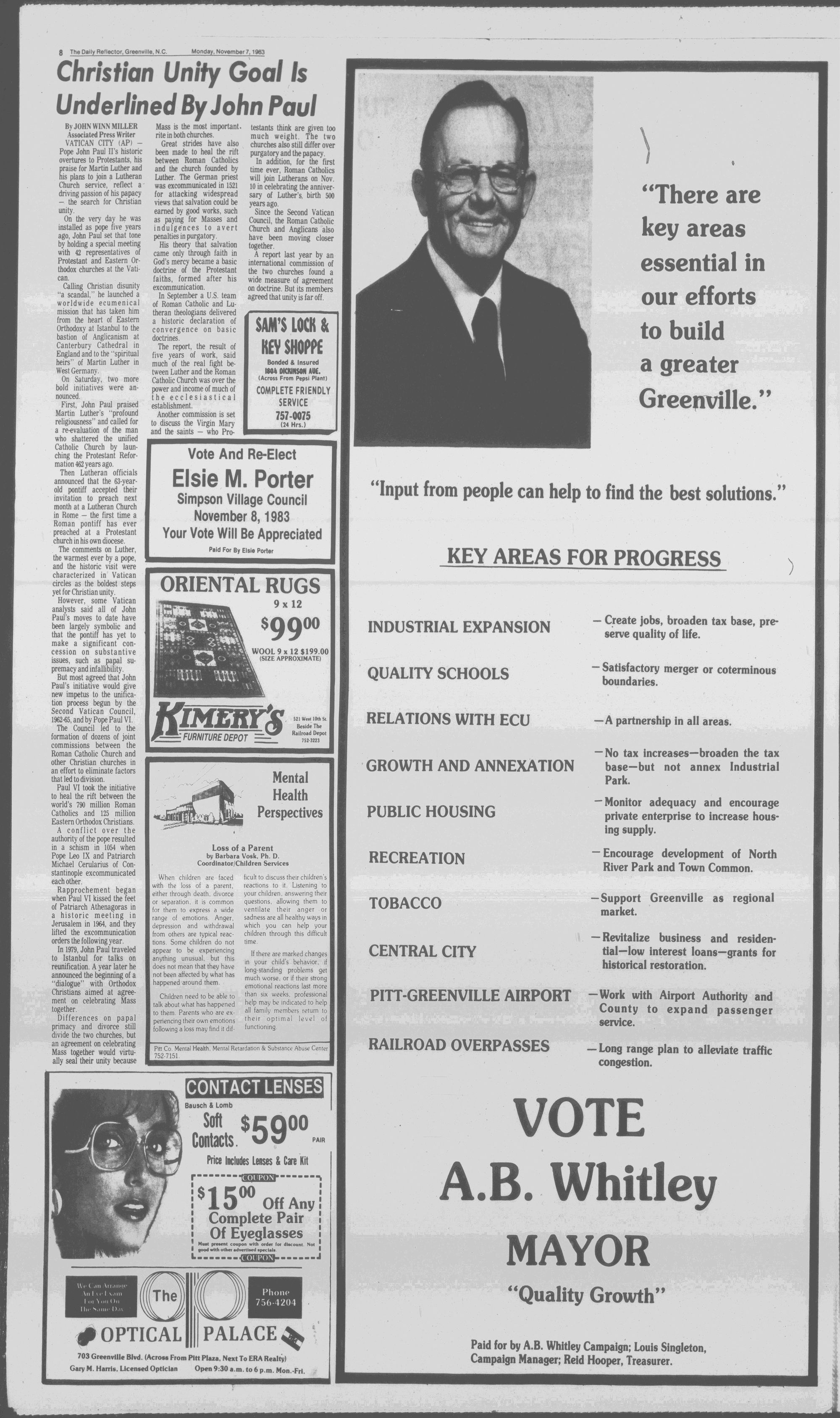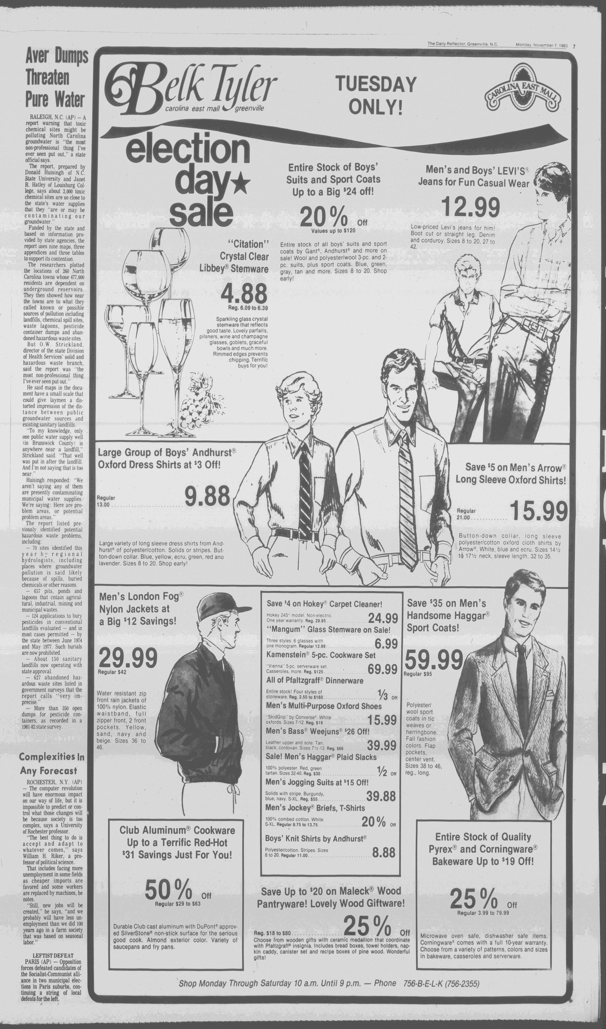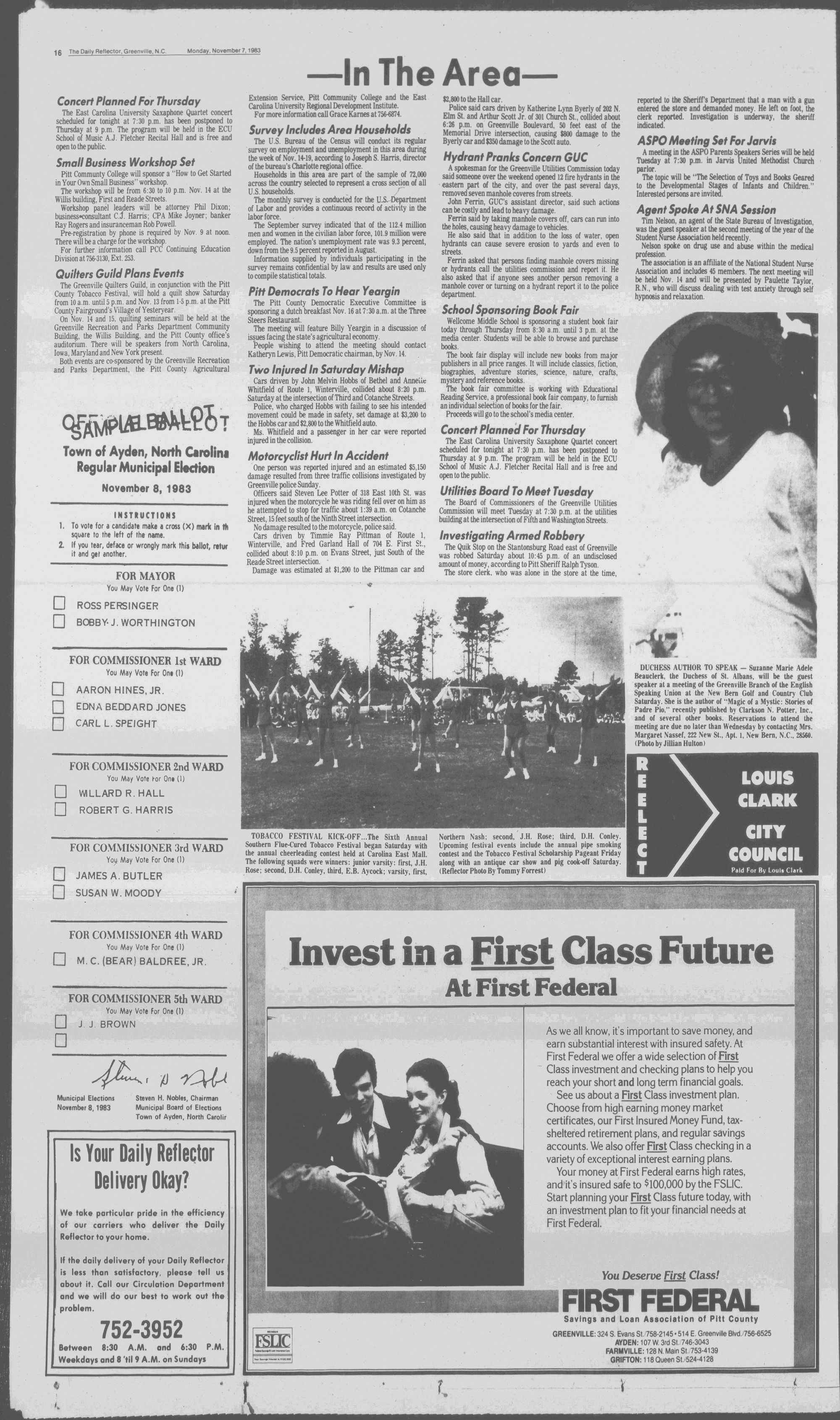 The newspaper was established in 1882, and was originally named the Eastern Reflector. It was founded by Julian Whichard and David Jordan with equipment they purchased from The Greenville Express. On December 10, 1894, it adopted the name The Reflector and began publishing every day. Cox Newspapers acquired The Daily Reflector in 1996. Creator: Daily Reflector (Greenville, N.C.)