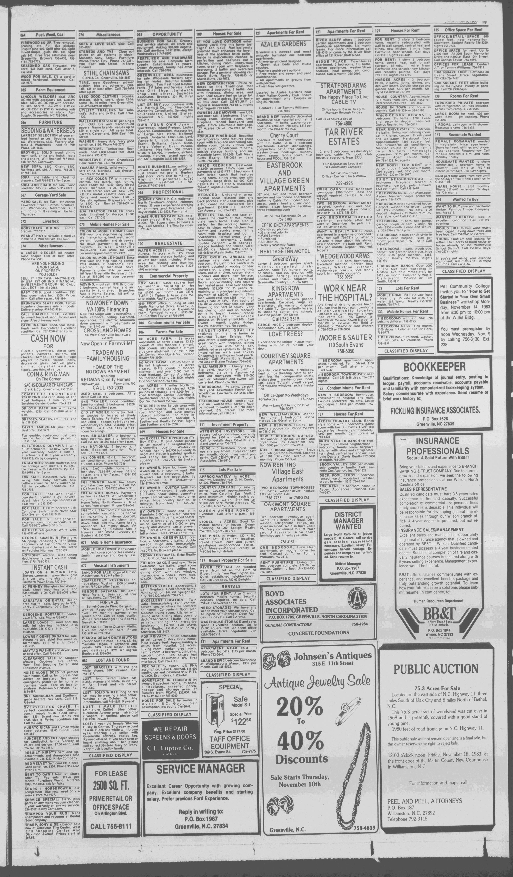 102NDYEAR NO. 249GREENVILLE, N.C. TUESDAY AFTERNOON, NOVEMBER 8, 1983