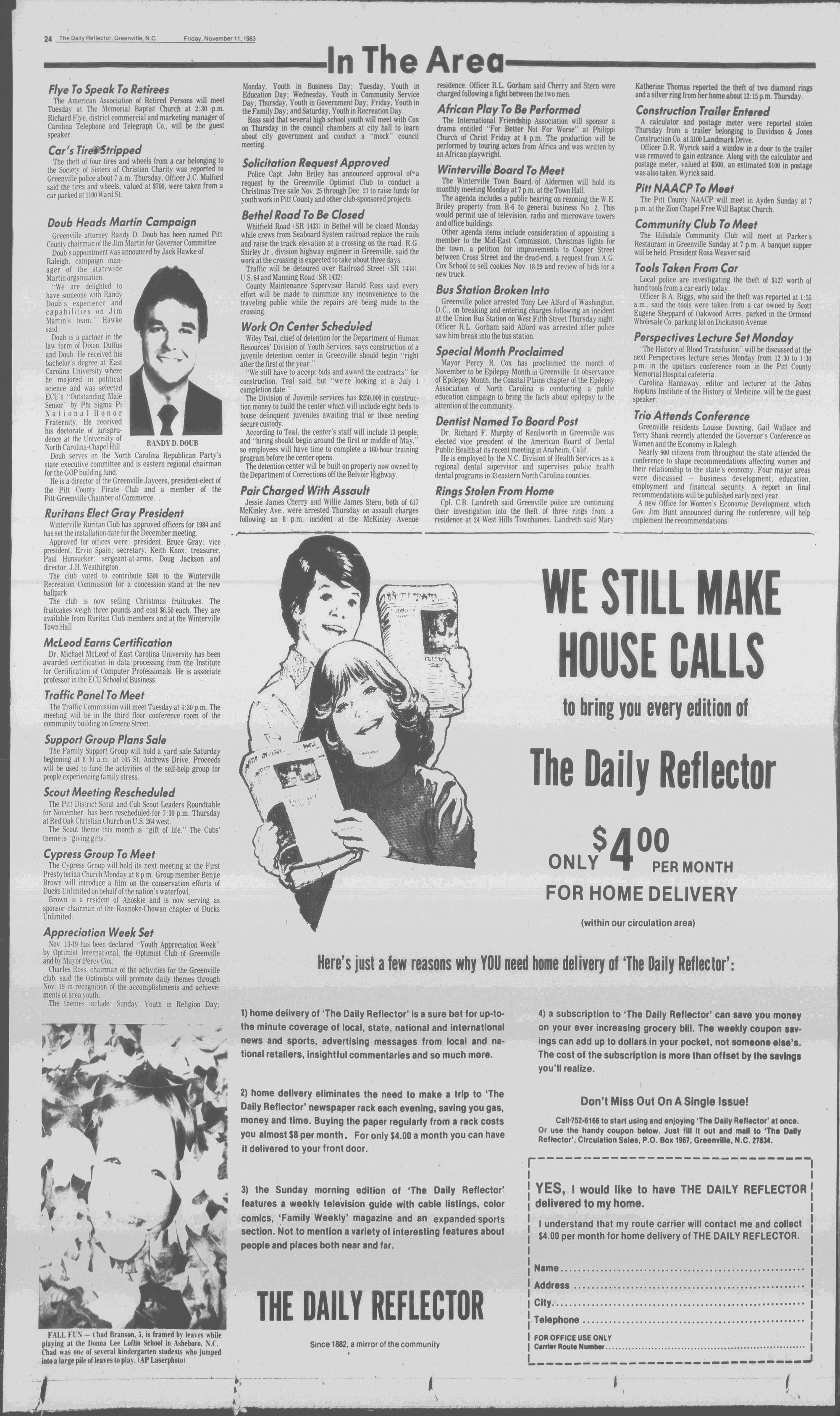 CalU752-6166 to start using and enjoying The Oaiiy Reflector at once. Or us the handy coupon below. Just fill It out and mall to 'The Dally Reflector,' Circulation Sales. P.O. Box 1967, Greenville, N.C. 27834.