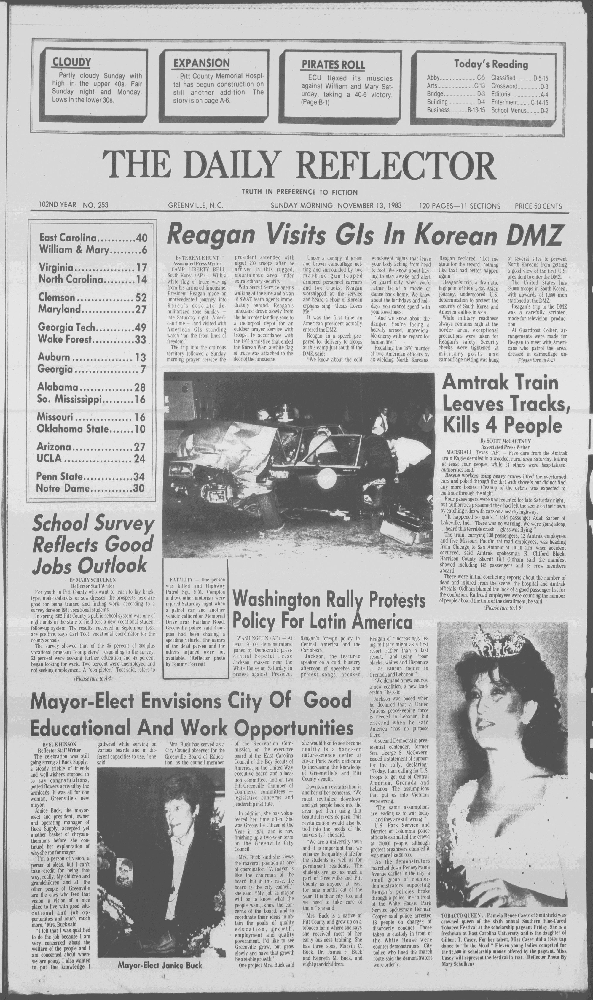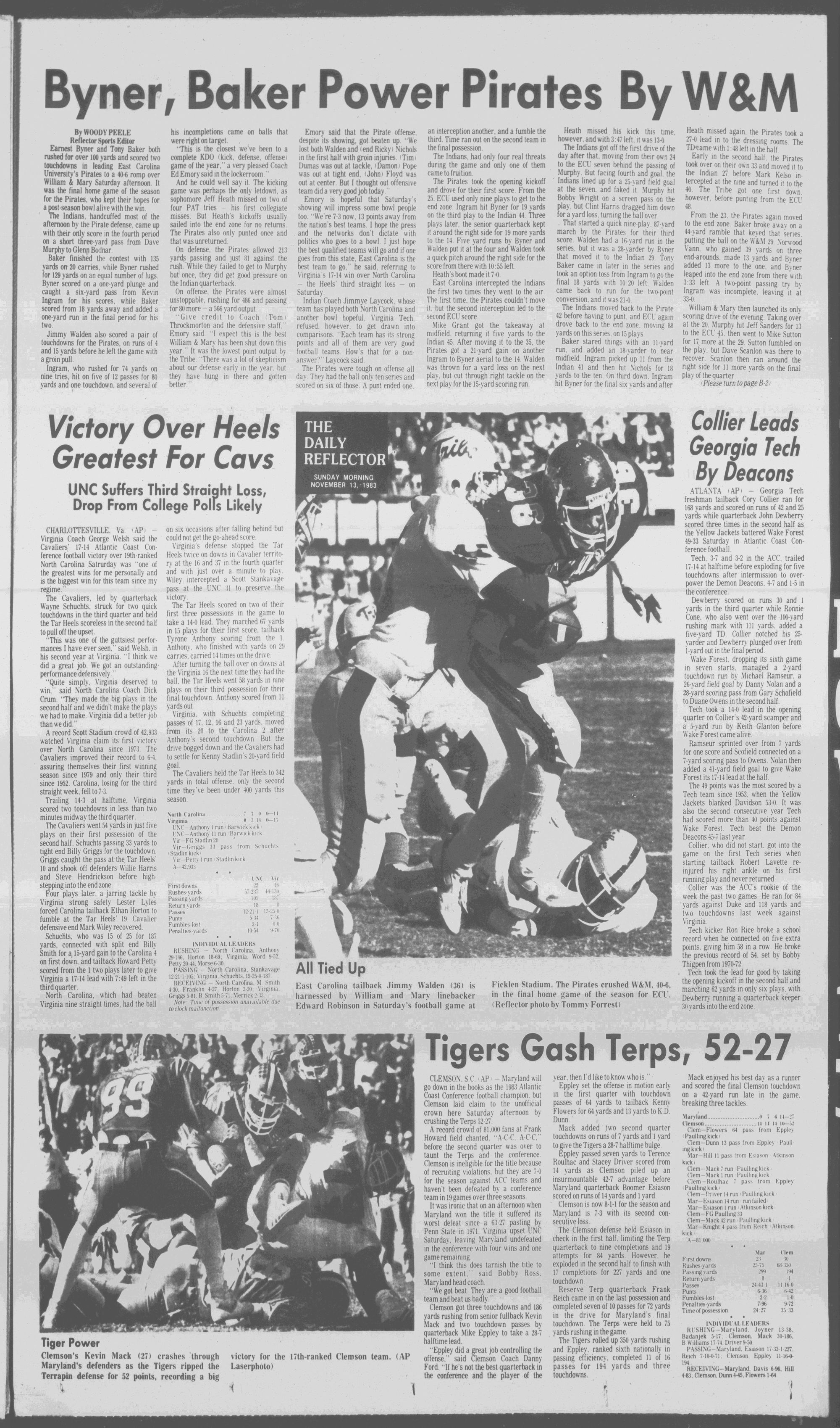 ECU flexed its muscles against William and Mary Saturday, taking a 40-6 victory. (Page B-1)Today's Reading