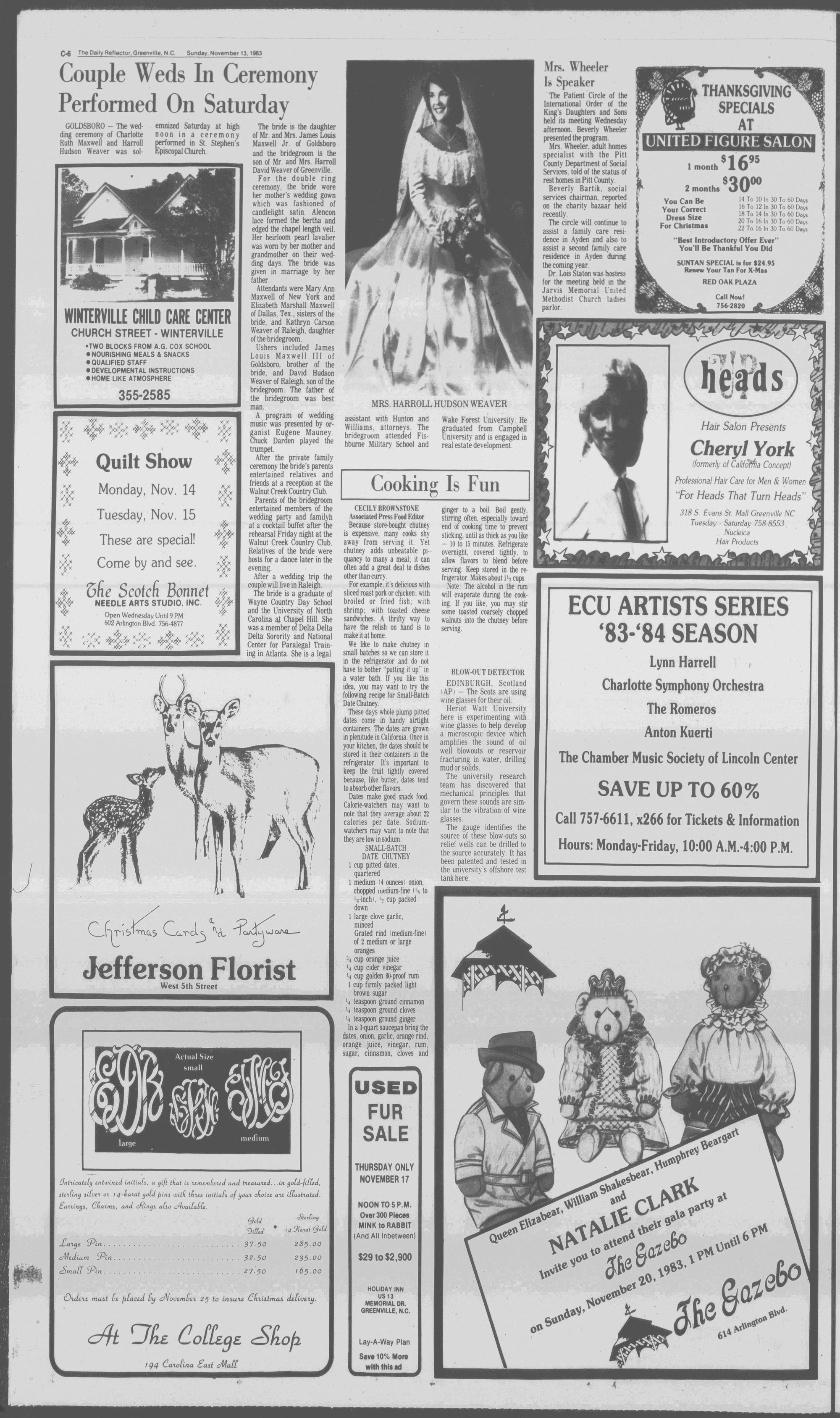 In addition, she has volunteered her time often. She was Greenville Citizen of the Year in 1974. and is now finishing up a two-year term on the Greenville City Council.
